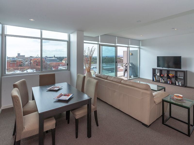 This modern (2008) built apartment is spacious and stylish internally with an enviable East End location. Being an end apartment you have not only the extra size but the advantage of natural light throughout. A Northerly aspect allows you a spectacular view over the Adelaide Hills as well as your very own nightly light show with a spectacular CBD backdrop viewed through the floor to ceiling wall of windows.