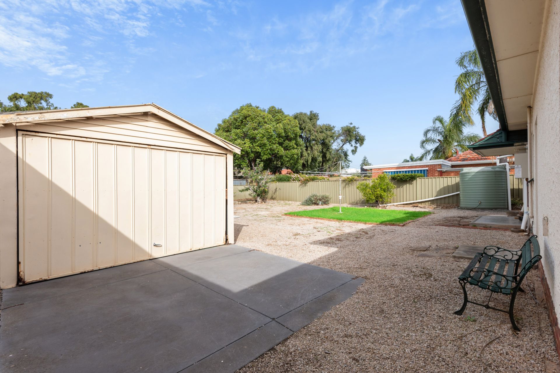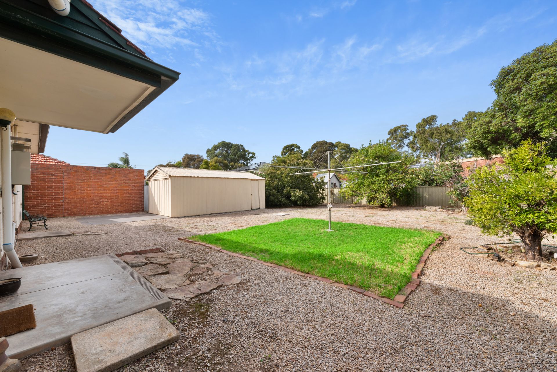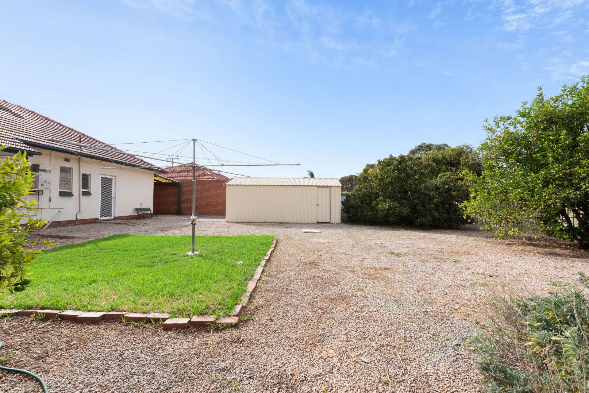 Moving out to the backyard there is plenty of space for the kids to play. The yard has fruit trees and plenty of space in the rear garage or shed. A blank canvas for you to make it just how you like it.