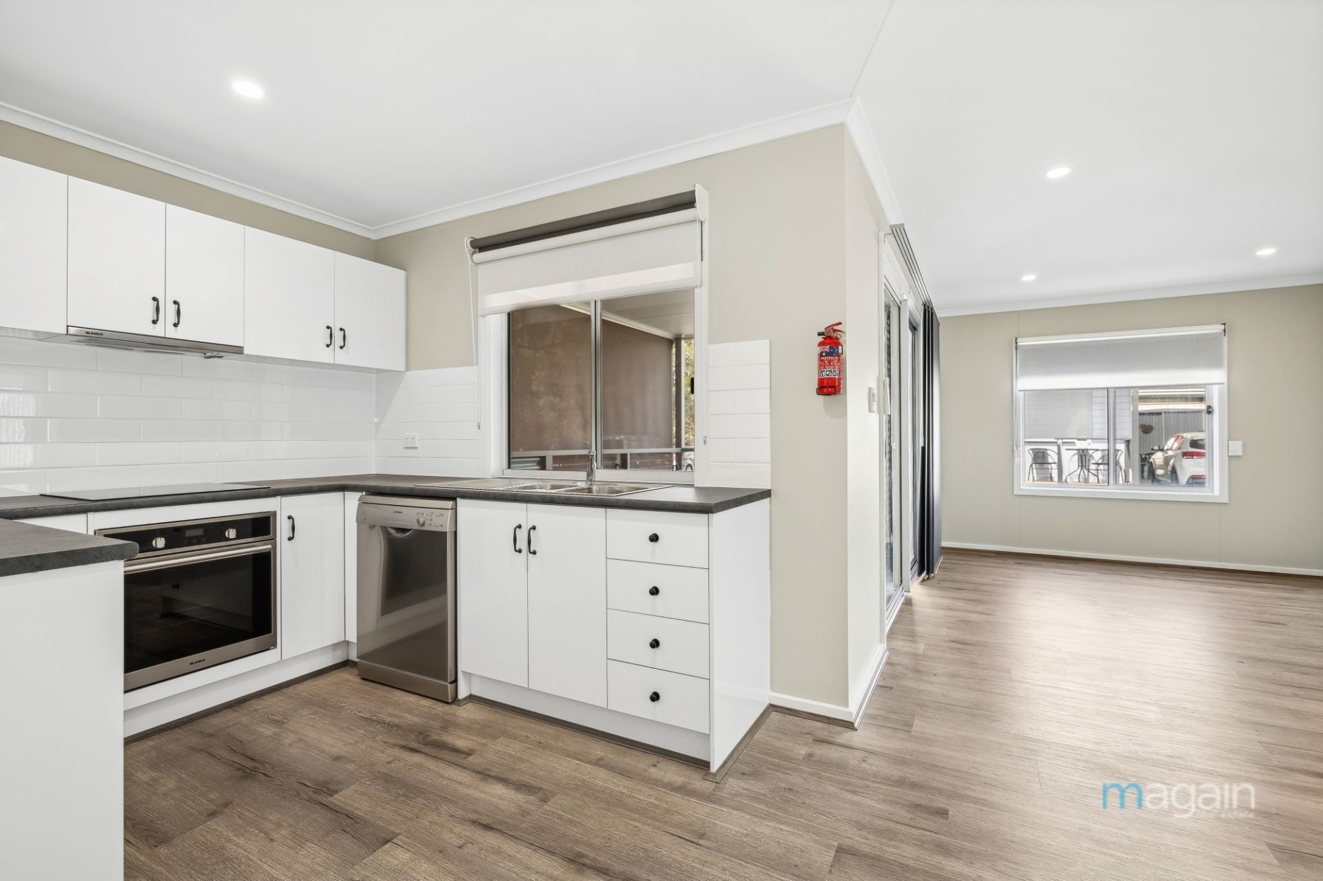 This is a lovely modern unit built in 2019. It's just been completely refurbished with new curtains & blinds, and a dishwasher. Floating floors are throughout the living areas. There are 2 good-sized bedrooms both with built-in wardrobes. This is great design with such a feeling of spaciousness.