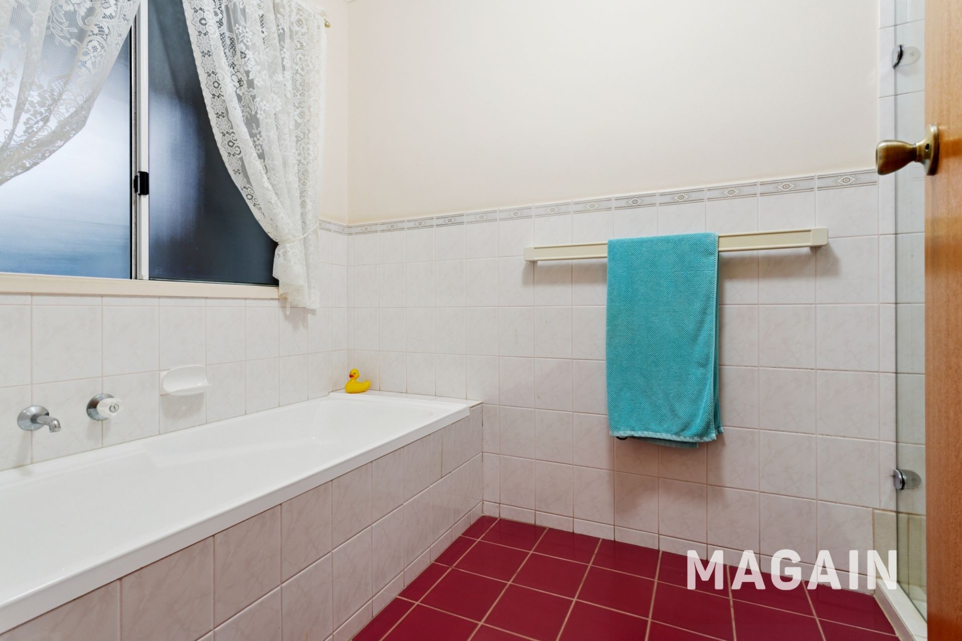 Stepping inside, you're welcomed by an open plan layout designed for easy living. The home boasts three bedrooms, each with built-in robes for ample storage. The main bedroom enjoys the luxury of a walk-in robe, adding a touch of convenience and privacy. A main bathroom, complete with both bath and shower, serves the household with ease, while a separate laundry with direct outdoor access ensures everyday functionality.