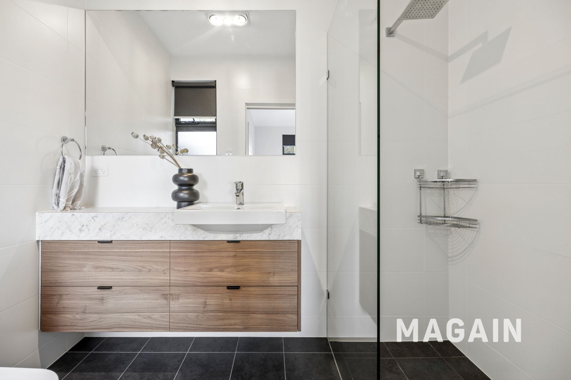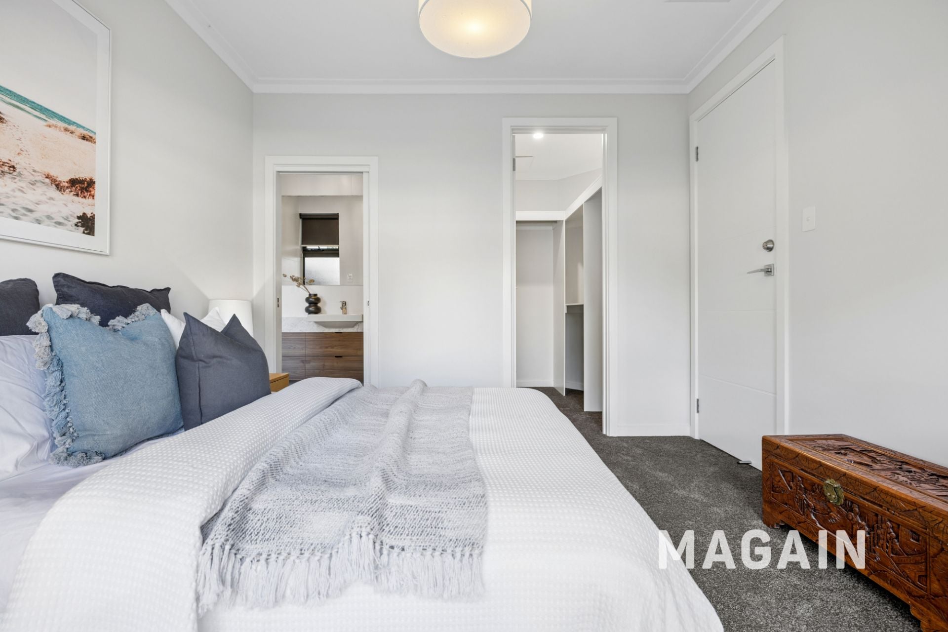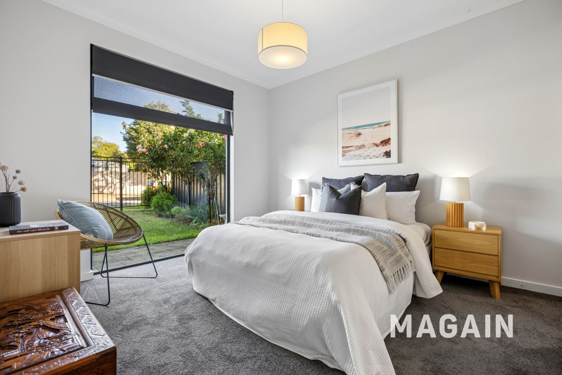 Privately positioned on the lower level, the master bedroom serves as a luxurious retreat, filled with natural light and complete with a spacious walk-in wardrobe and its own ensuite bathroom.