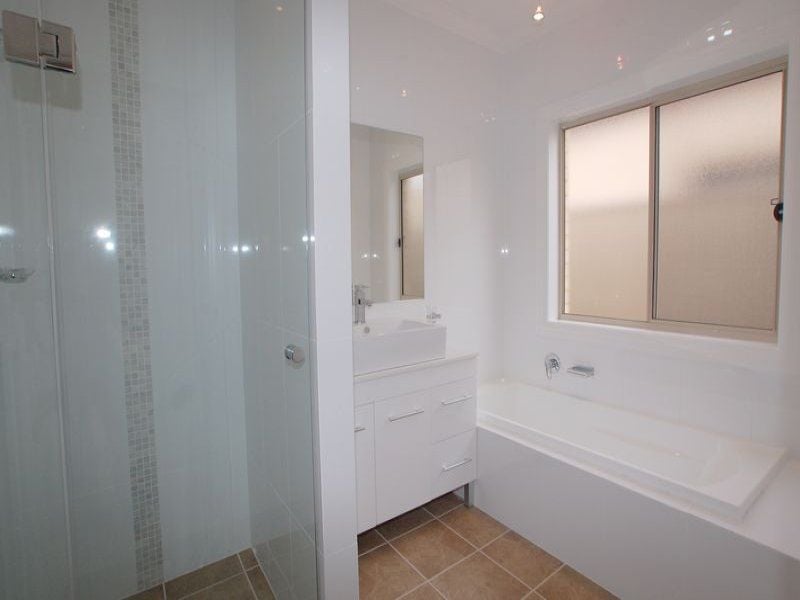 Offering loads of extras, intercom, polished porcelain tiles throughout all the livings areas, a beautiful fully tiled outdoor undercover entertaining alfresco area under the main roof, separate formal family lounge, ducted RC A/C throughout for year round comfort, superb fully tiled ensuite bathroom with frameless shower & porcelain appointments.
