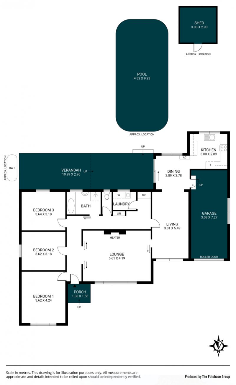 Additional features include a shed for storing tools and gardening supplies, along with a rainwater tank. For secure vehicle accommodation, the property provides a single garage with a roller door and direct internal access, plus extra driveway space if needed.