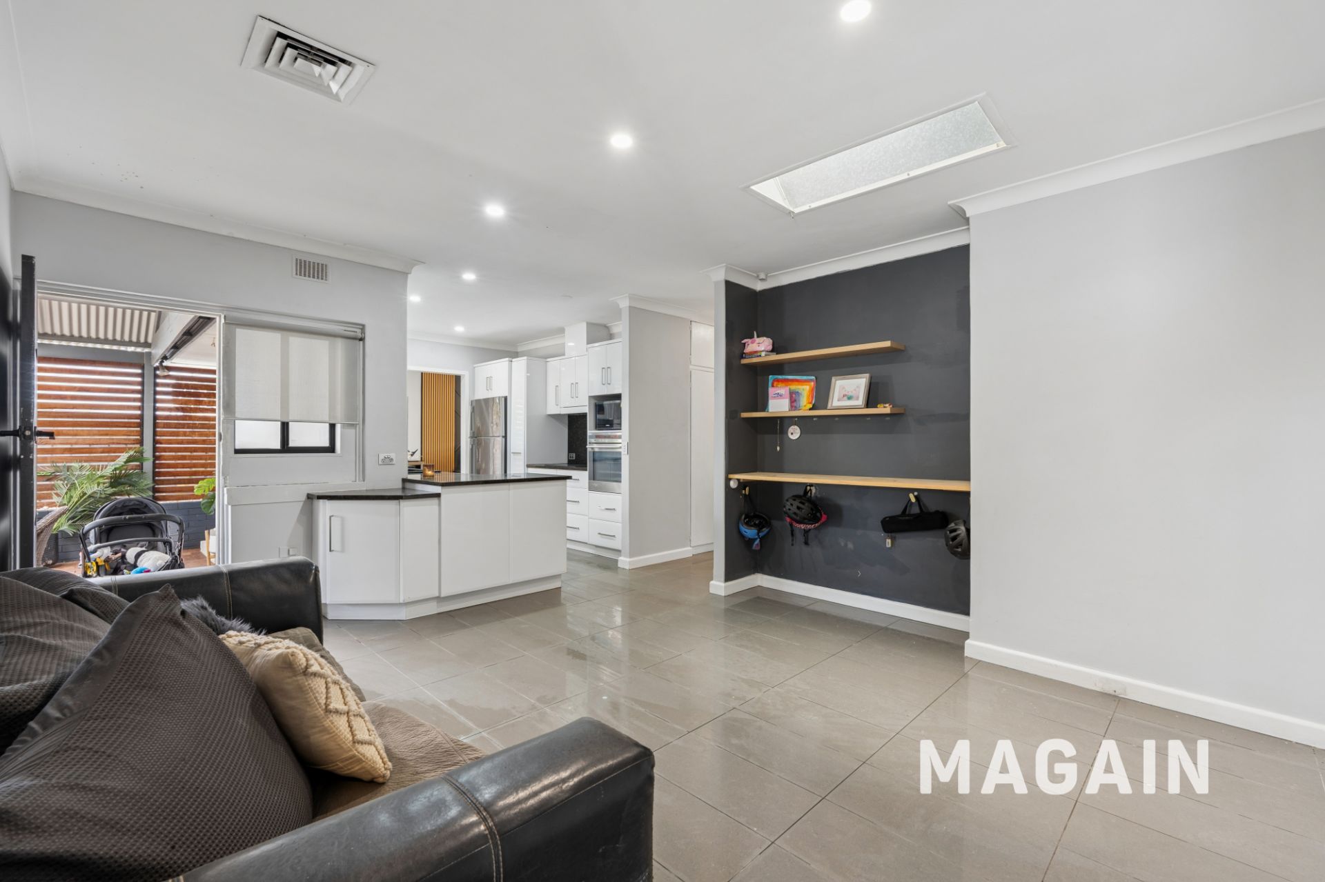 Flowing through the home, you're welcomed into a spacious main lounge - a comfortable space to relax, featuring modern finishes and a stylish feature wall.