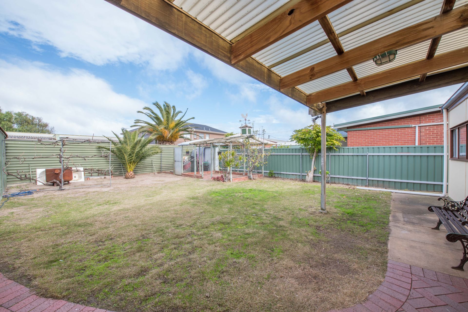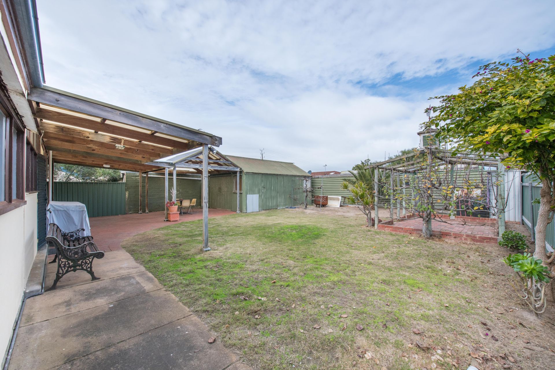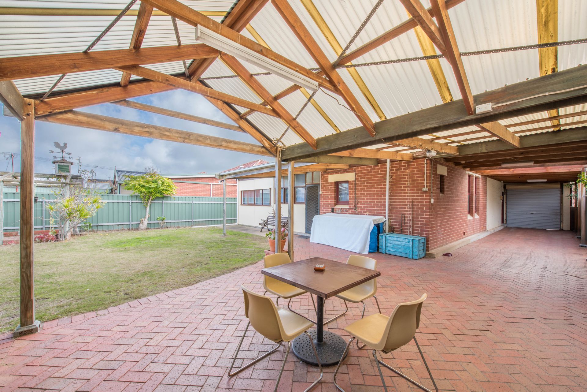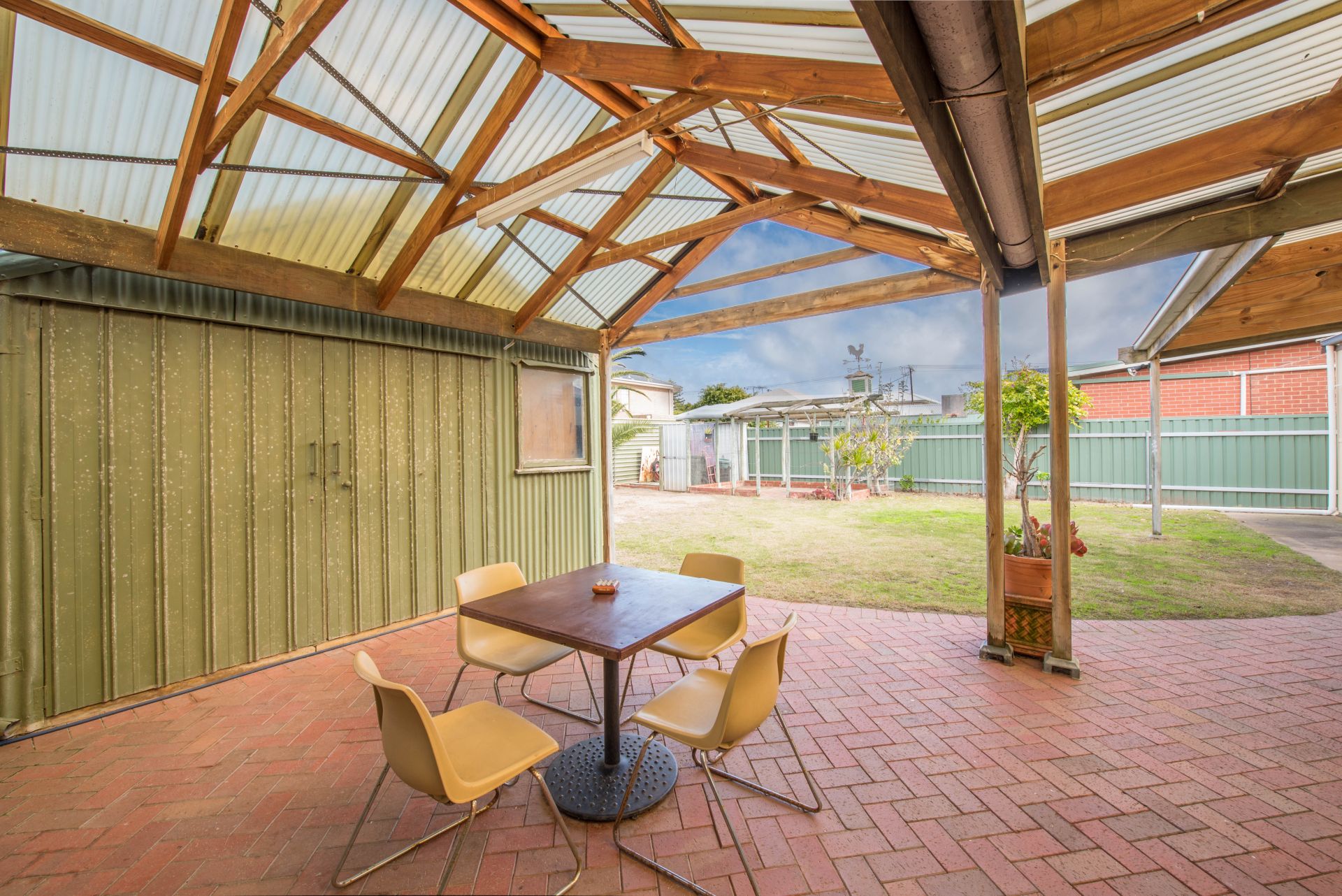 Outside is an undercover entertaining area with access to the carport. A separate garage offers plenty of storage for the tools and toys. A grassed area offers room to run around on and a quirky little paved area creates a lounging space in the sun to enjoy a chat and cup of tea.
