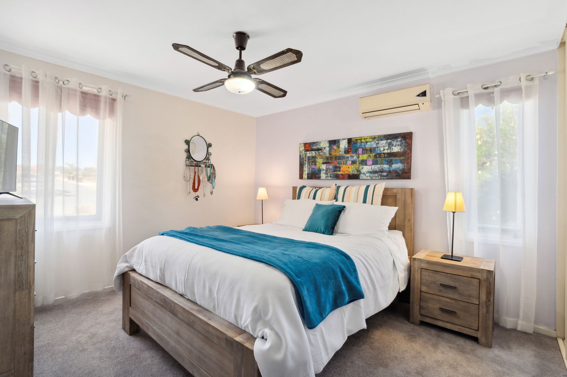 Choose from three generously sized bedrooms, all boasting ceiling fans, built-in robes, and easy access to the renovated main bathroom with a double shower, ensuring convenience. Ample storage is provided by built-in cupboards in the hallway and laundry.