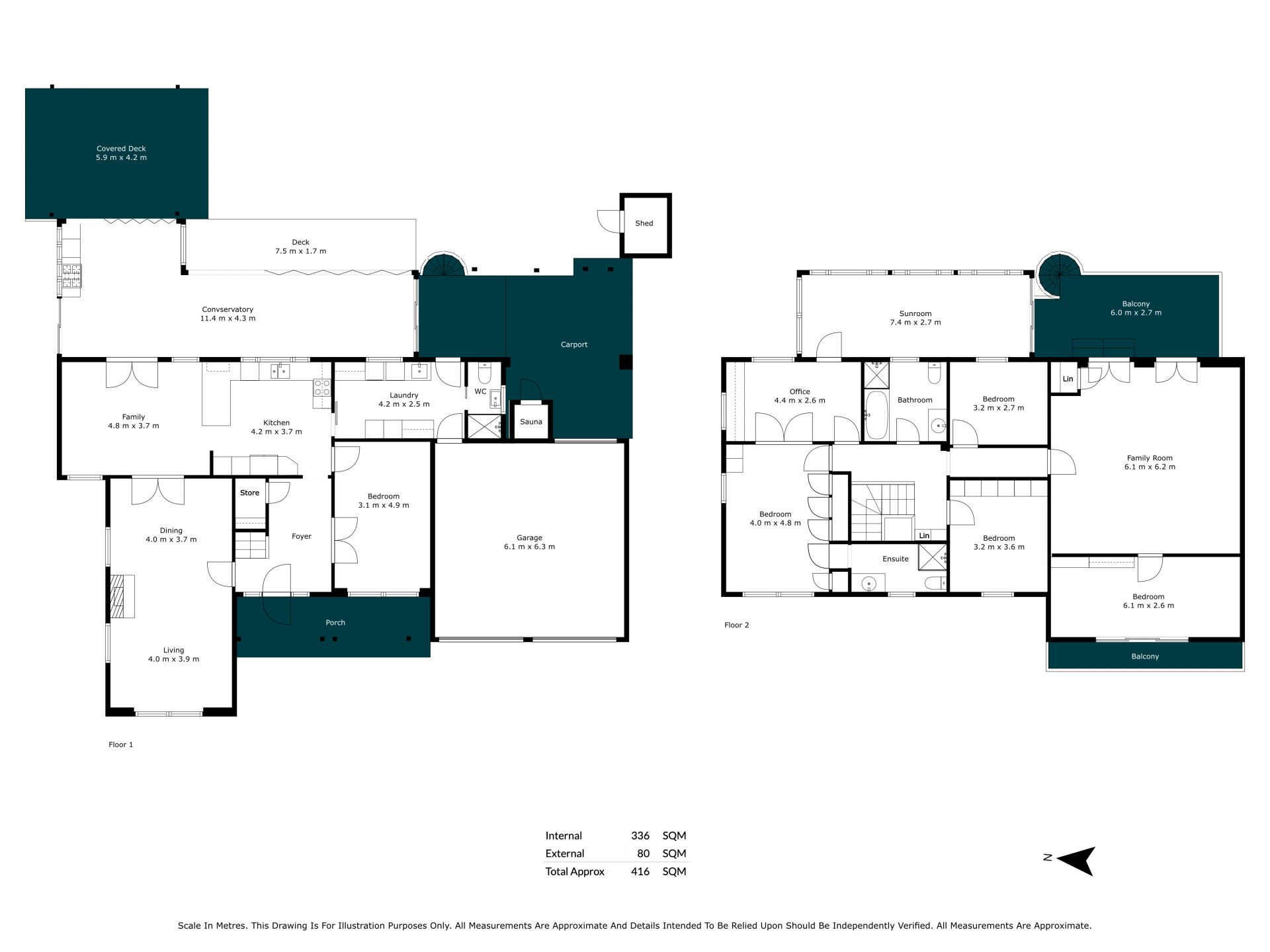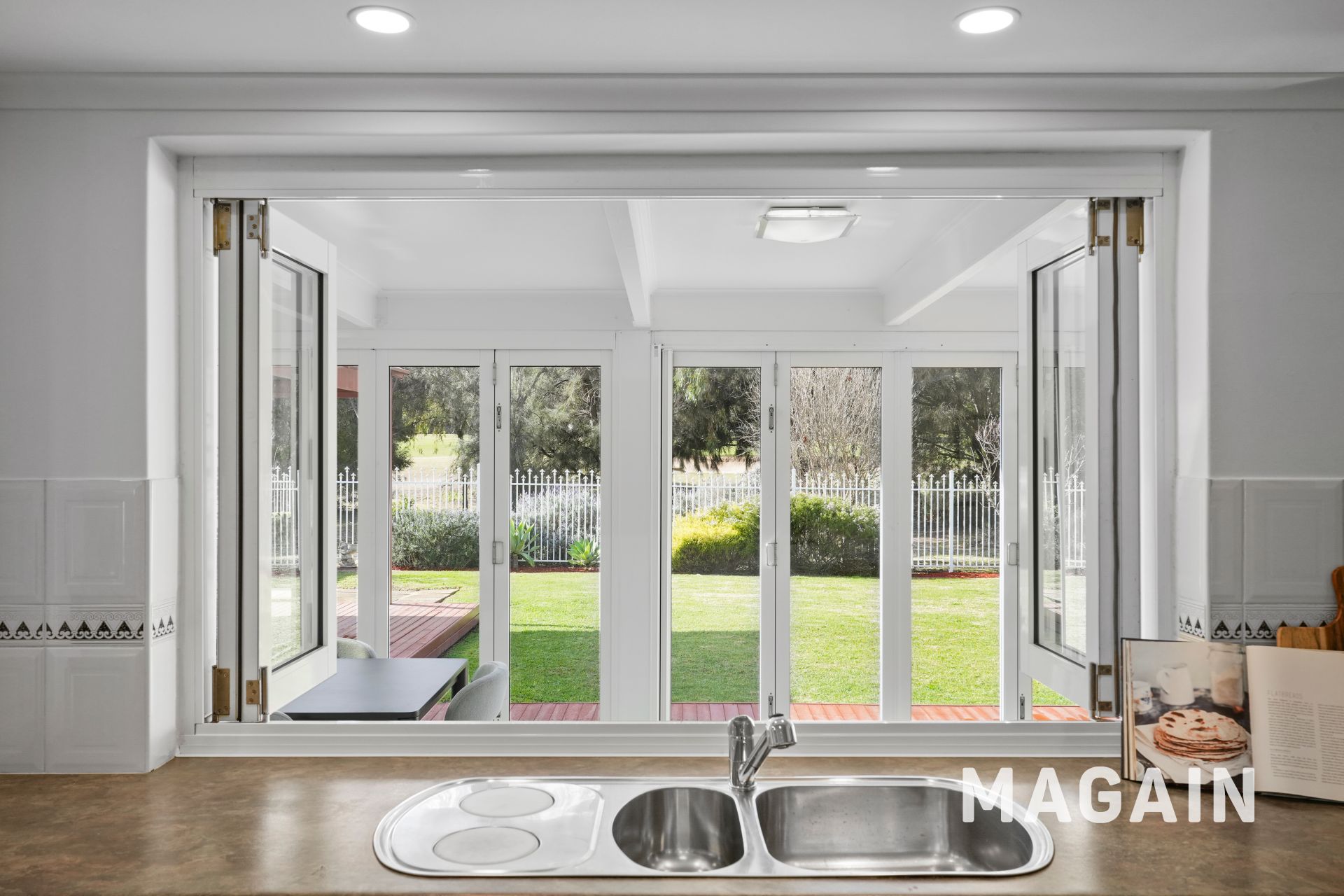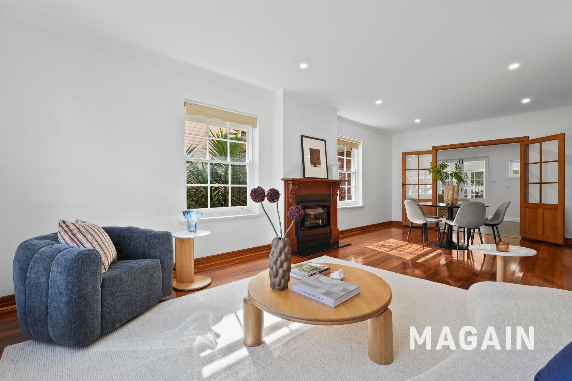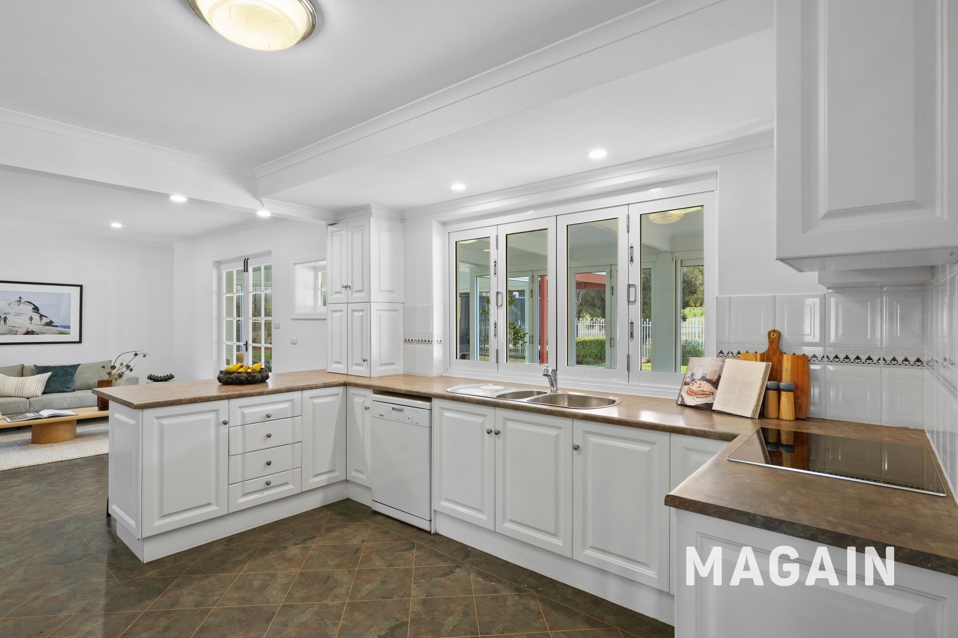 - Multiple light-filled living zones including a formal lounge and an open-plan family / dining area