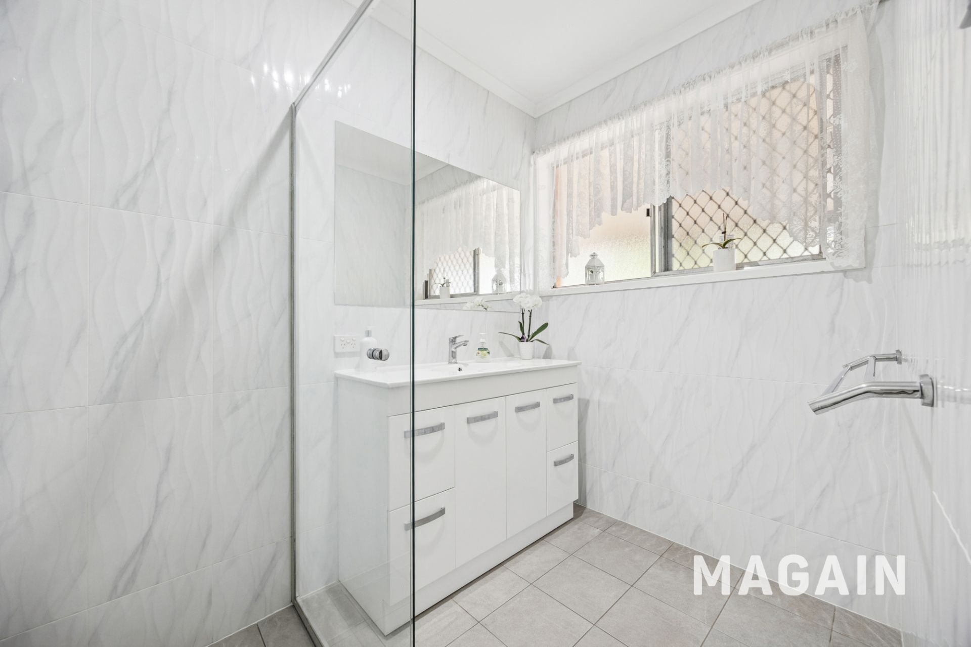 The thoughtful floorplan enhances everyday practicality, with all bedrooms conveniently positioned near the main bathroom and laundry. The bathroom includes a walk-in shower, vanity, and separate toilet, perfect for the needs of a growing family, while the laundry provides direct outdoor access for added ease and functionality.