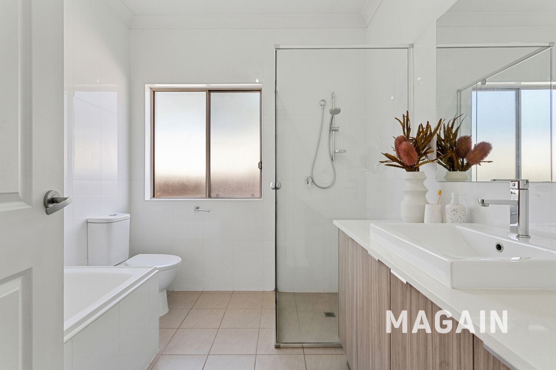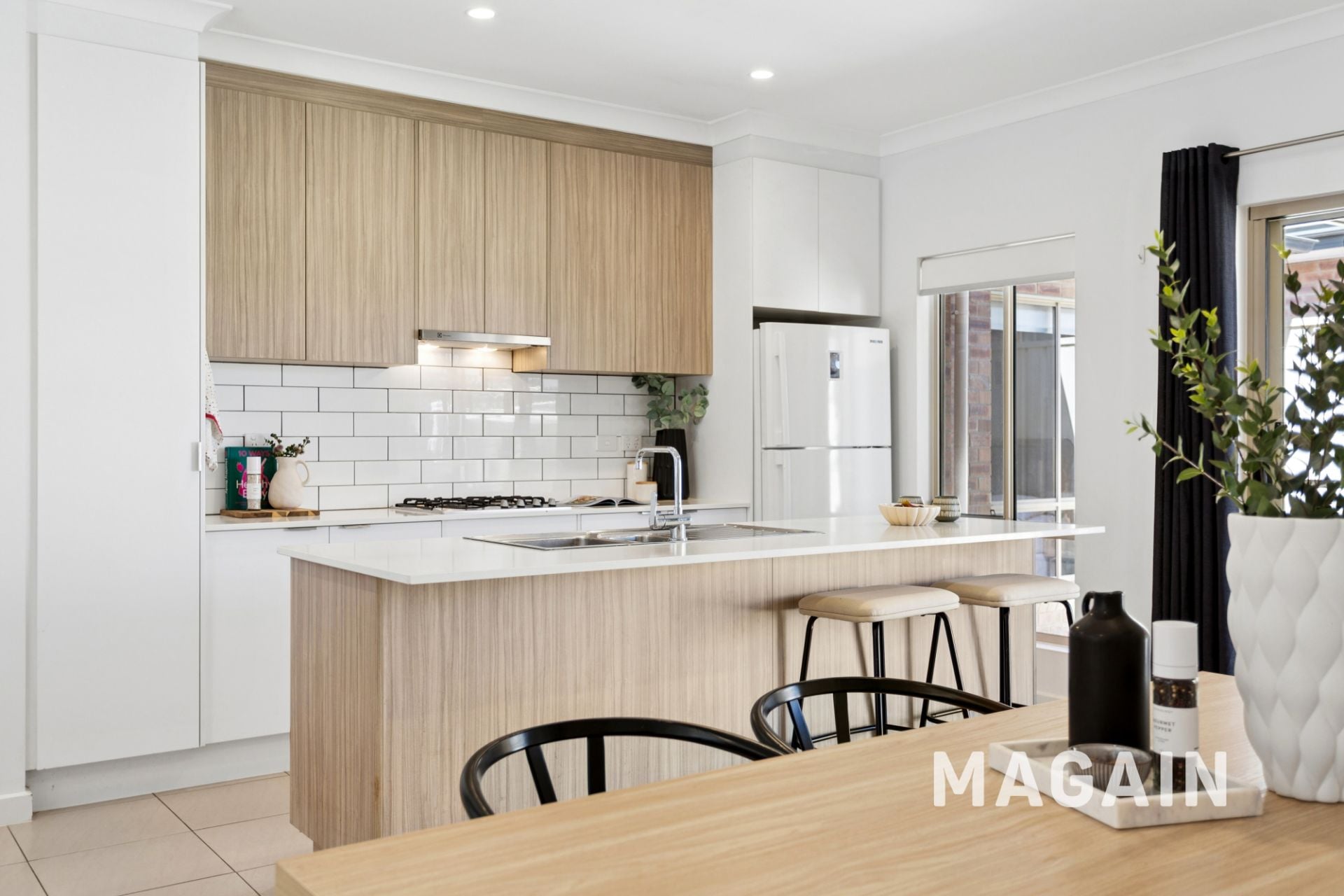 Stepping inside, the home opens to a welcoming entry that flows directly into the generous open-plan living, dining and kitchen area. This light-filled space forms the heart of the home, offering plenty of room to relax and entertain while enjoying year-round comfort with ducted reverse cycle air conditioning. The kitchen is well-positioned to overlook the dining and living zones and features a practical layout with ample bench space, modern appliances, including a dishwasher, and the added convenience of a Puratap system.