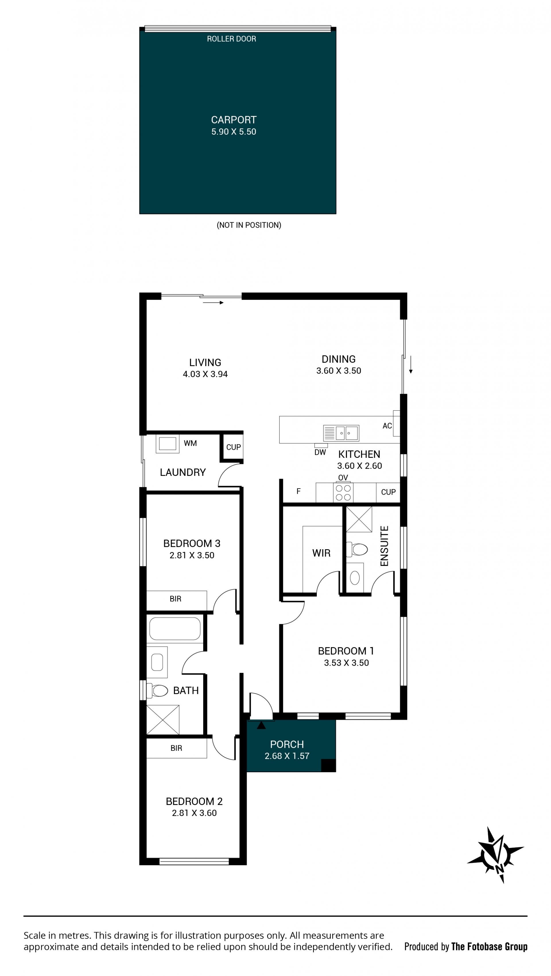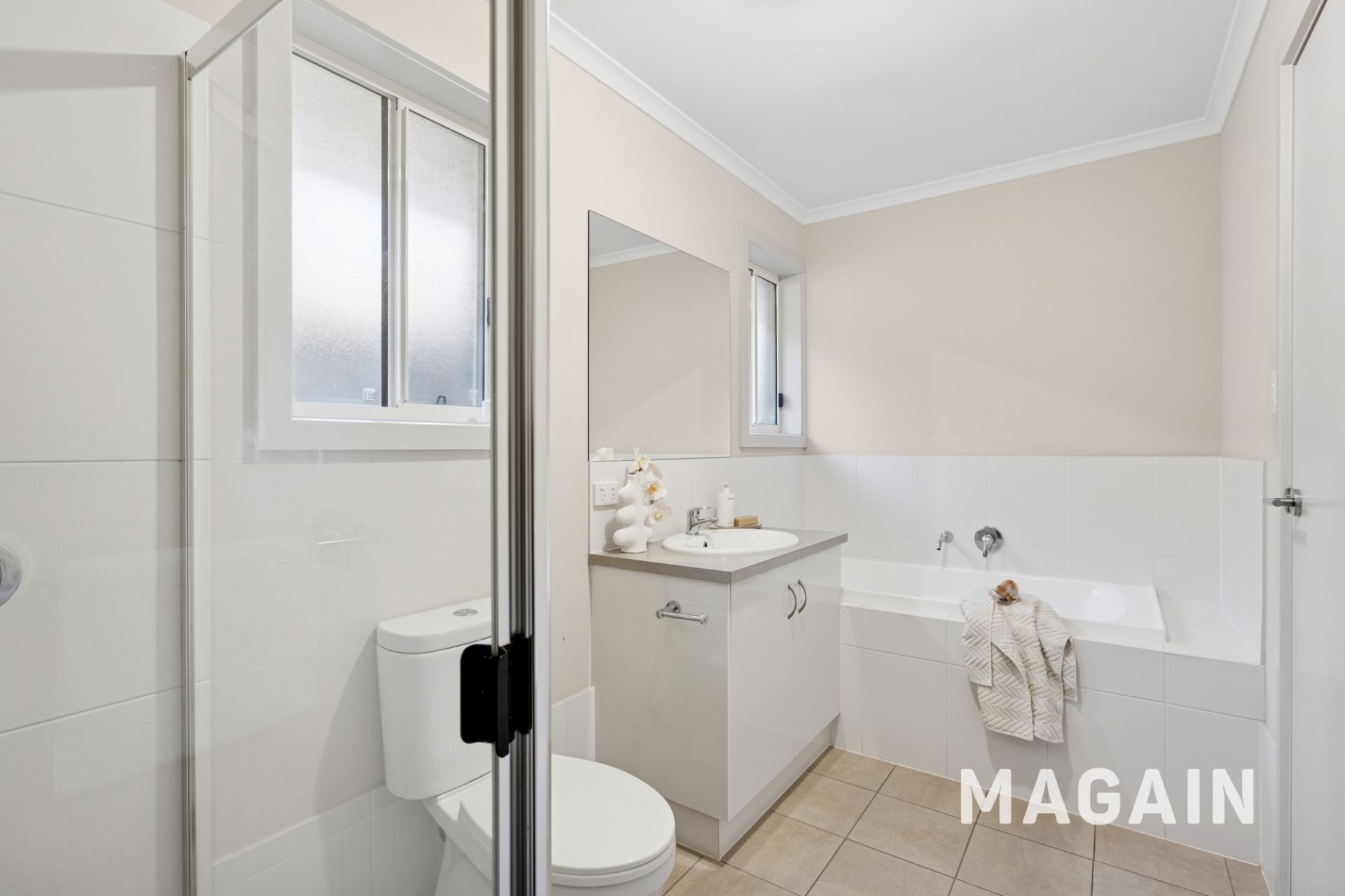 A welcoming front porch invites you into the entry hallway, where the thoughtfully designed floorplan immediately impresses. The main suite is positioned at the front of the home and features a walk-in robe and private ensuite, creating a peaceful retreat. A separate hallway leads to the second and third bedrooms, both fitted with built-in robes, along with the spacious main bathroom complete with separate bath and shower.
