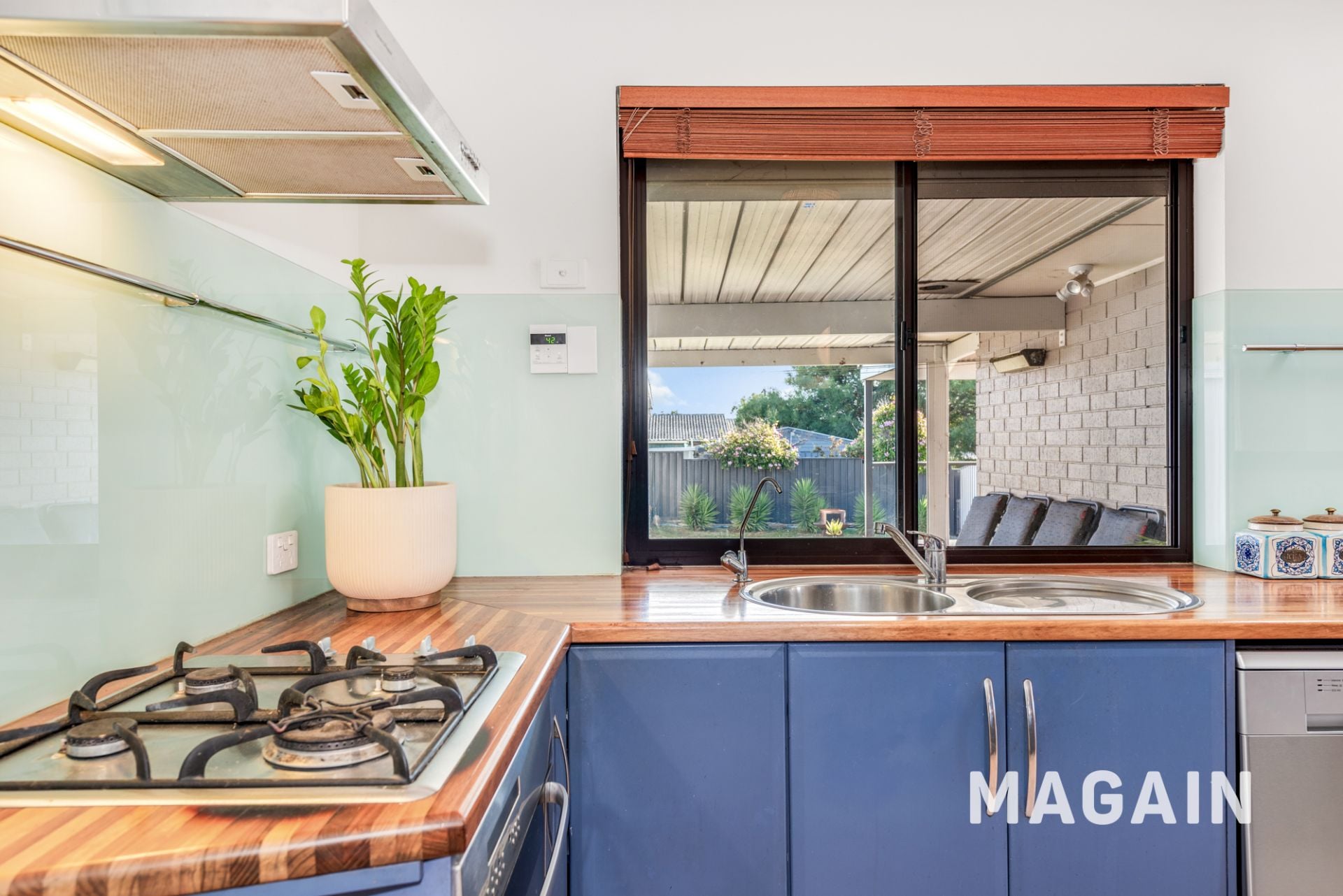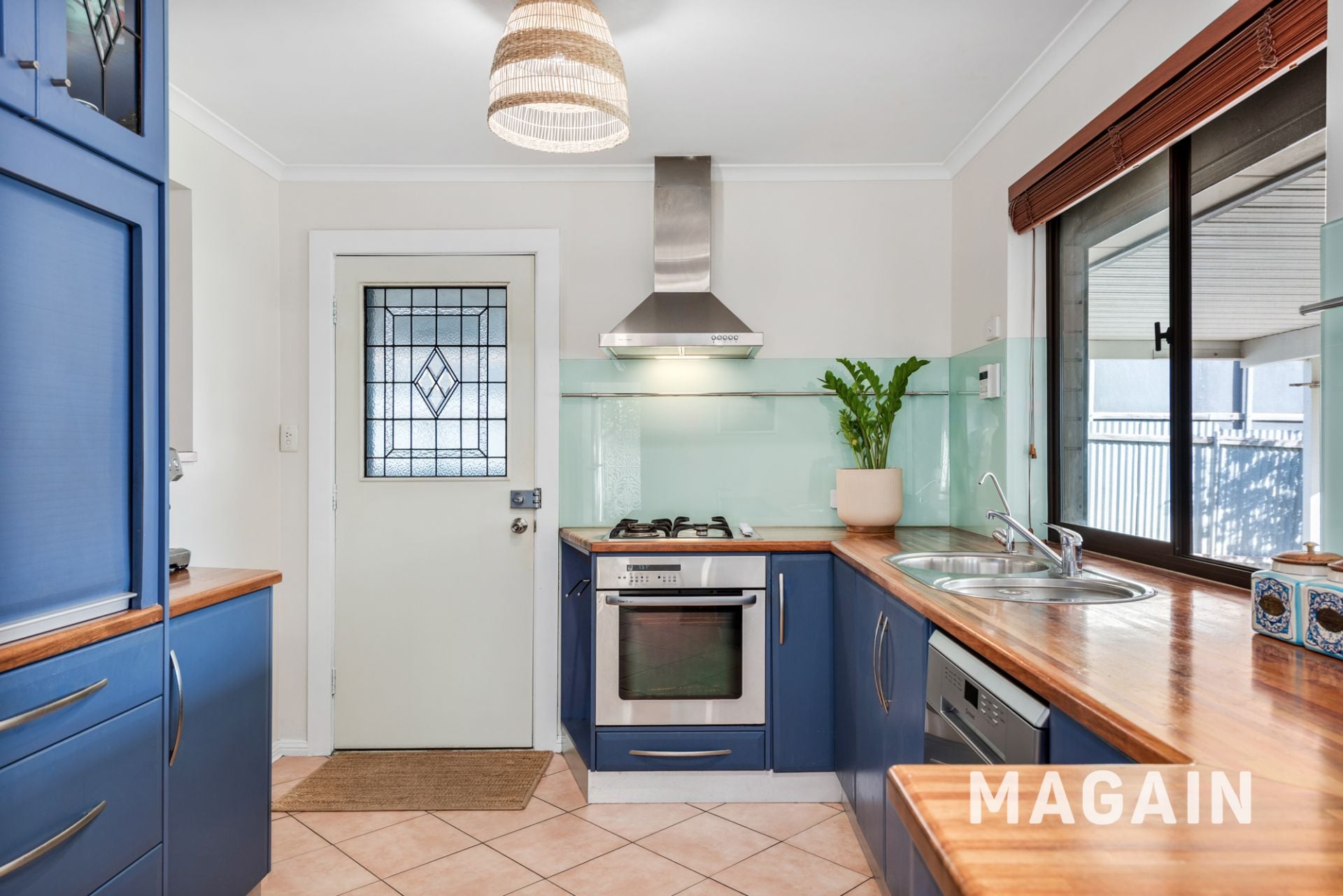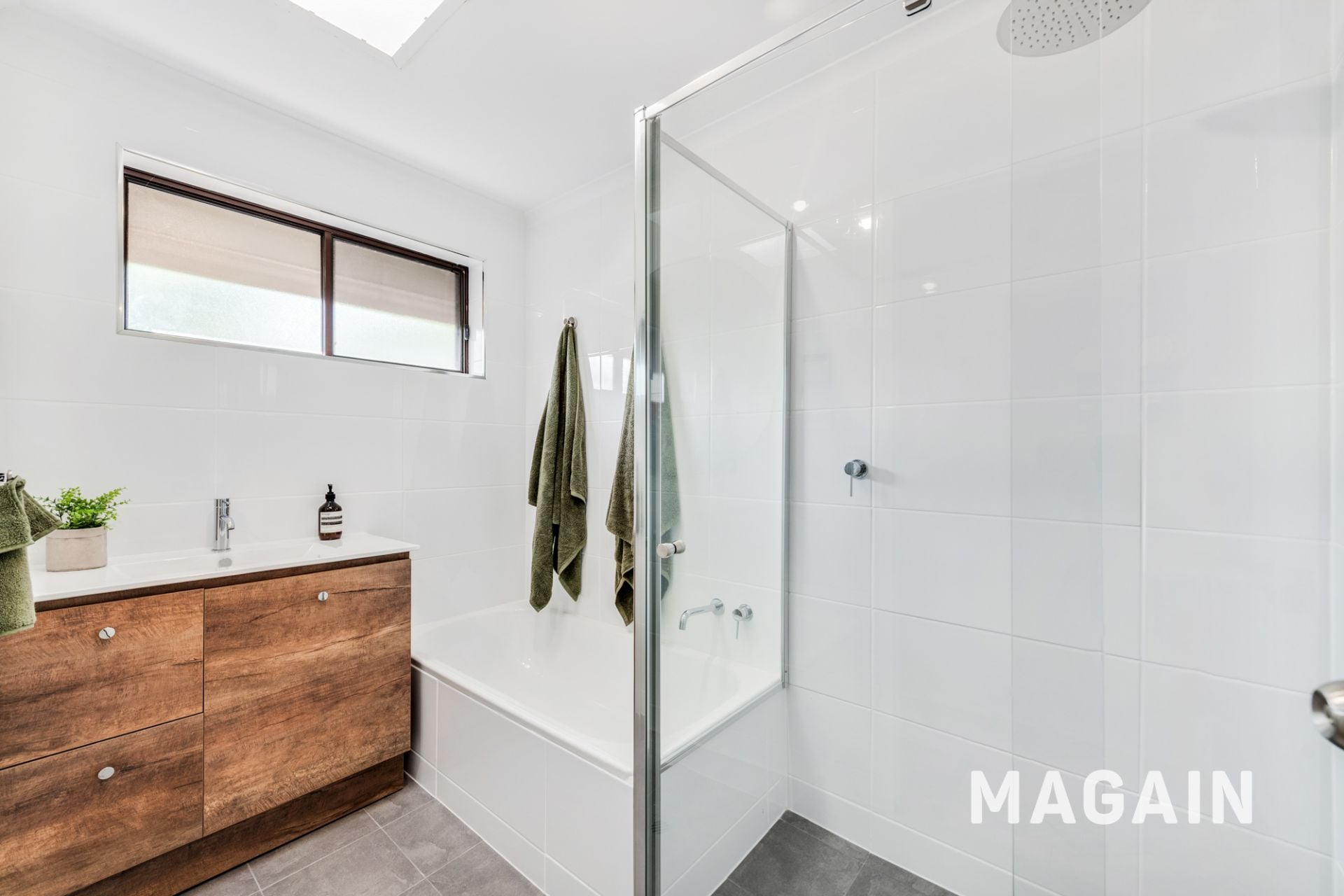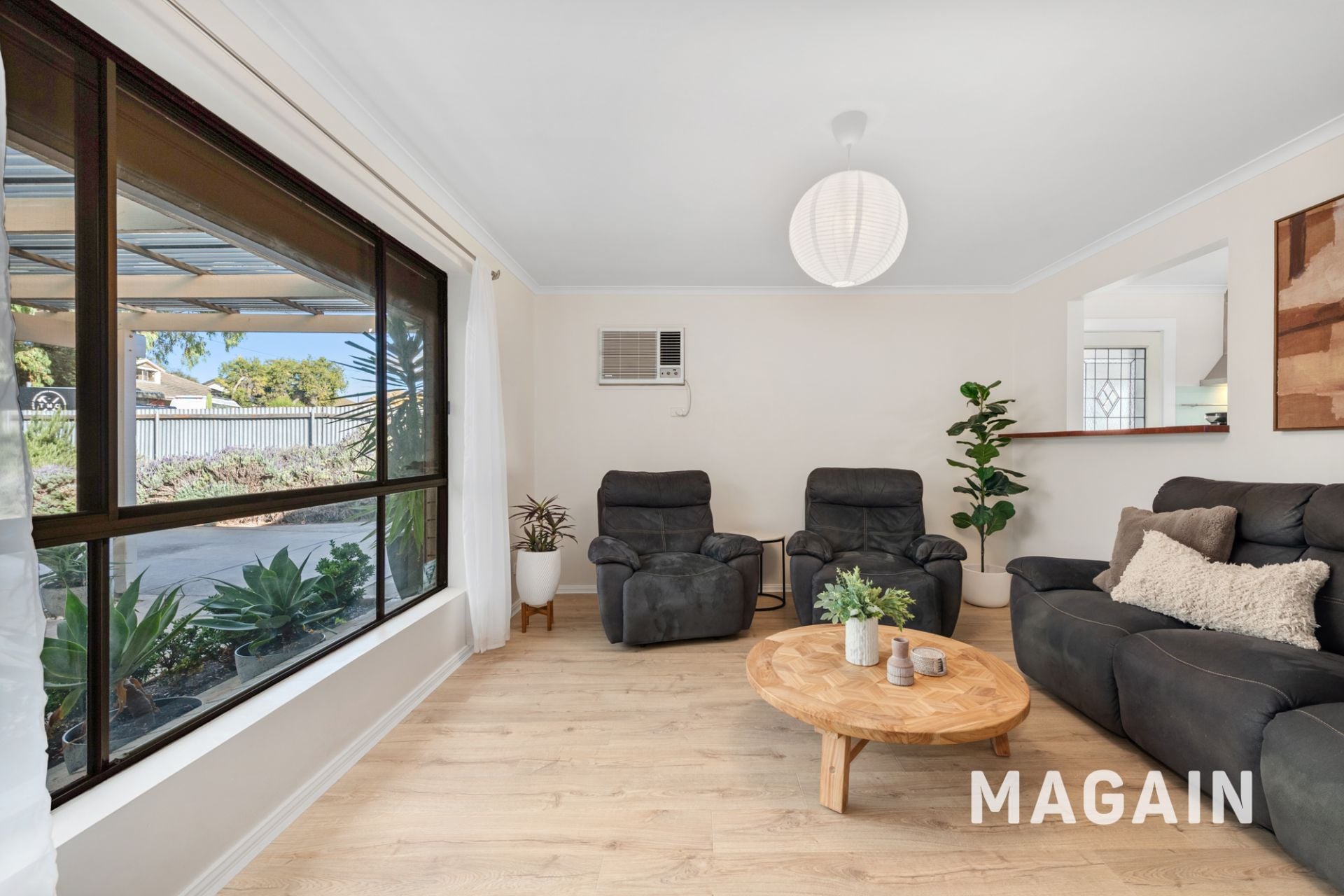 Inside, the home is bright and welcoming, with easy-care hard flooring throughout (apart from the main bedroom). Both the main bathroom and ensuite have been stylishly updated with sleek finishes, while the master also features a walk-in robe. The impressive, updated kitchen includes timber benchtops, a dishwasher, and a walk-in pantry, and overlooks a spacious meals area. Skylights in the kitchen and dining zones enhance the natural light, creating a warm and airy feel. Additional features include ceiling fans in the bedrooms, a centrally located split system for comfort, and temperature-controlled hot water.
