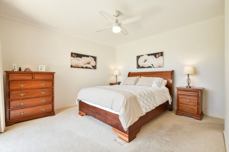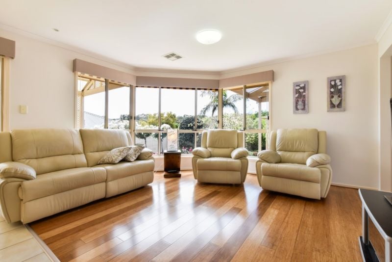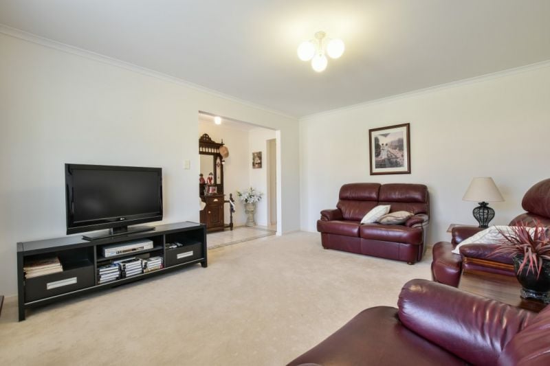 There are three large bedrooms, two with walk in robes, ensuite and a 3 way main bathroom. The master bedroom also has sliding doors to the rear and a lovely outlook to the garden and distant hills.