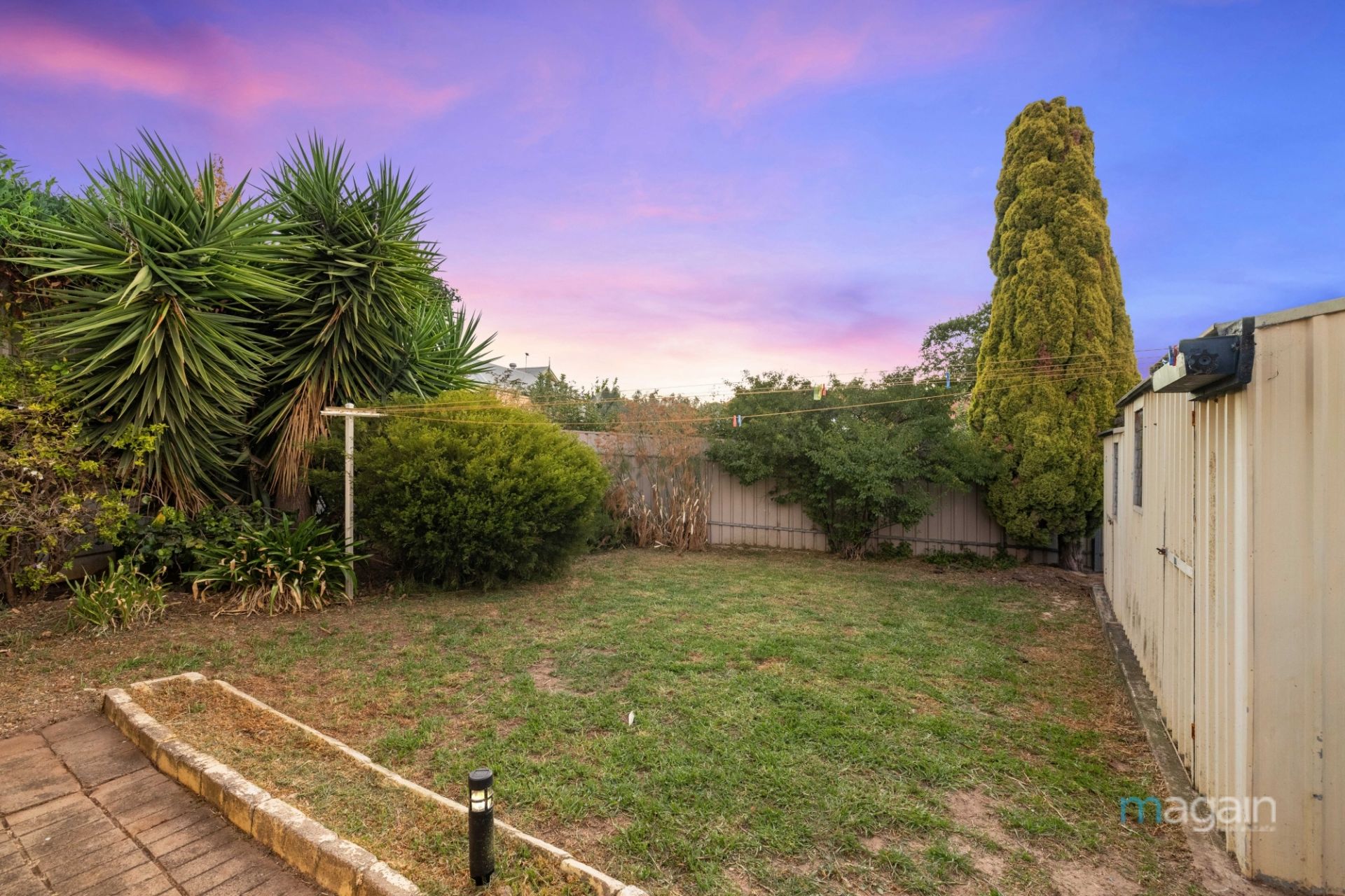 Outside through sliding doors, a paved undercover pergola provides an ideal space for entertaining and relaxing, while the low-maintenance backyard includes two small garden sheds (3.9m x 2.2m & 2.2m x 2.2m) and a tidy lawn area.
