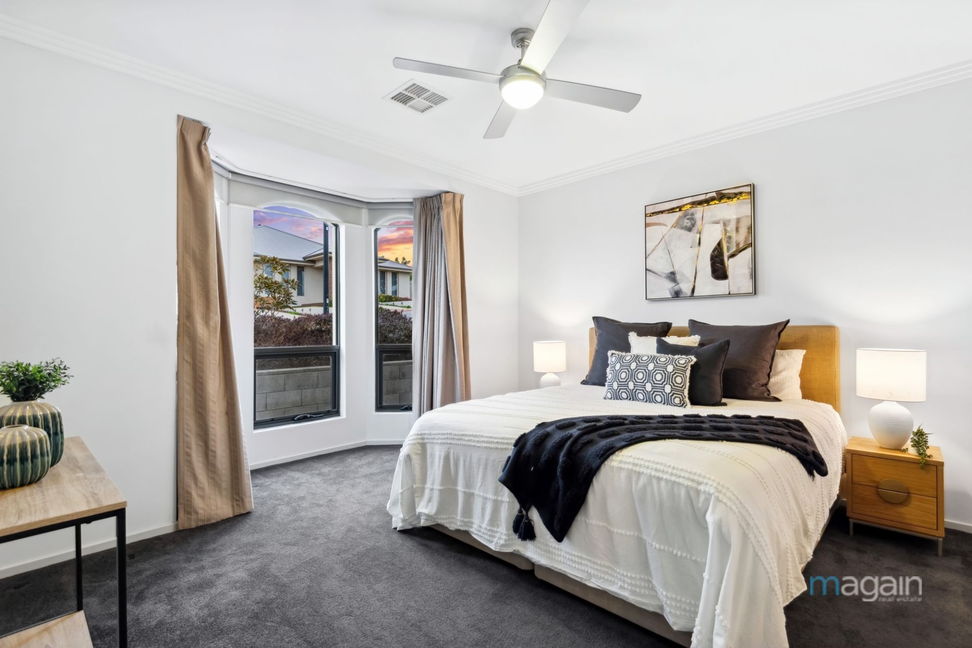 Nestled in the scenic landscape of Sheidow Park, this stunning four-bedroom residence, meticulously crafted by renowned builders Hickinbotham Homes in 2014, epitomizes luxury living. With its commanding presence and breathtaking panoramic views across rolling hills and valleys, this home embodies opulence.