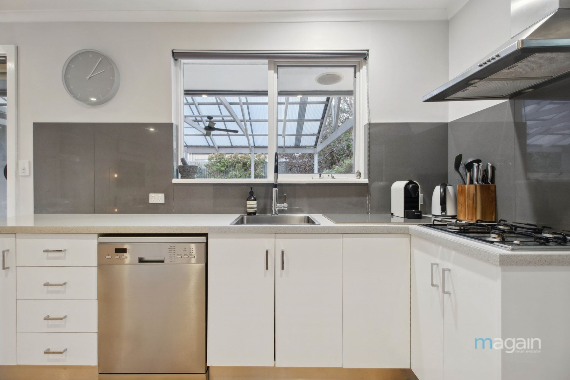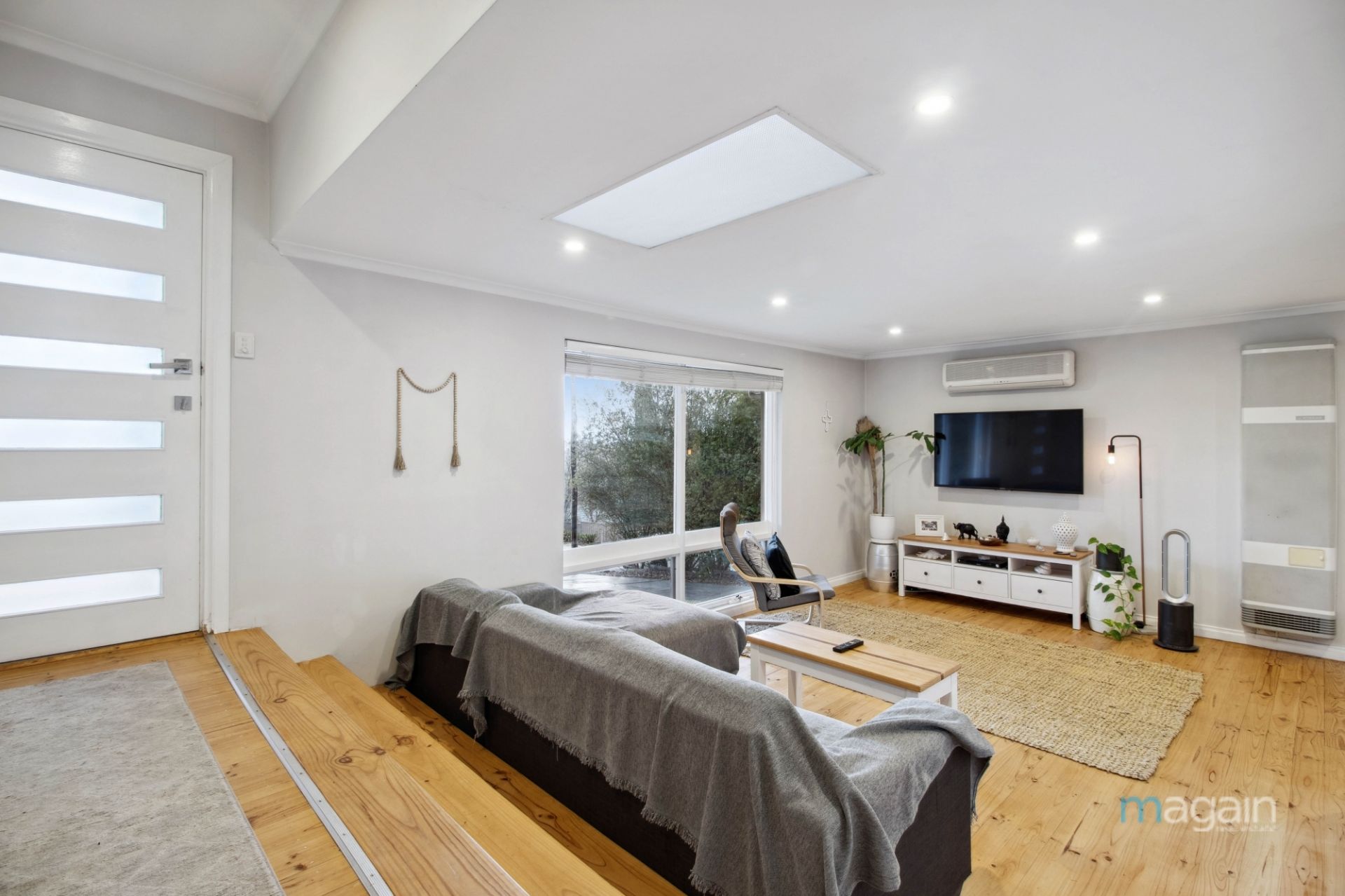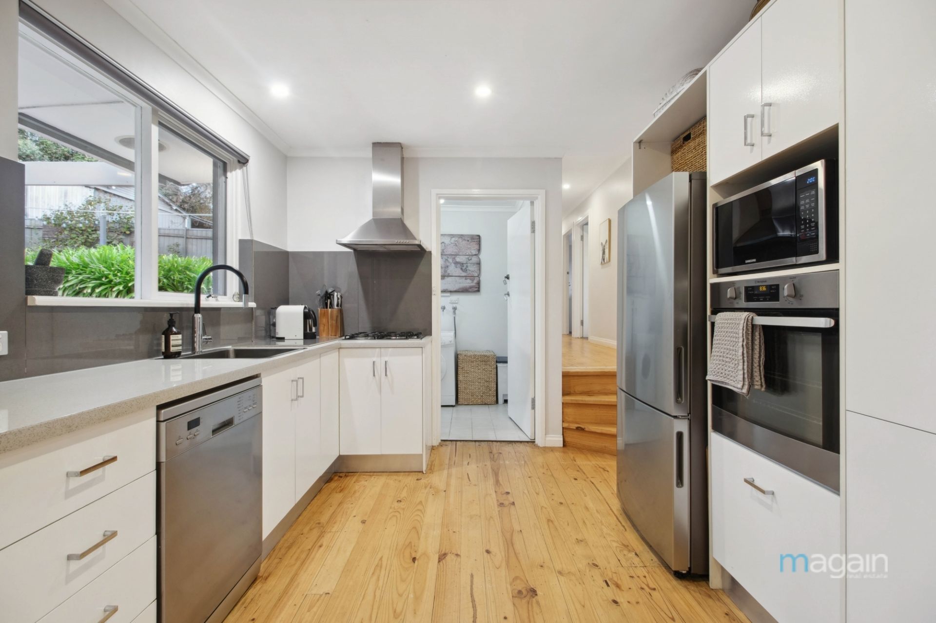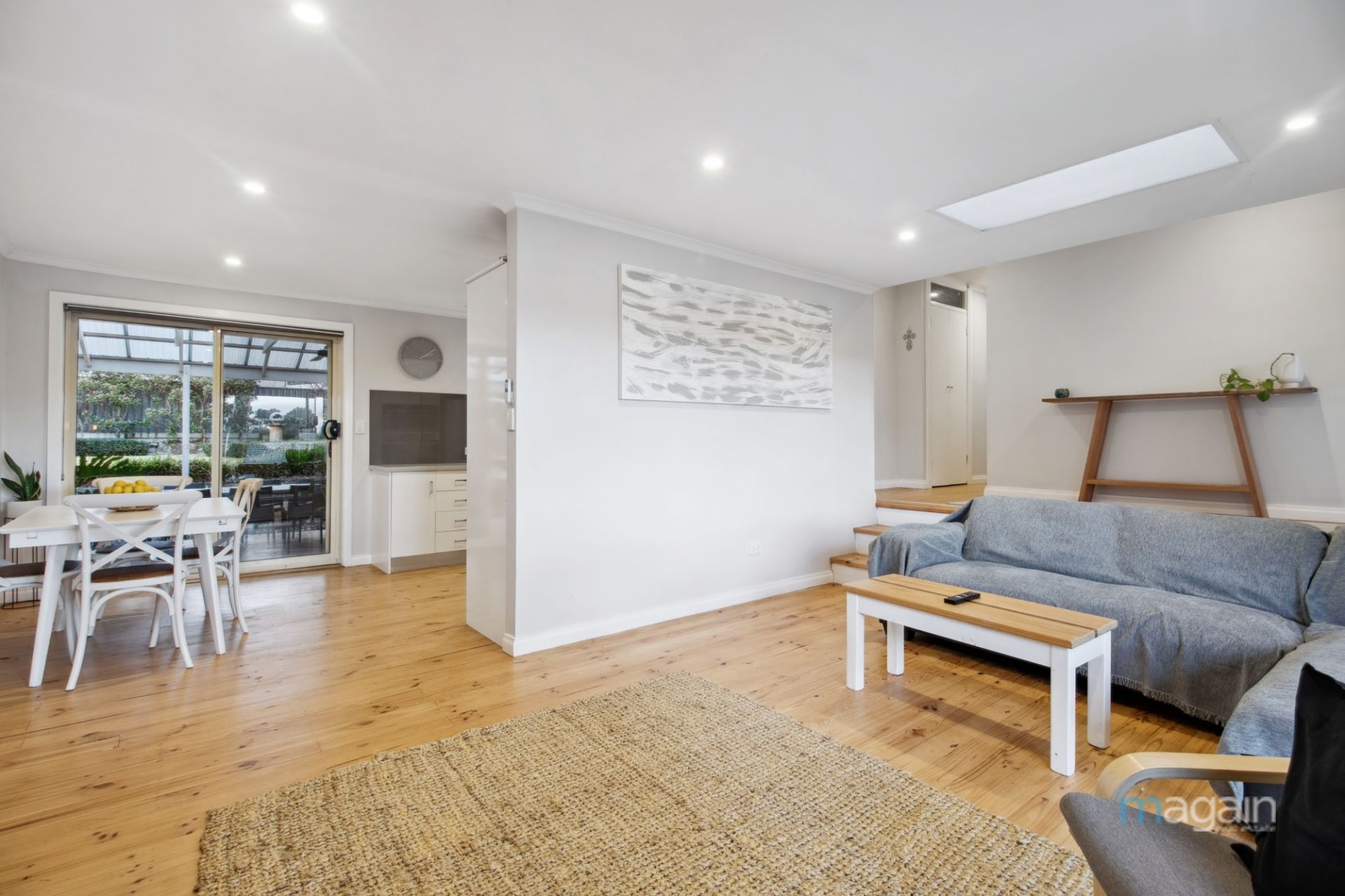 Conveniently located off the kitchen is the laundry, which has direct external access. Heading up the steps and down the hallway, you'll find three generously sized bedrooms, each with ceiling fans and built-in robes. The modern family bathroom services all three bedrooms, and the separate toilet makes for stress-free mornings.
