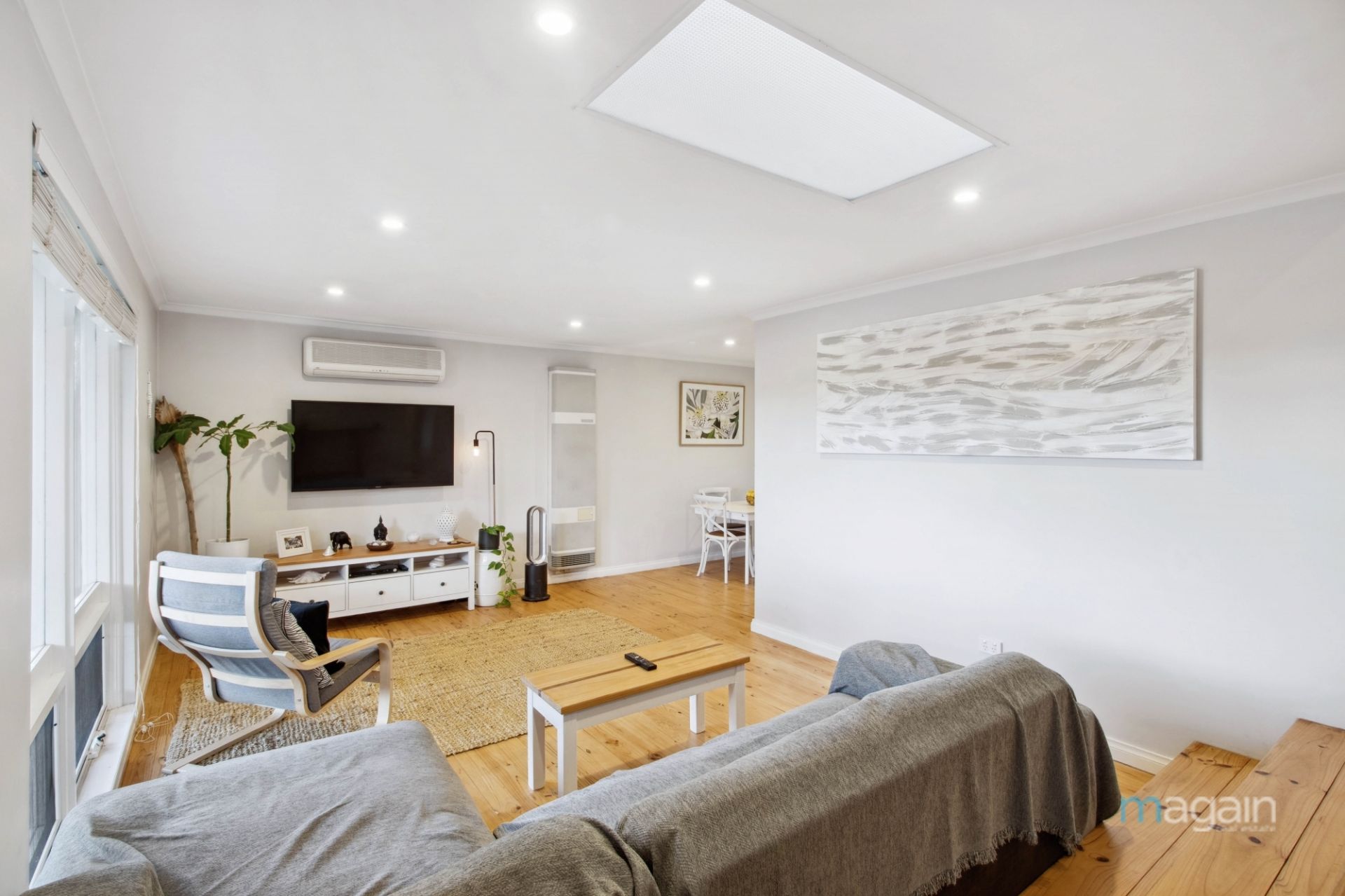 As you step into the hallway, you'll be greeted by the spacious main lounge area, sure to become the family hub. The lounge features a skylight, LED downlighting, a space heater, and a reverse cycle air conditioning unit, ensuring year-round comfort.