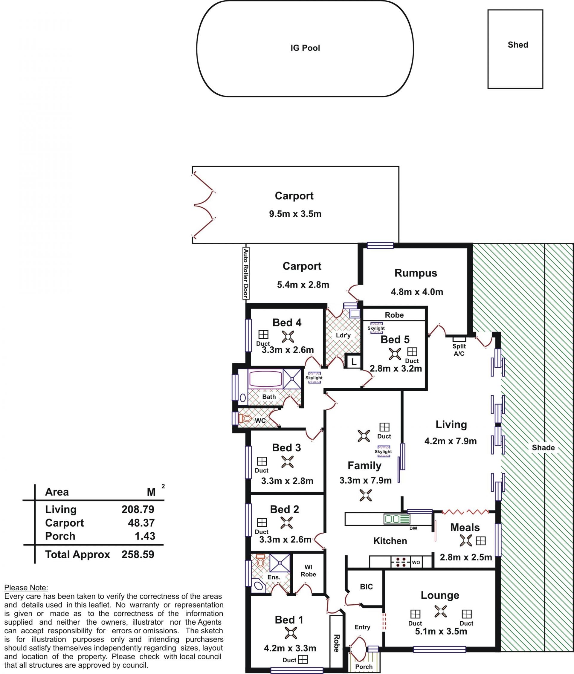 This home offers five bedrooms main has walk-in robe, built-in robe & ensuite, while all have ceiling fans, formal lounge and central kitchen with adjoining meals area. The family room leads into a huge living area with split system air conditioner & the large sliding doors open up to a shaded pergola area. The rumpus room could easily be used for a home gym or office/study. The family bathroom is easily accessible and offers the convenience of a separate toilet. Valuable extras include ducted & zoned reverse cycle air conditioning, large cloakroom/storage area, easy care floating floors in all high traffic areas, while the kitchen features a large breakfast bar and a dishwasher.