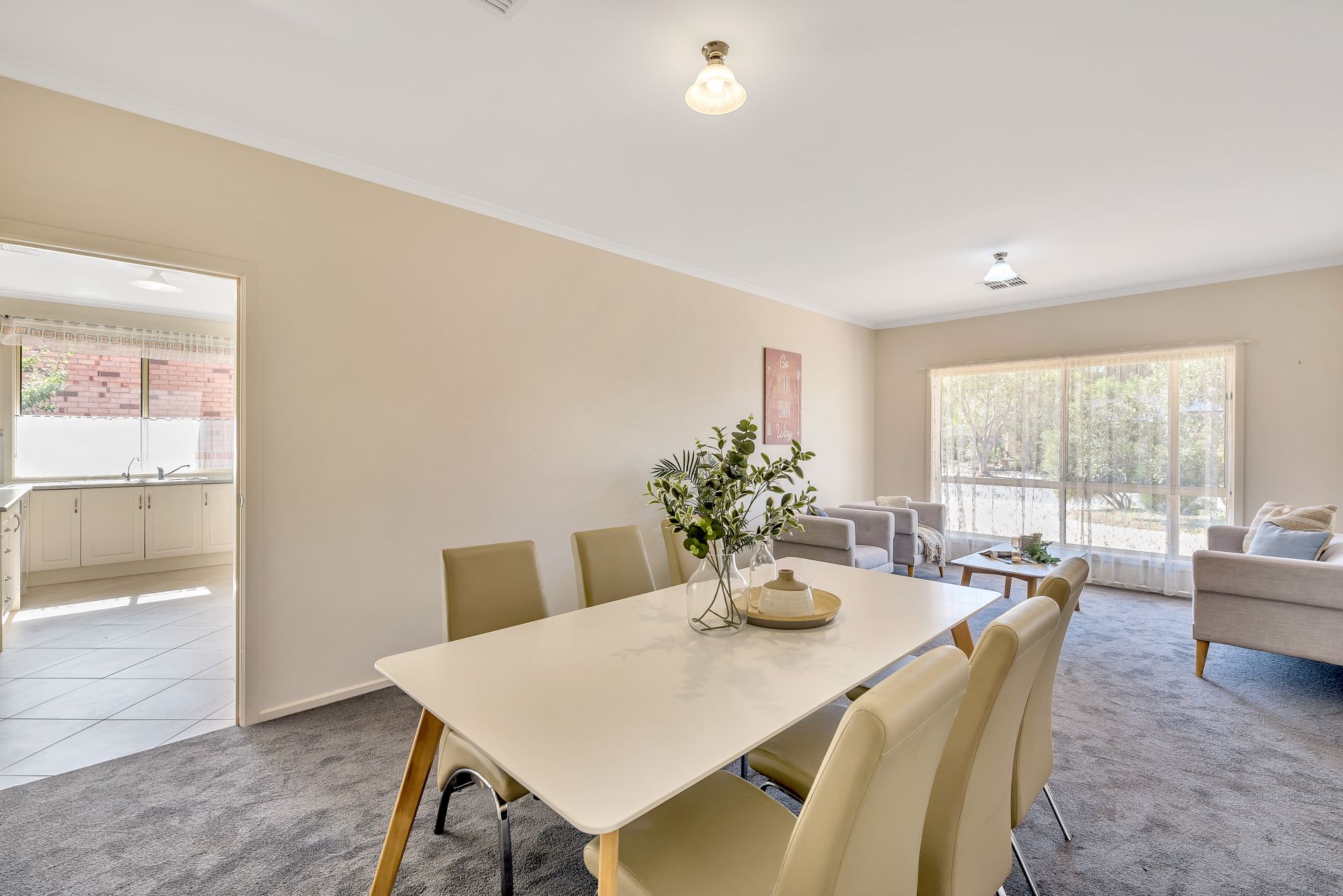 Outside features double garage with auto roller door with access through to the rear of the home, large alfresco dining area with ceiling fan and mains gas outlet ready to go.