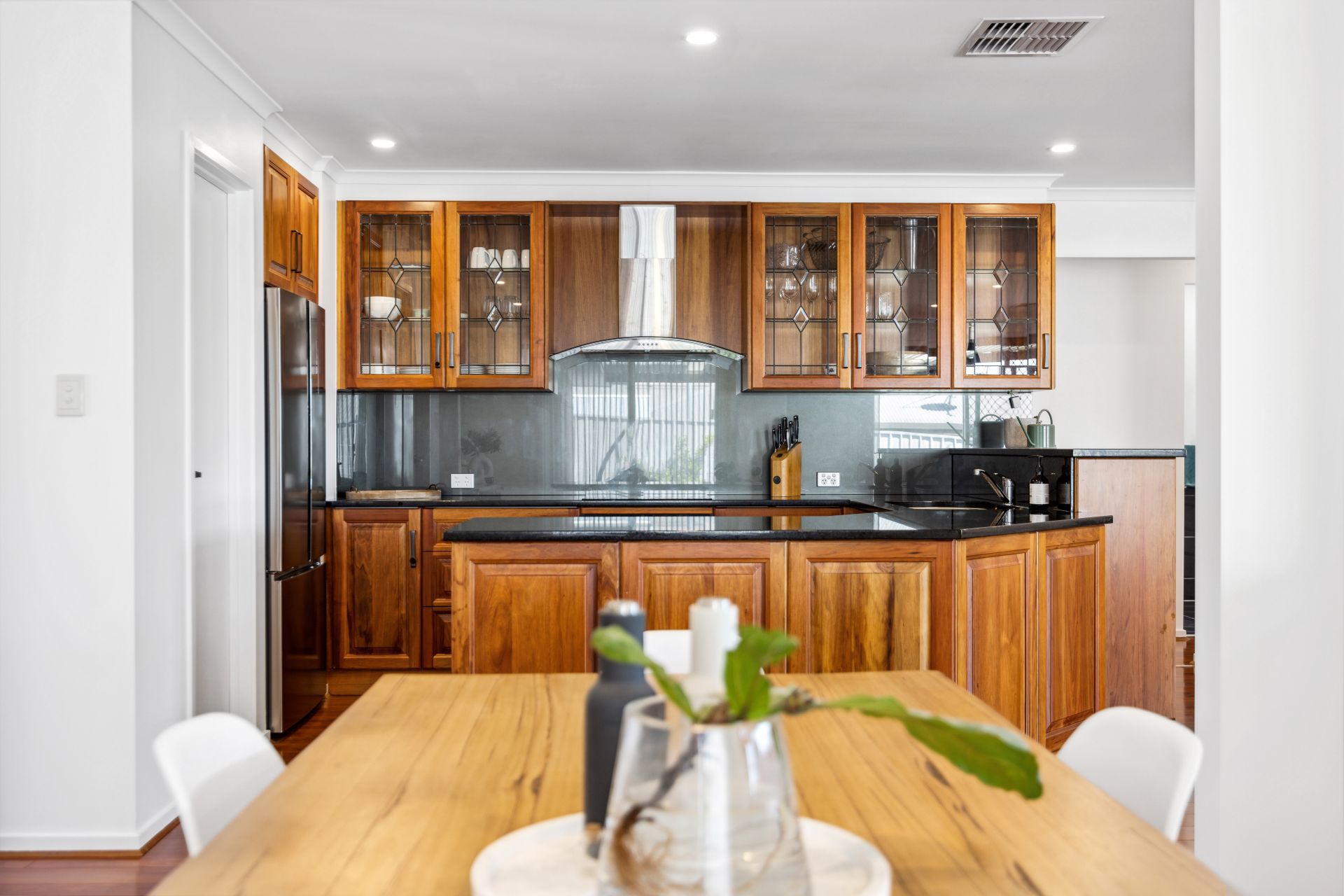 Transitioning effortlessly from the formal lounge, discover a spacious open-plan kitchen/dining and living space adorned with timeless elements throughout, while a large window showcases the expansive views that this property boasts. The gourmet kitchen is a haven for culinary enthusiasts, featuring a walk-in pantry, sleek benchtops, and a central breakfast bar serving as a focal point for gatherings.