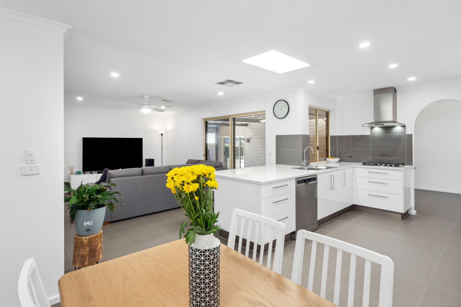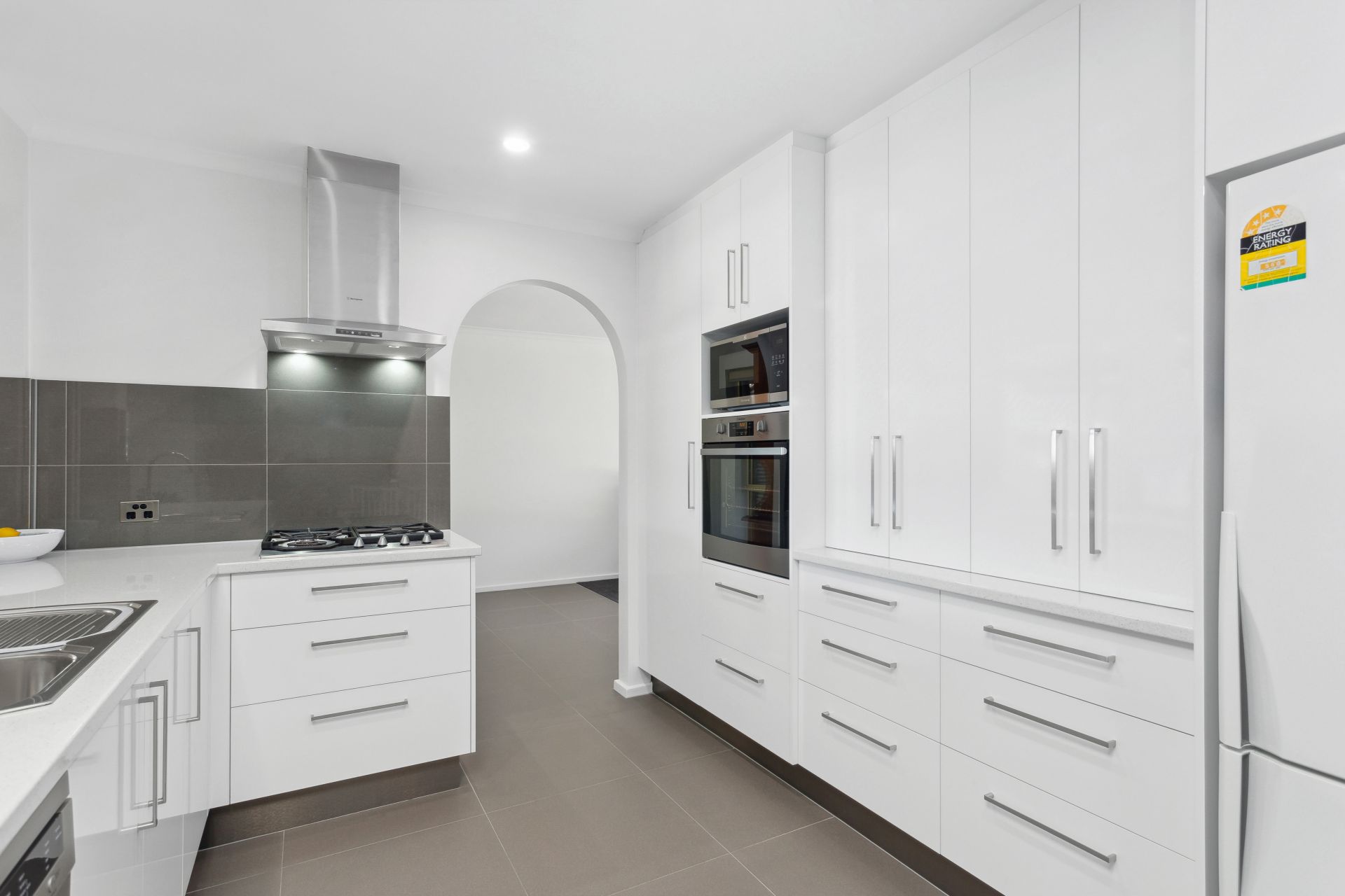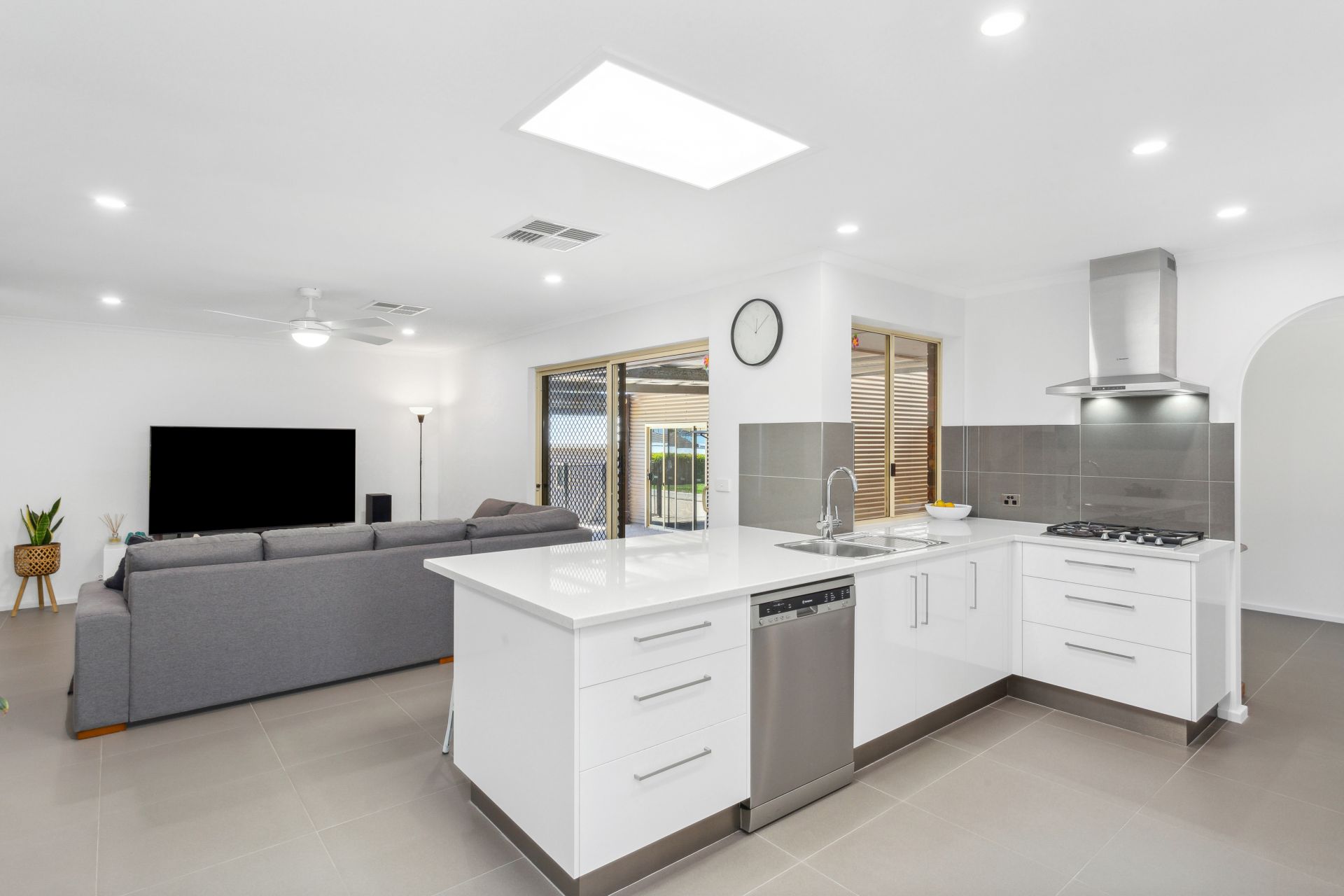 Step inside and prepare to be wowed by the contemporary interiors, featuring an open flowing floorplan and large windows that allow beautiful natural light to seep through. From the entrance foyer, you have a spacious lounge and dining room on the right, this space is perfect for hosting formal gatherings, or you can step through to the open plan kitchen, meals and family room with sliding doors to the outdoors, perfect for entertaining guests and creating a seamless flow between the areas. At the heart of the home is the gourmet kitchen with all the must-have features you could wish for. You are treated to a suite of stainless-steel appliances including a Westinghouse electric oven, a gas cooktop, rangehood and dishwasher. There are sweeping laminate benchtops with a breakfast bar, ample storage space including the built-in pantry with pull out drawers, an appliance cupboard and under bench cabinets, all with soft close doors & drawers. With easy access to the dining room, the kitchen can easily cater for everything from a large family gathering to an intimate dinner for two. There are four good-sized bedrooms spread out across the home's layout, offering plenty of space for the whole family to unwind. The master bedroom is conveniently located at the front of the property and features a built-in robe and an ensuite bathroom. The three remaining bedrooms all have built-in robes and are all set in their own section along with the central bathroom. The main bathroom is well-appointed with a bath, shower, vanity and a separate toilet for added convenience. Additional features include ducted & zoned reverse cycle air conditioning throughout, ceiling fans in all bedrooms & both living areas, a renovated laundry with good storage, a large linen press cupboard, carpet in all bedrooms & lounge room and easy-care tiles in all other rooms.
