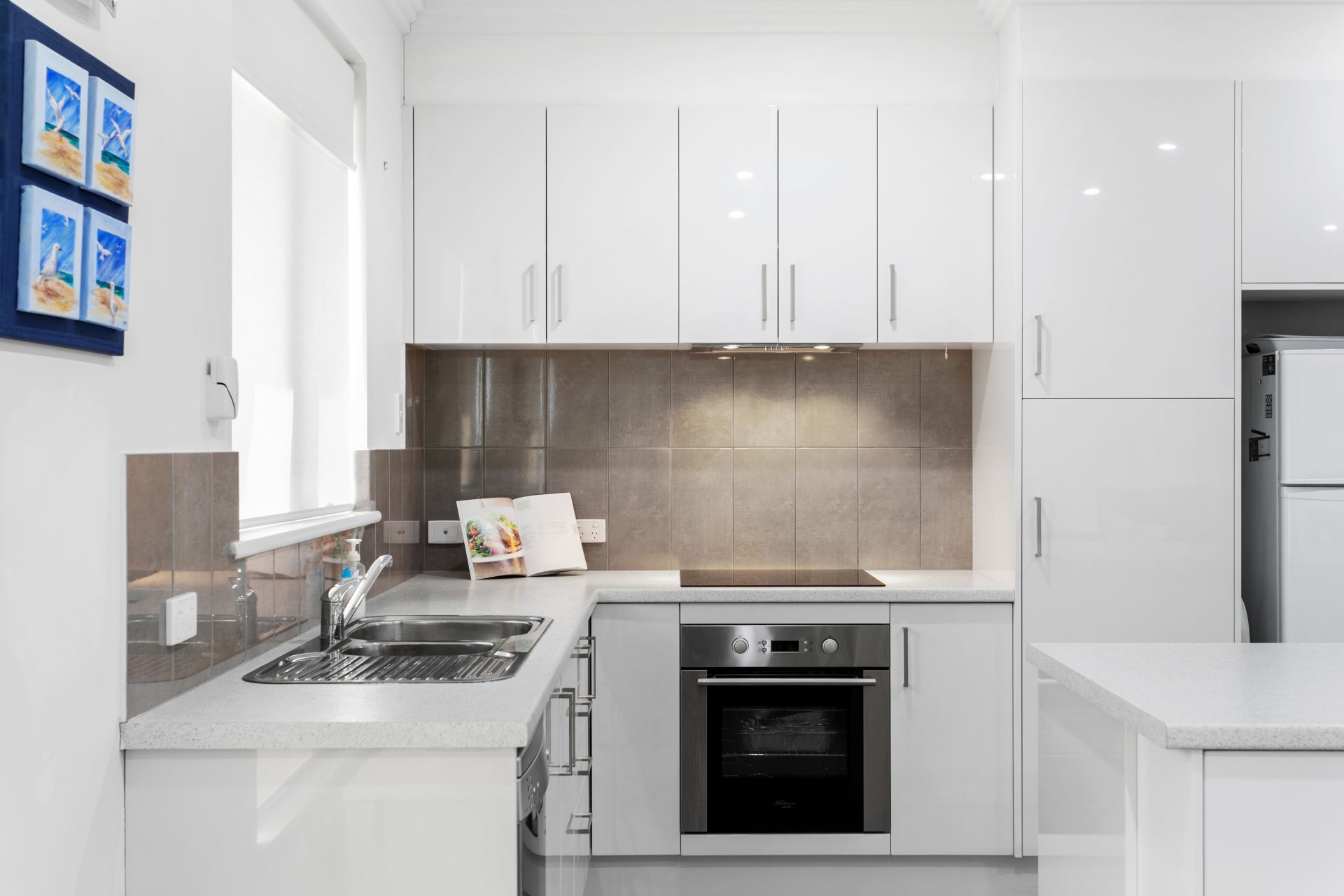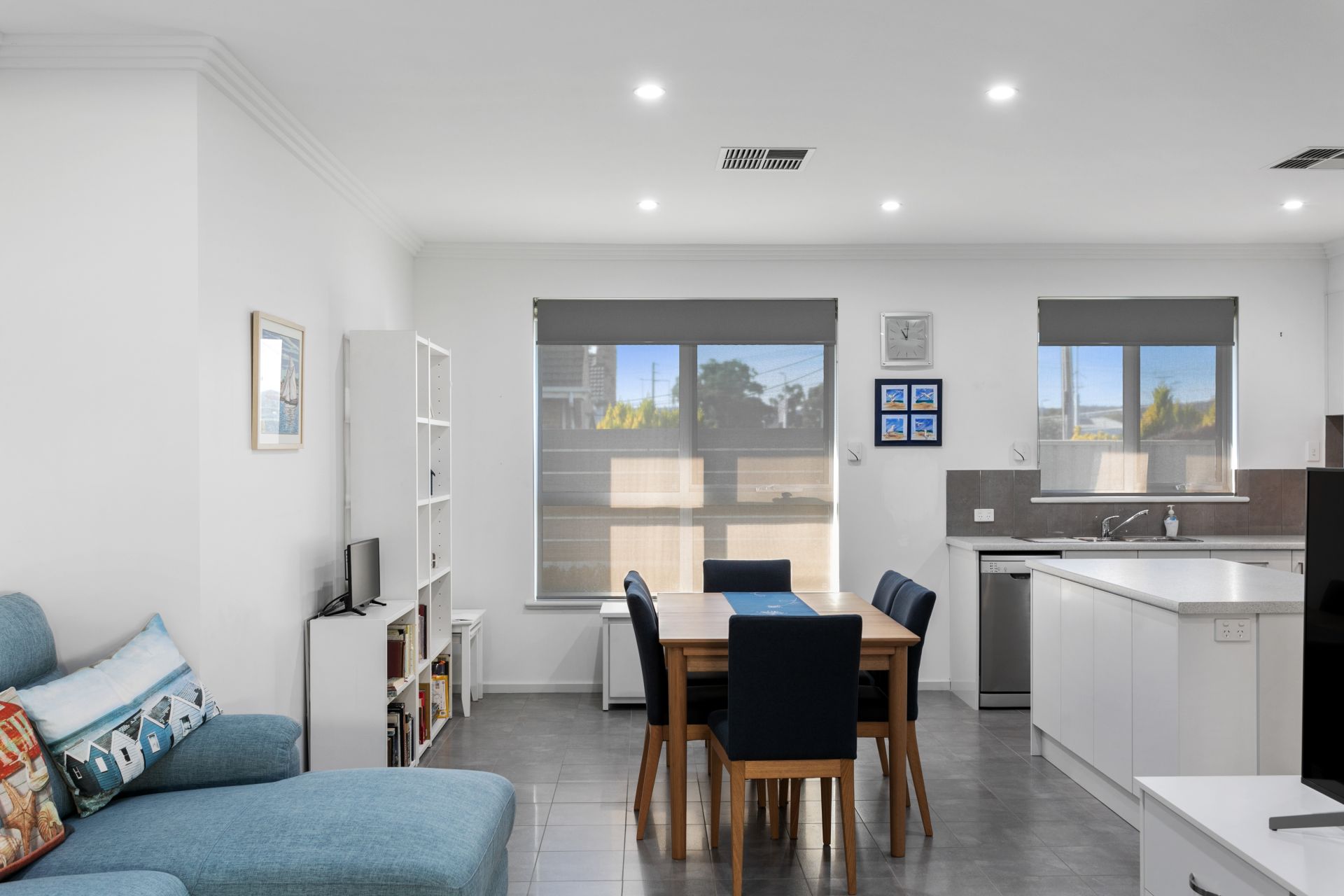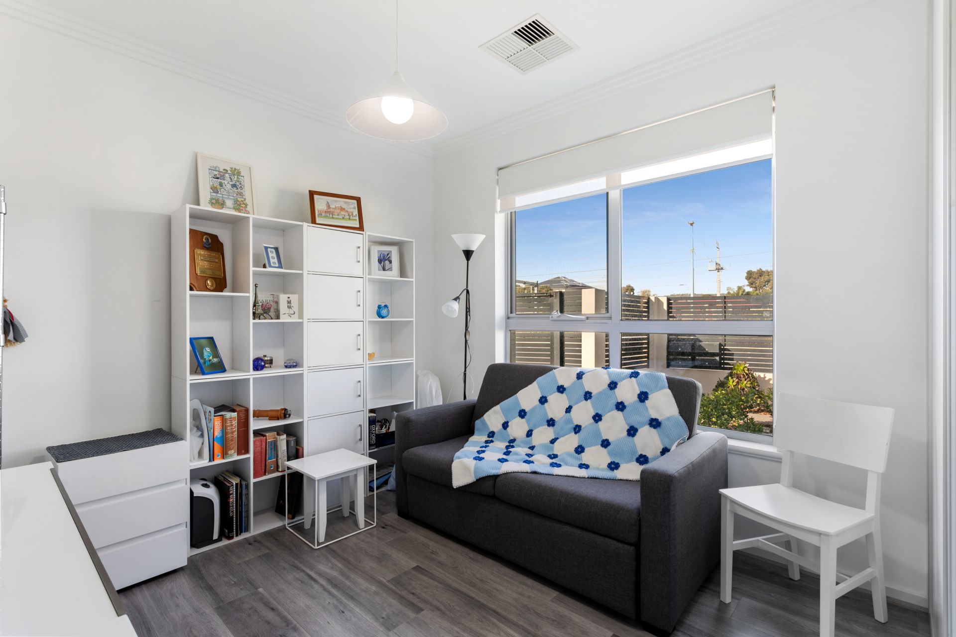 The spacious modern kitchen has lots of cupboard space and looks onto the dining room/lounge area. Tiles are throughout the living areas and the interior is tastefully decorated in neutral tones. Both bedrooms have built in wardrobes and easy-care floating floors. The large bathroom has 2 entrances and is adjacent to the separate laundry with built in cupboards that ads to the functionality of the unit.