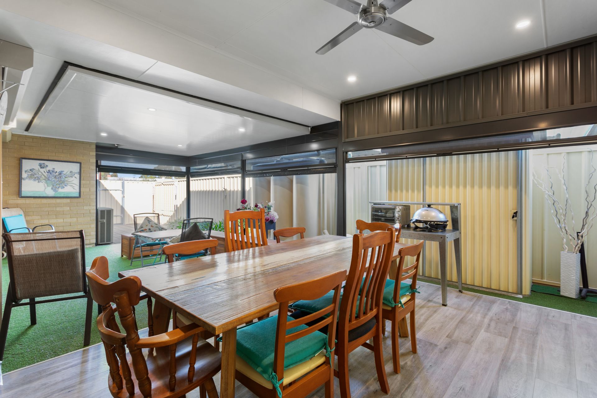 Ducted reverse cycle air conditioning completes the comfort of the home.