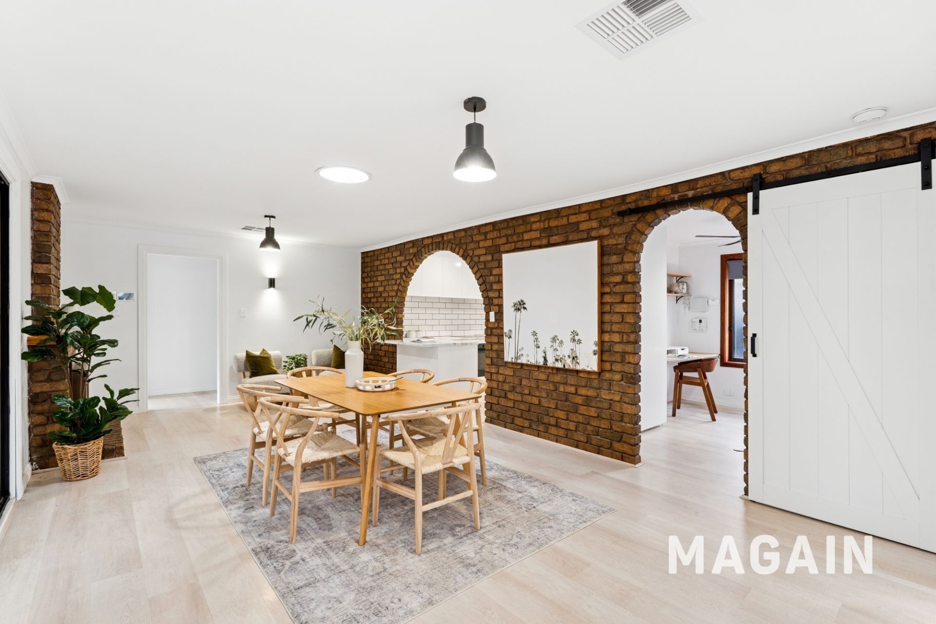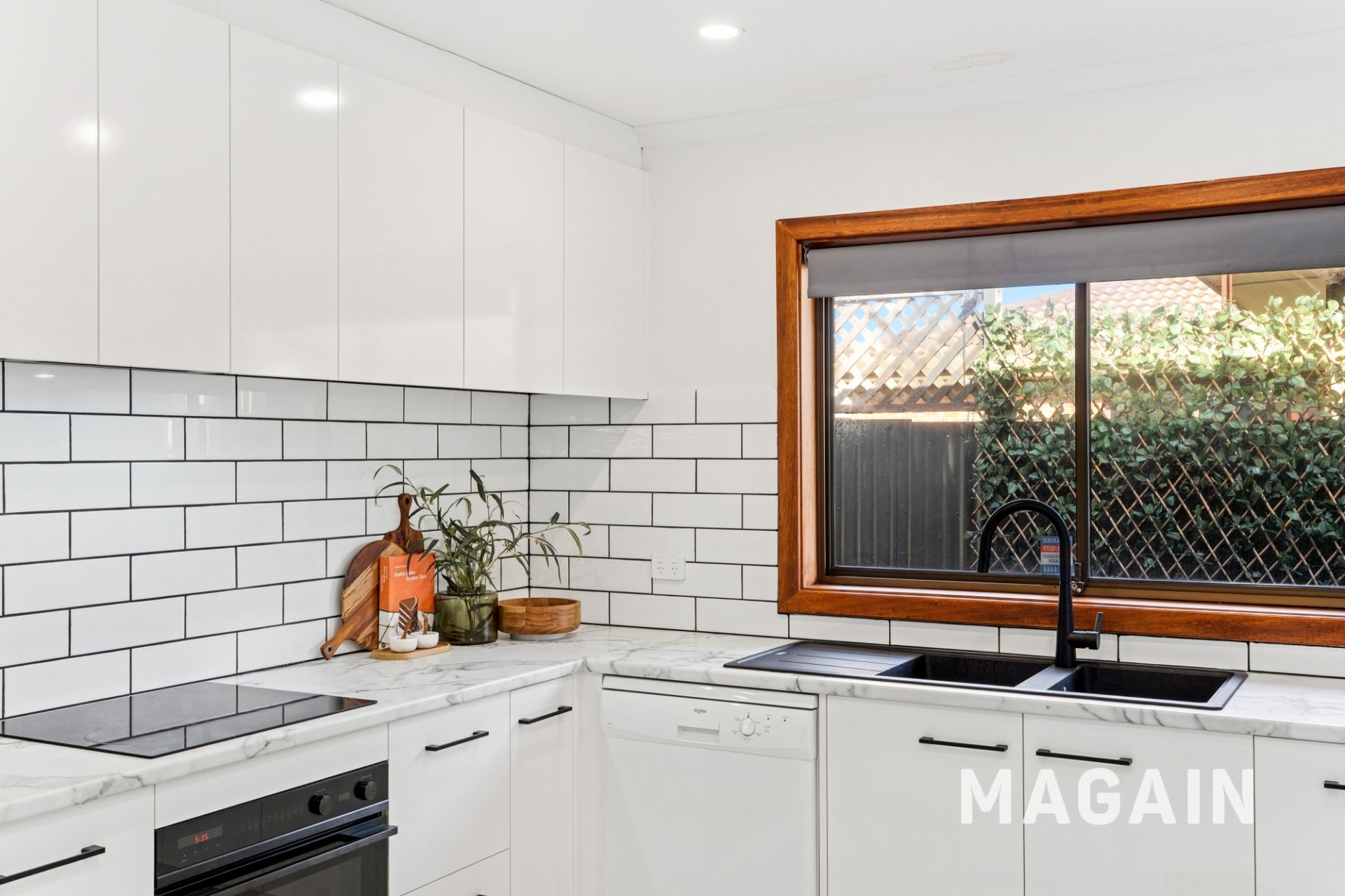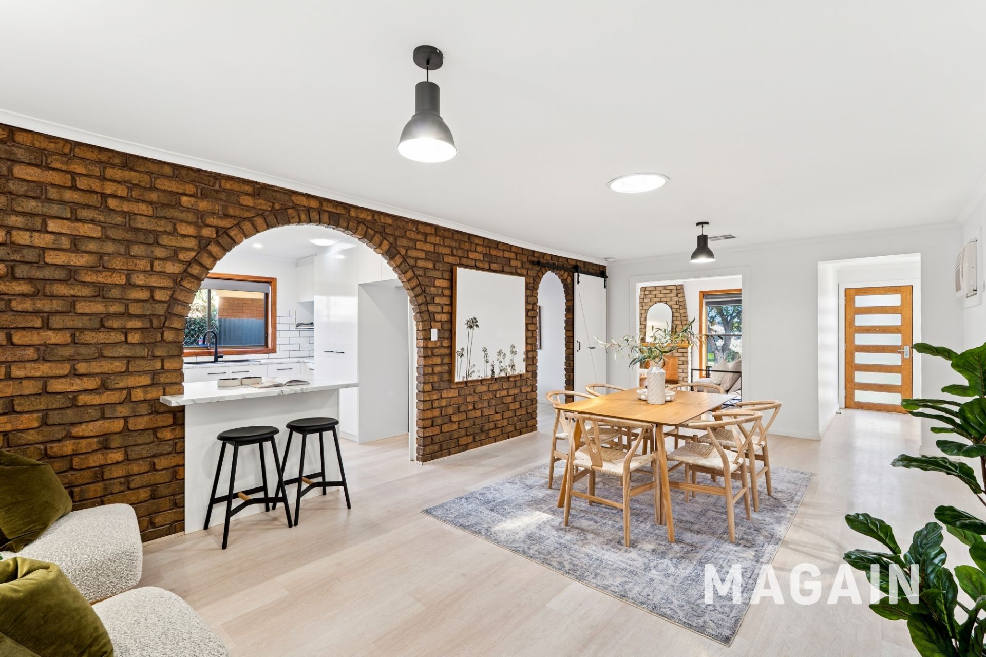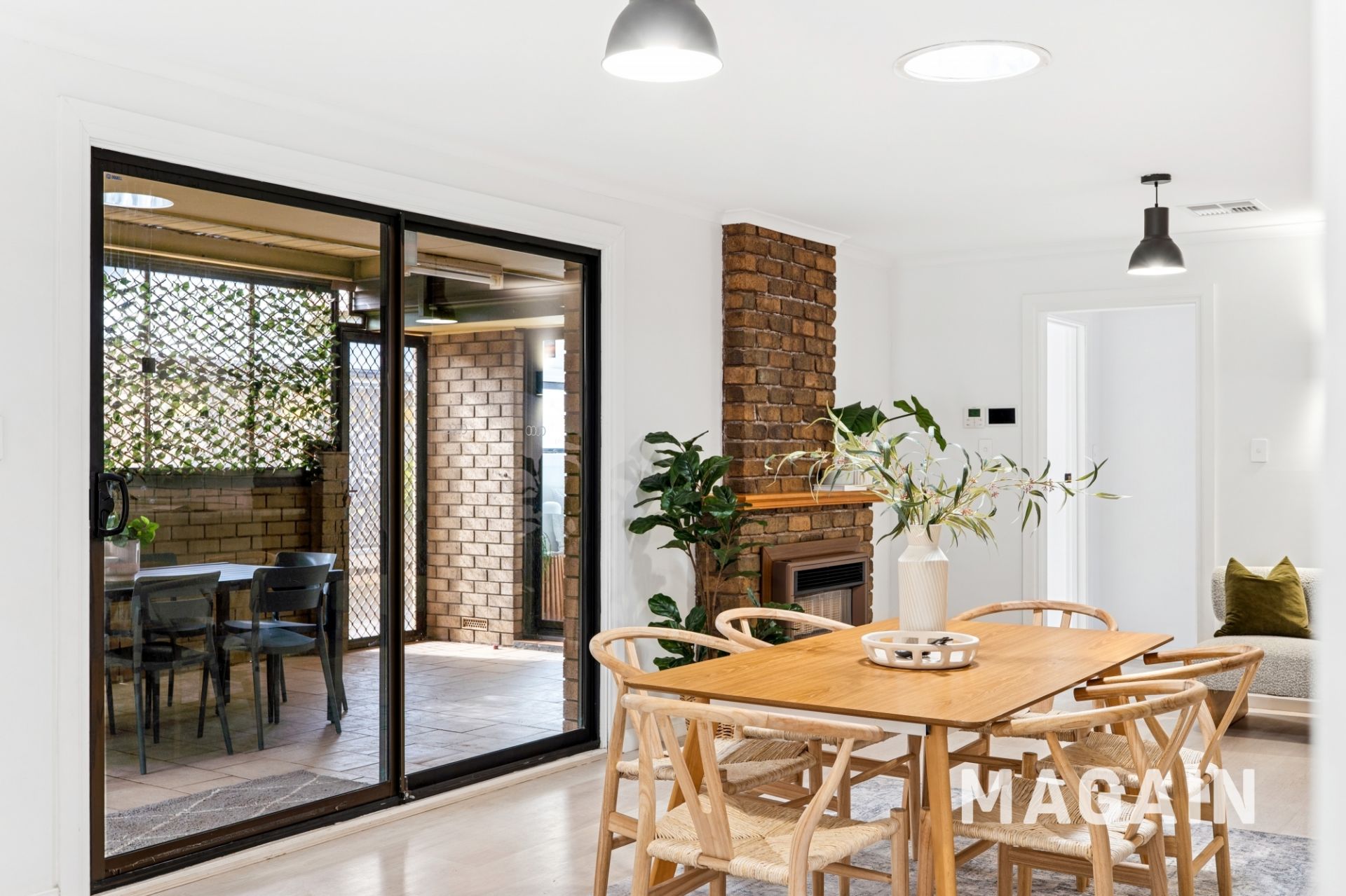 Step inside and be welcomed by a generous open plan living and dining area, filled with natural light thanks to a skylight, feature pendant lighting, and wide sliding glass doors that open to the outdoor verandah. A built in air conditioning unit and heating ensure year round comfort. Additionally, the modernised kitchen offers ample storage, an electric oven and cooktop, dual sink, and pantry-ideal for home cooks.