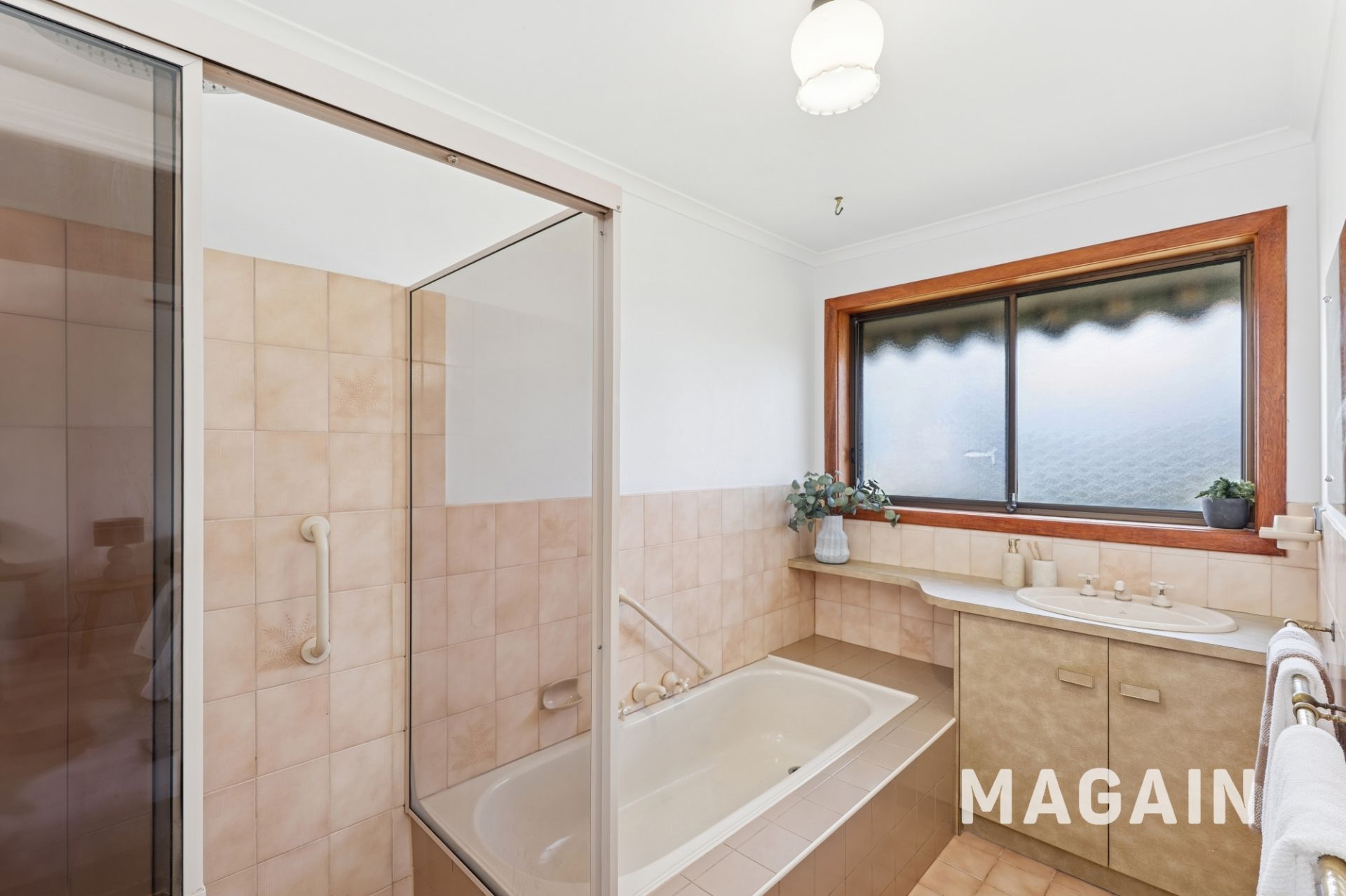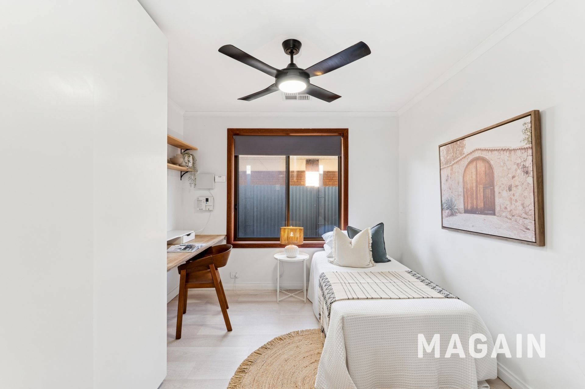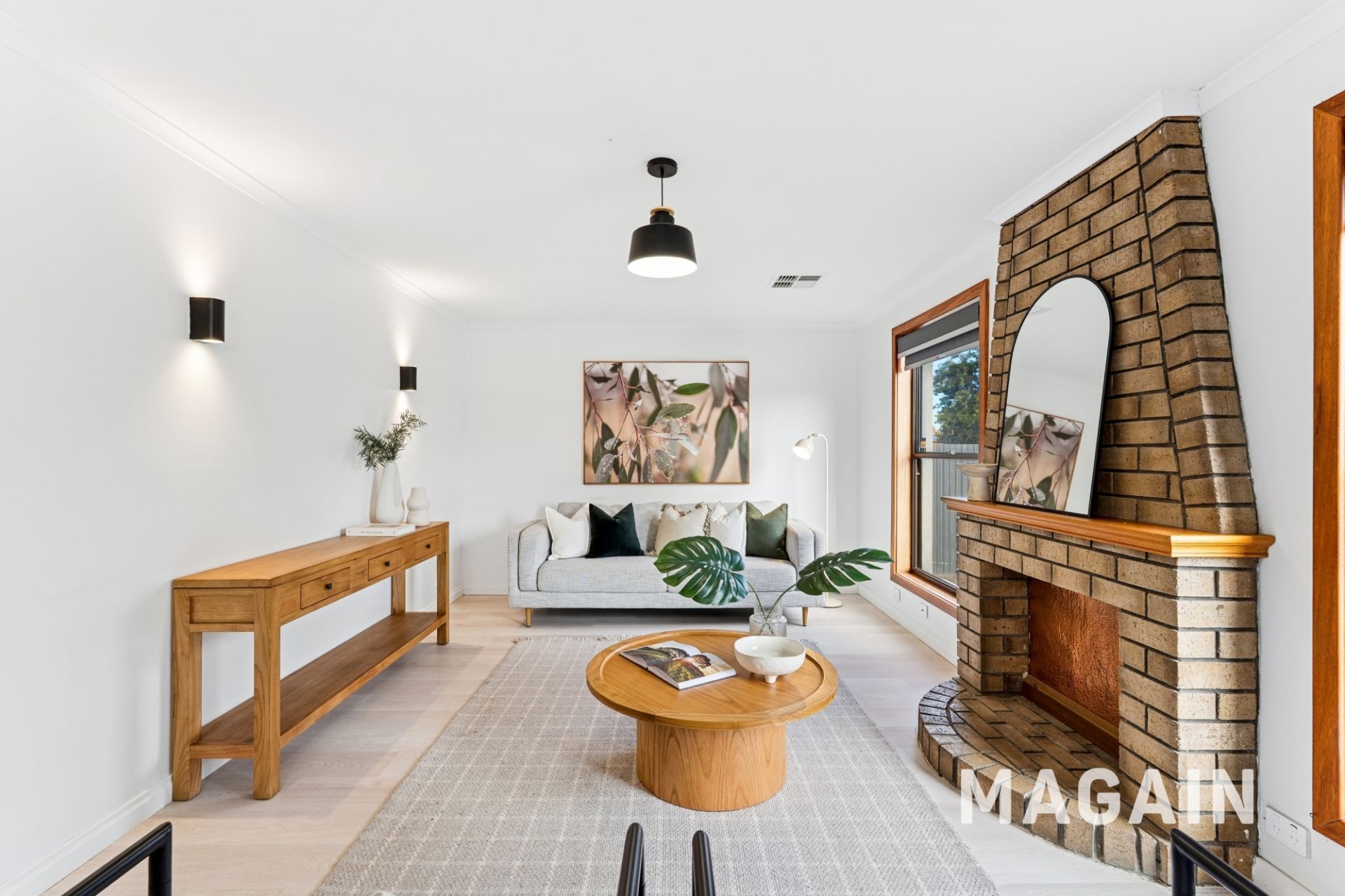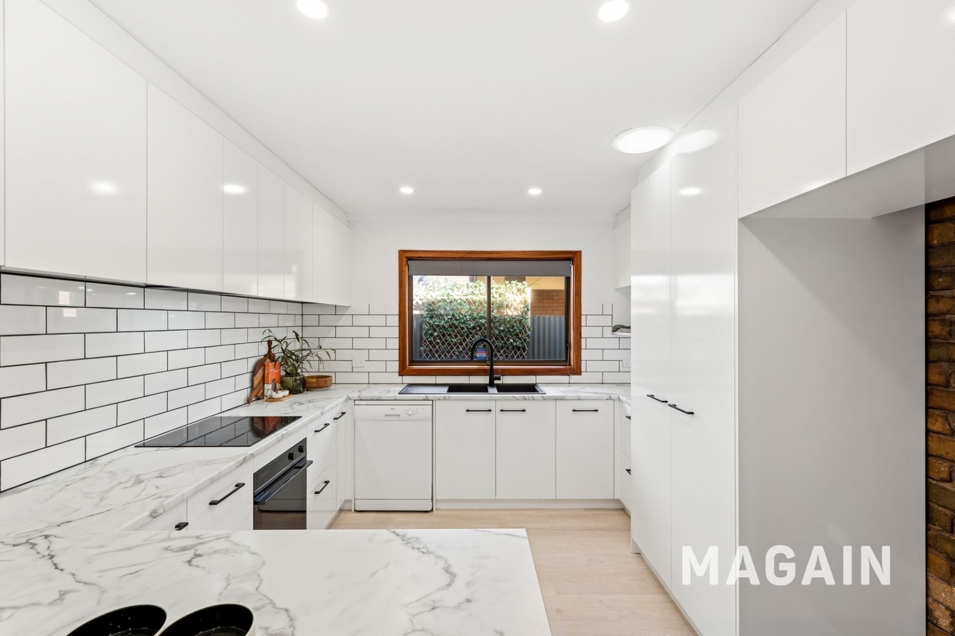 Step inside and be welcomed by a generous open plan living and dining area, filled with natural light thanks to a skylight, feature pendant lighting, and wide sliding glass doors that open to the outdoor verandah. A built in air conditioning unit and heating ensure year round comfort. Additionally, the modernised kitchen offers ample storage, an electric oven and cooktop, dual sink, and pantry-ideal for home cooks.