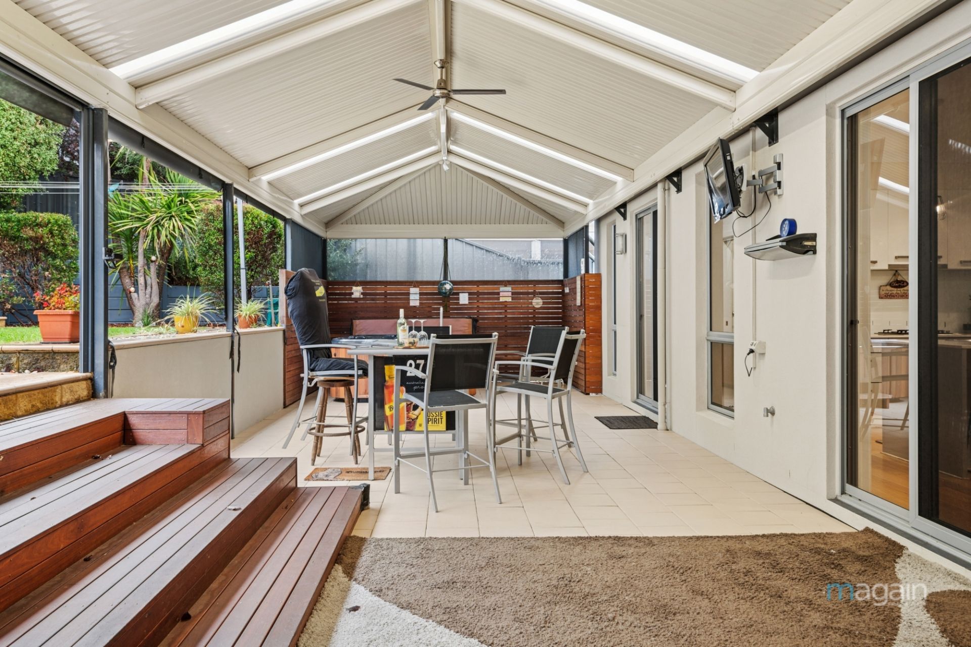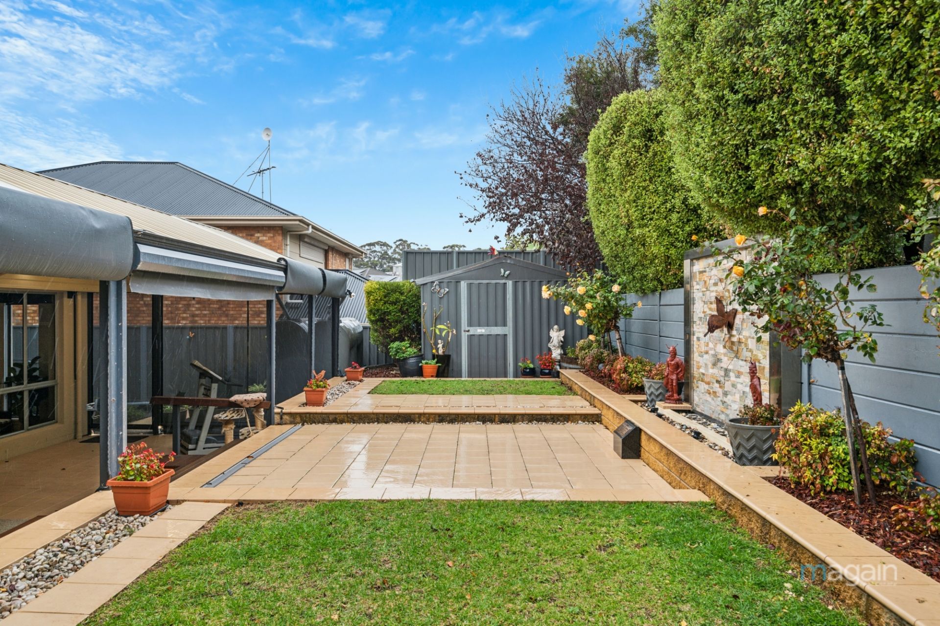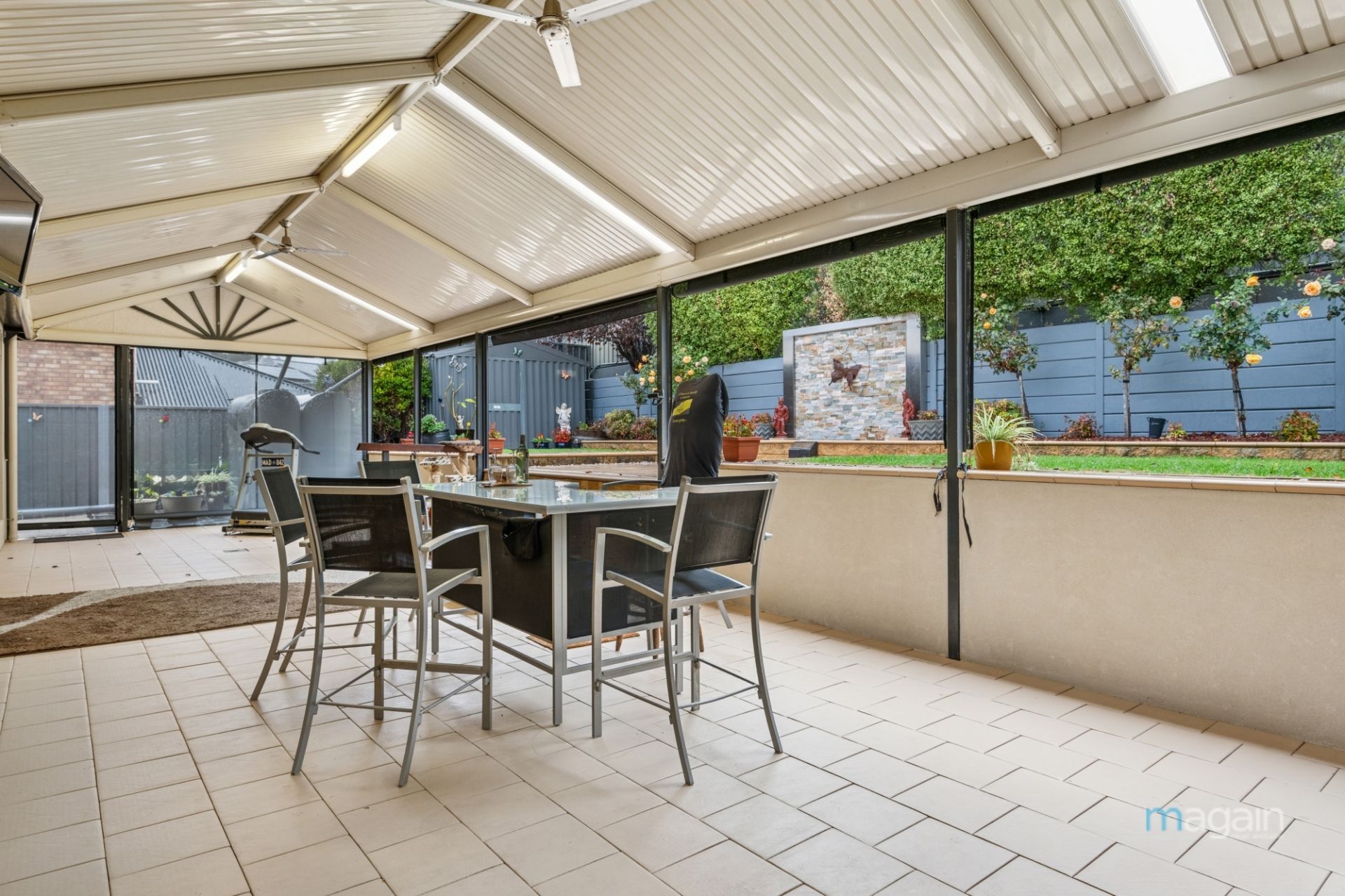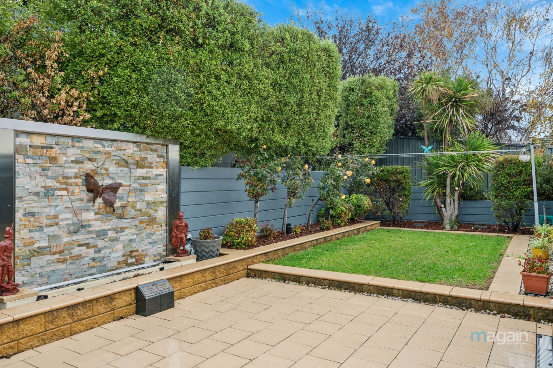 Step outside to your magnificent undercover entertaining area, complete with blinds and ceiling fans. There's enough lawn for kids and pets, without the maintenance. The rear yard is quite private, and you can see the love poured into the manicured gardens and unique water feature with lights.