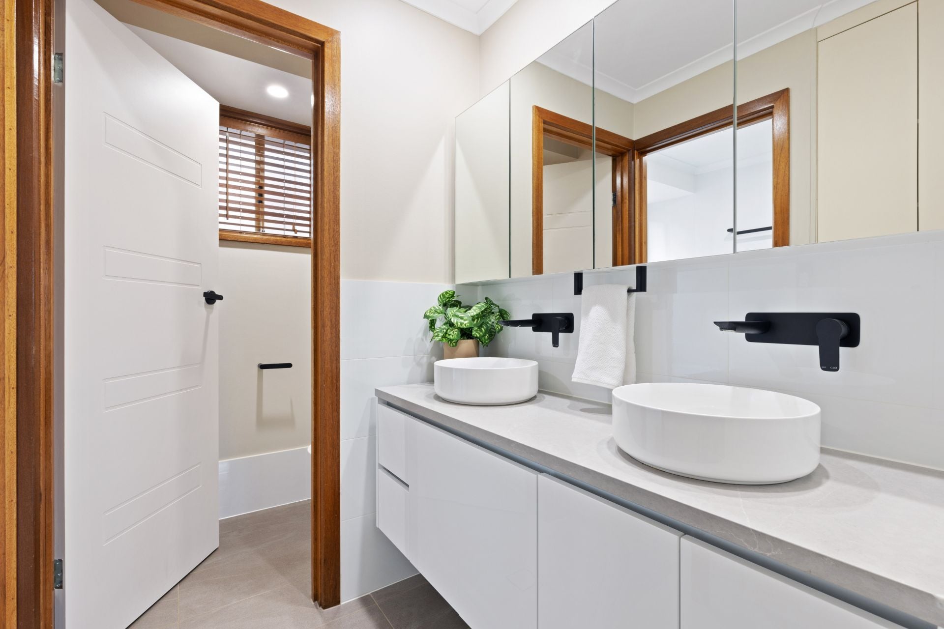 > bedroom 1 is ideally positioned at the front of the home and is complete with lovely bay window and a walk in robe that leads through to a neutral toned ensuite