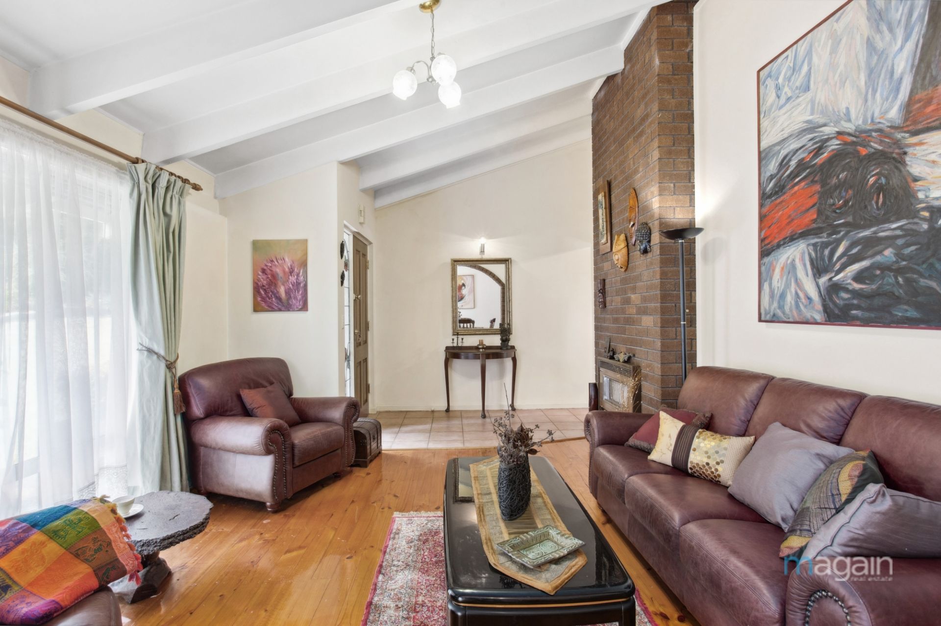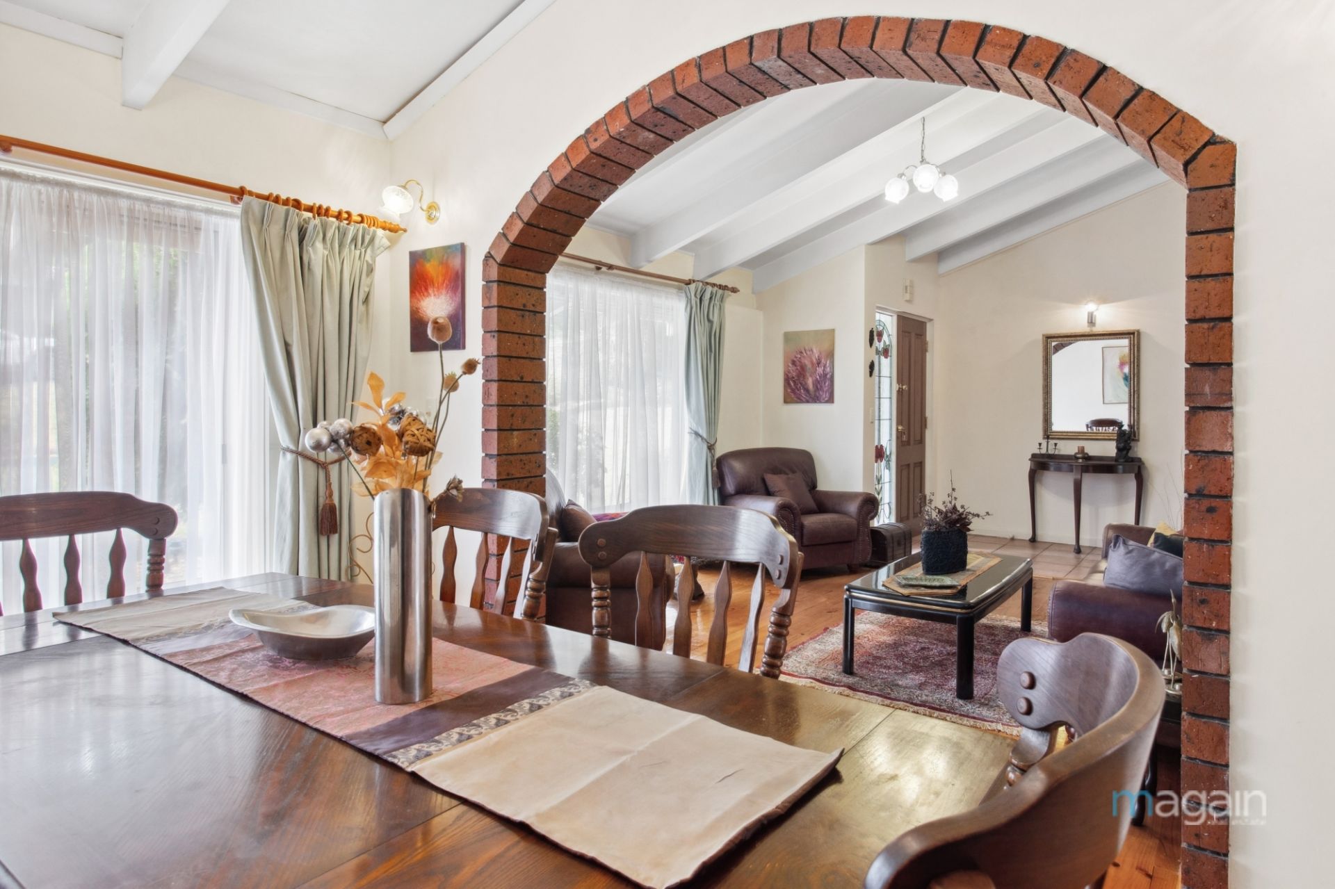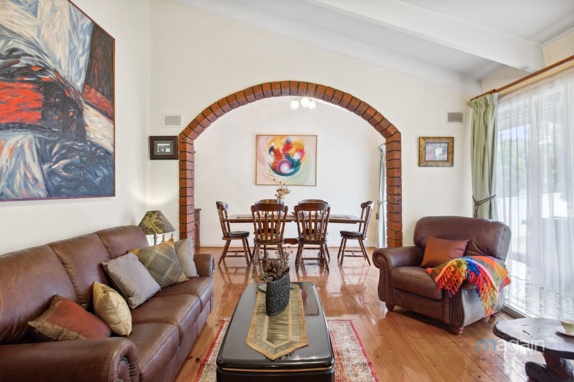 Upon entering the home, you'll find a spacious and sun-filled lounge and dining area to the right, complete with a cosy gas heater, beautiful timber floors, and lofty racked ceilings. This inviting space seamlessly flows into a well-designed kitchen featuring neutral-toned cabinetry and modern appliances, including a dishwasher and gas cooktop, connected to a convenient casual dining area. A second living area adjacent to the kitchen, set down on a split level, provides an ideal spot for entertaining and offers direct access to the outdoors through glass sliding doors. With split system heating and cooling, the home ensures comfort year-round.