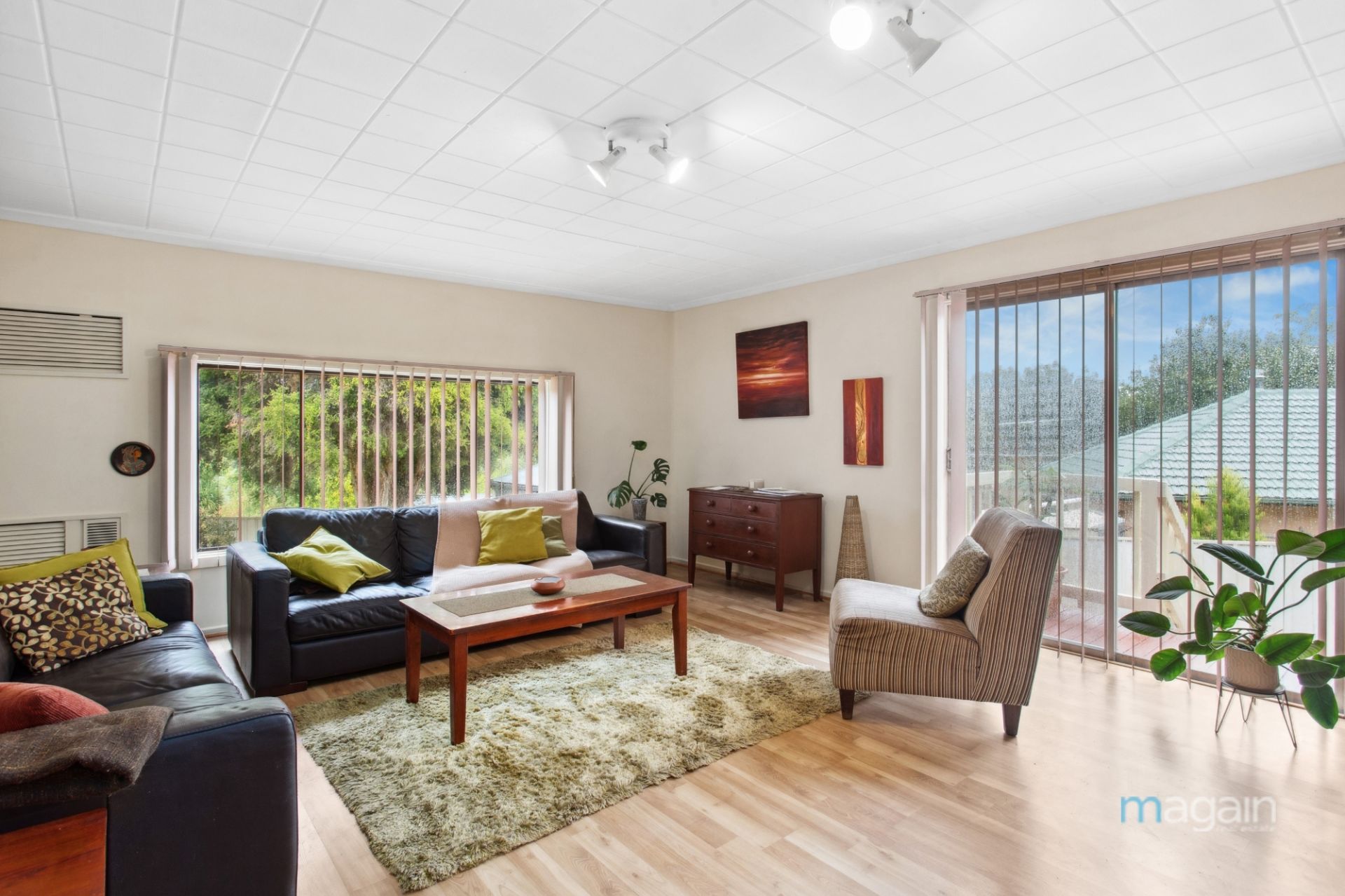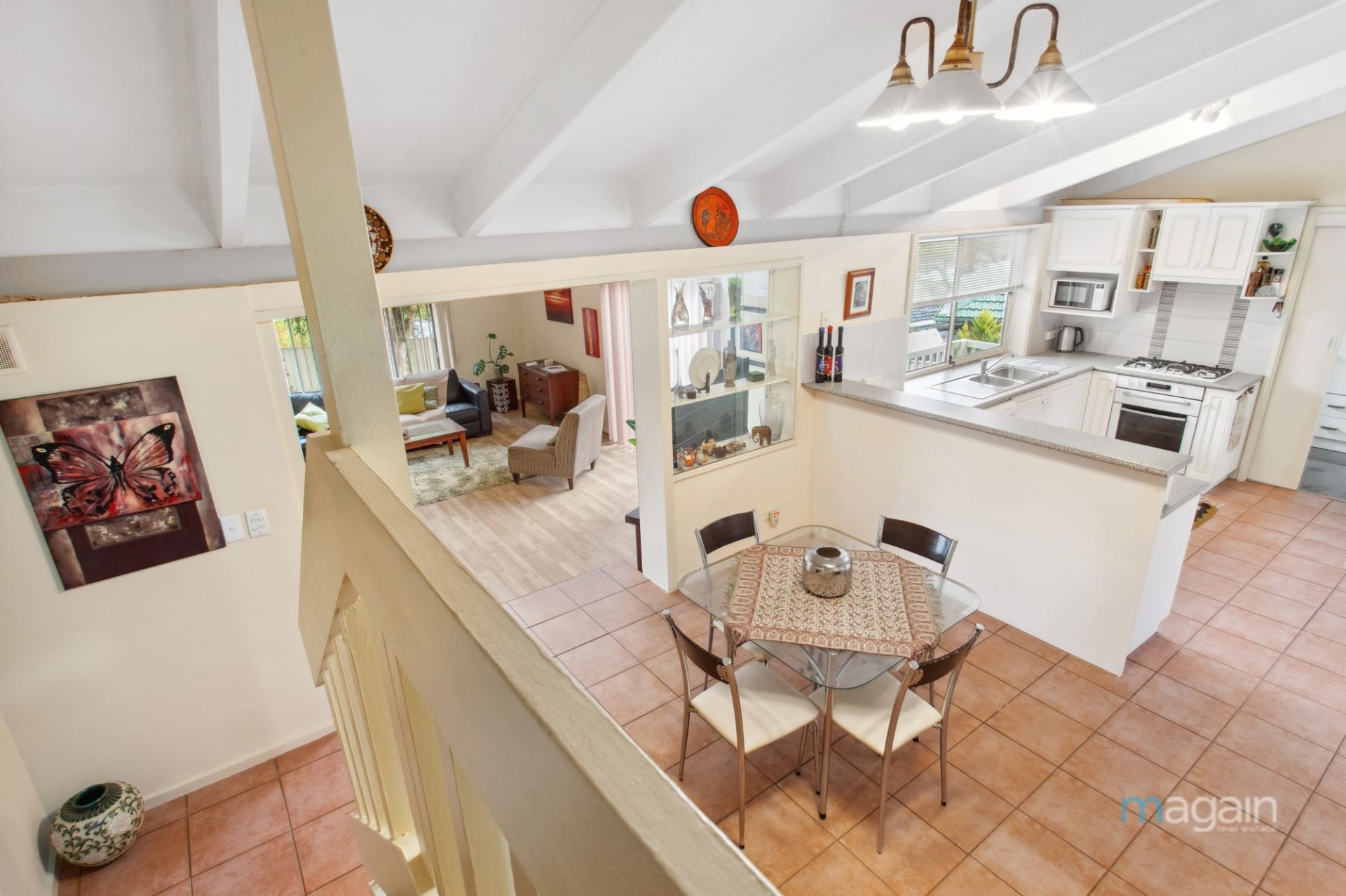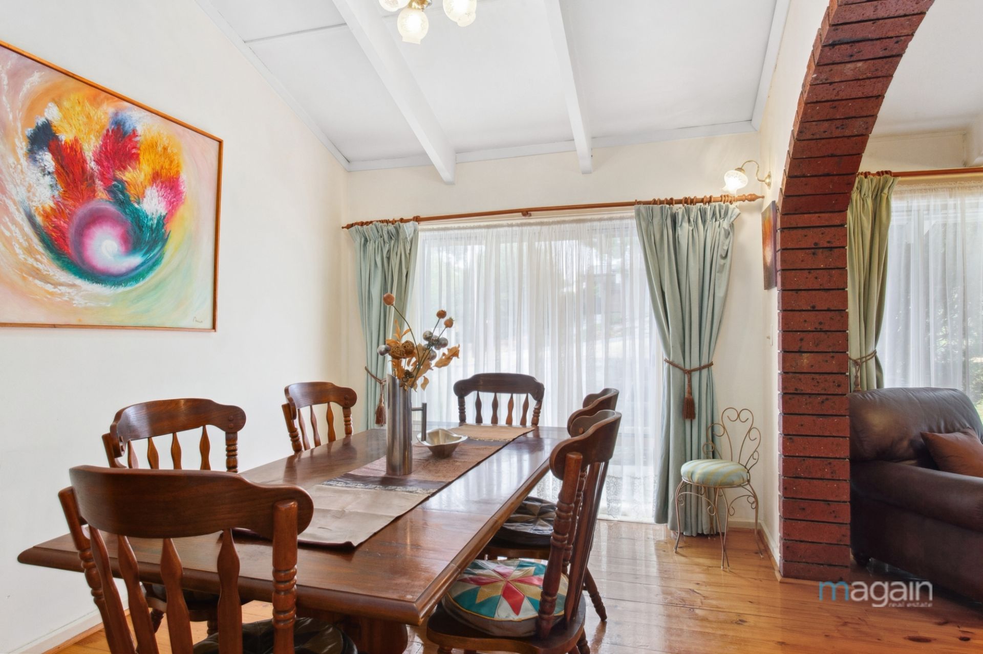 Upon entering the home, you'll find a spacious and sun-filled lounge and dining area to the right, complete with a cosy gas heater, beautiful timber floors, and lofty racked ceilings. This inviting space seamlessly flows into a well-designed kitchen featuring neutral-toned cabinetry and modern appliances, including a dishwasher and gas cooktop, connected to a convenient casual dining area. A second living area adjacent to the kitchen, set down on a split level, provides an ideal spot for entertaining and offers direct access to the outdoors through glass sliding doors. With split system heating and cooling, the home ensures comfort year-round.