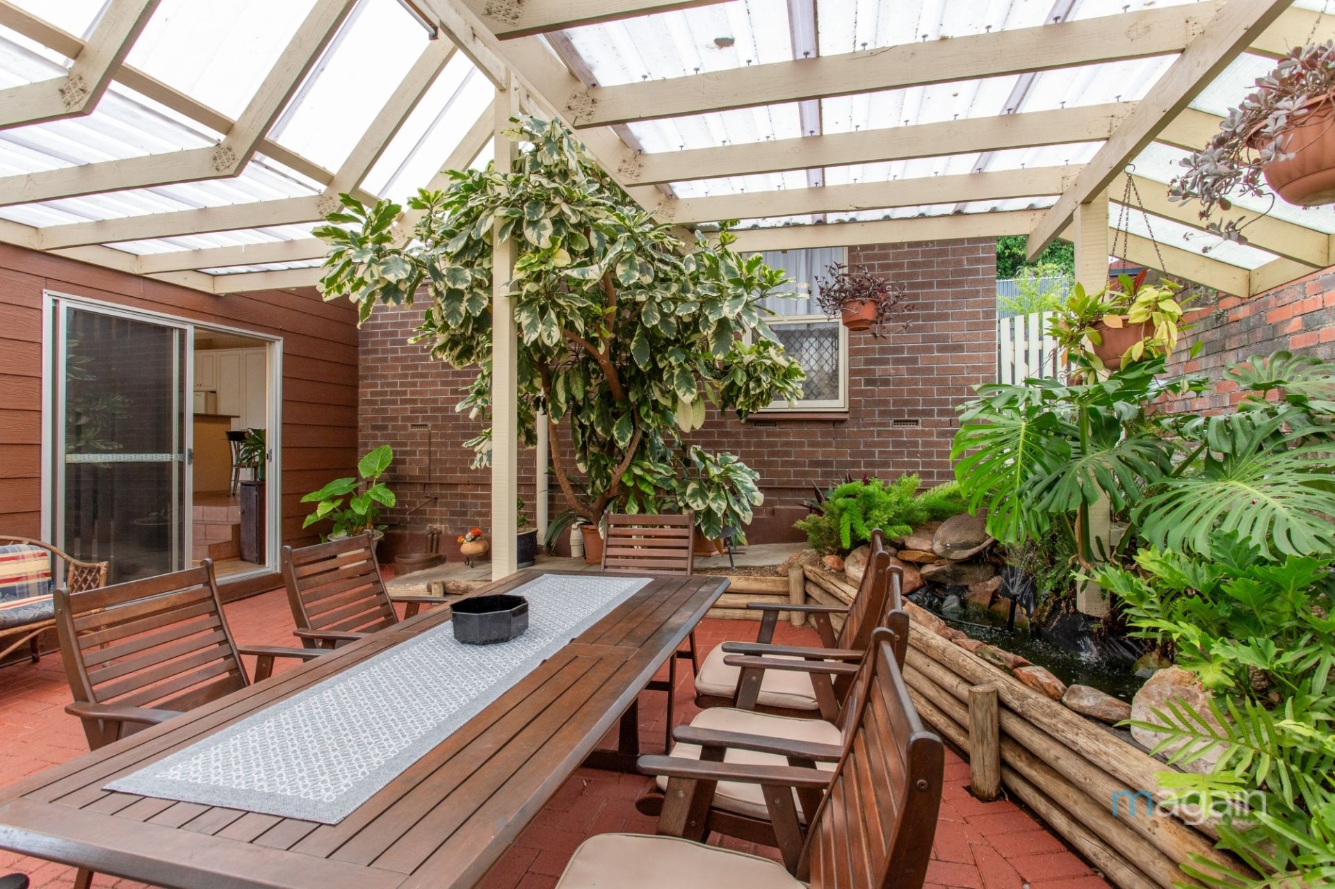 Outside, the property impresses with a generously sized paved entertaining area covered by a pergola and surrounded by well-established garden beds, along with a spacious lawn area, perfect for children and pets to play. Additionally, there's a large shed with power connected and drive-through access from the front carport.