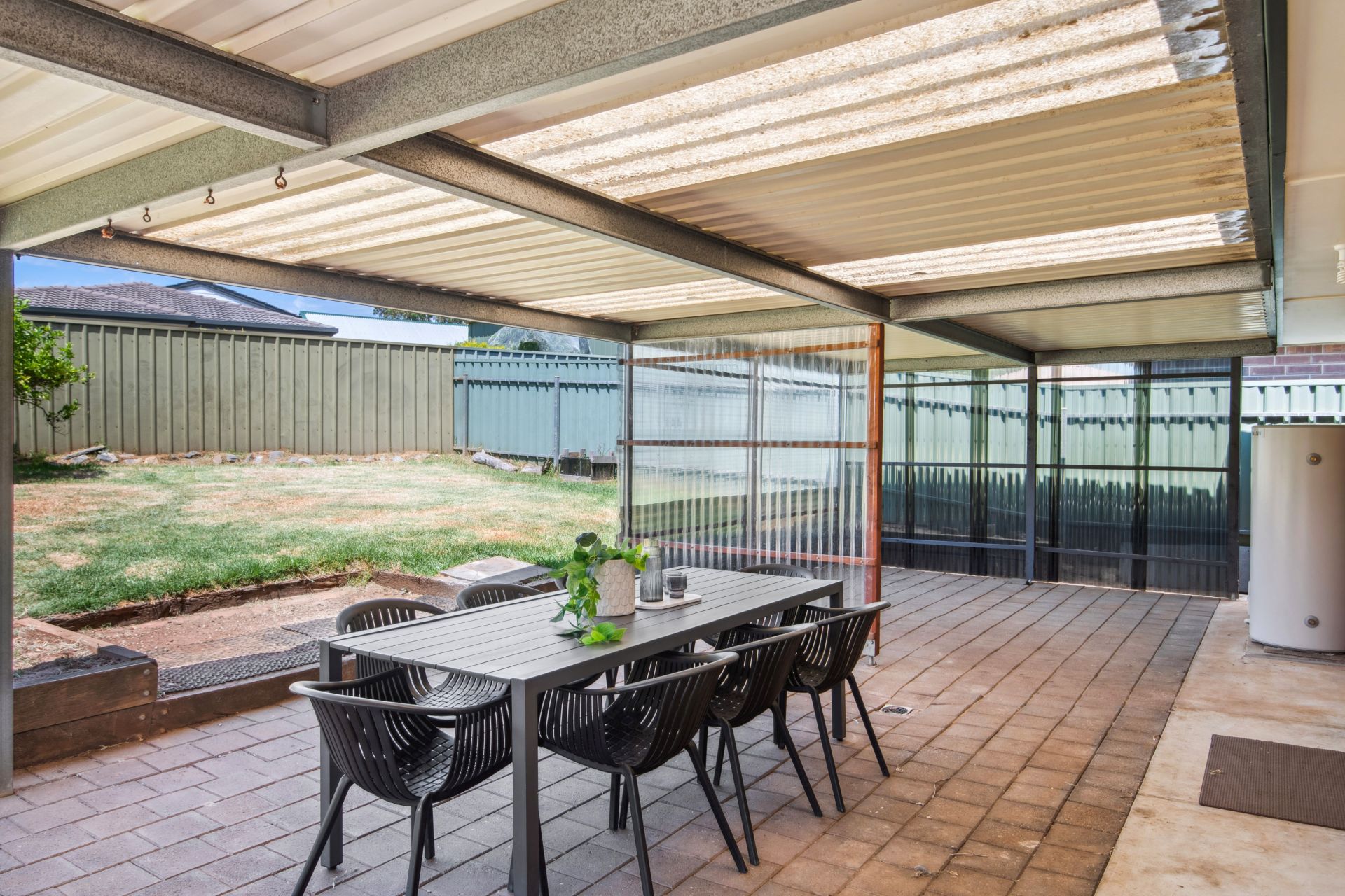 Set on an allotment of around 443m² the outside offers a large, covered verandah, it is paved and spans the width of the home making it ideal for entertaining friends and family. From here you can watch over the kids & pets playing on the good-sized lawn area. The single carport has an automatic roller door and access to the backyard, plus there is off-street parking in the driveway and a tool-shed with concrete floor for additional storage.