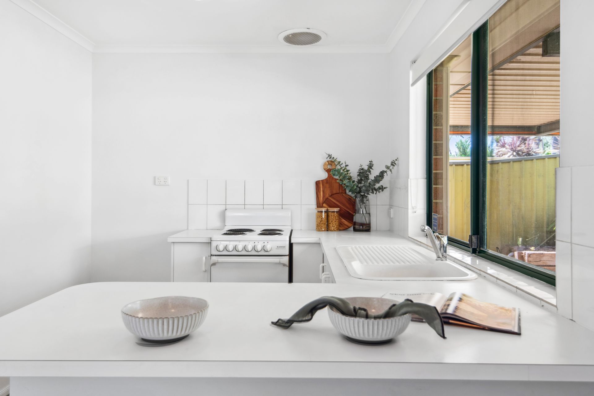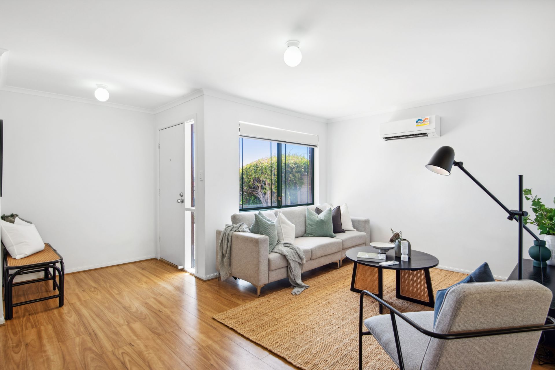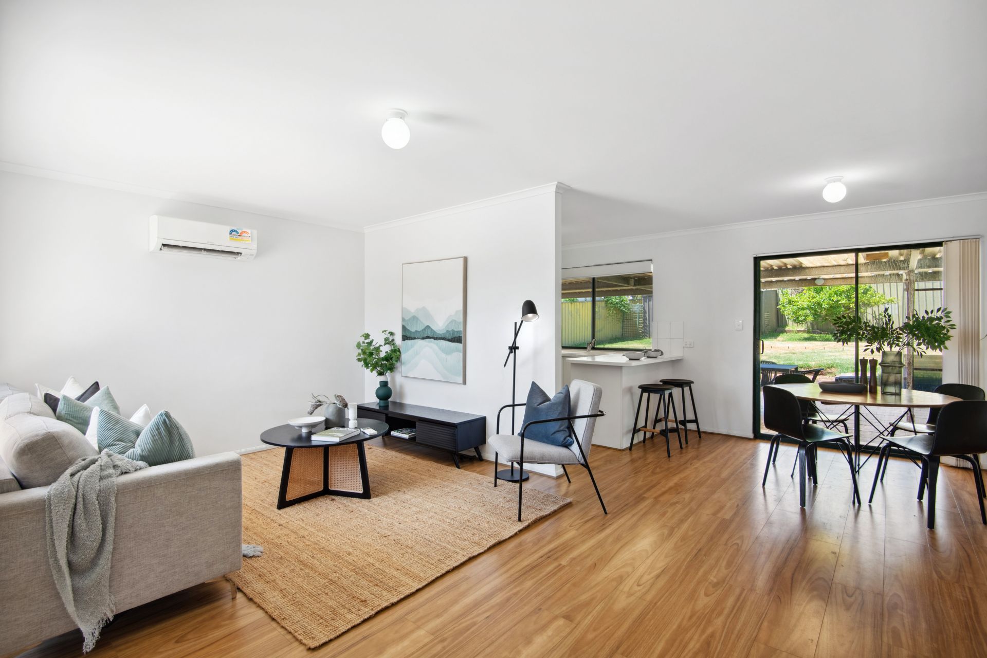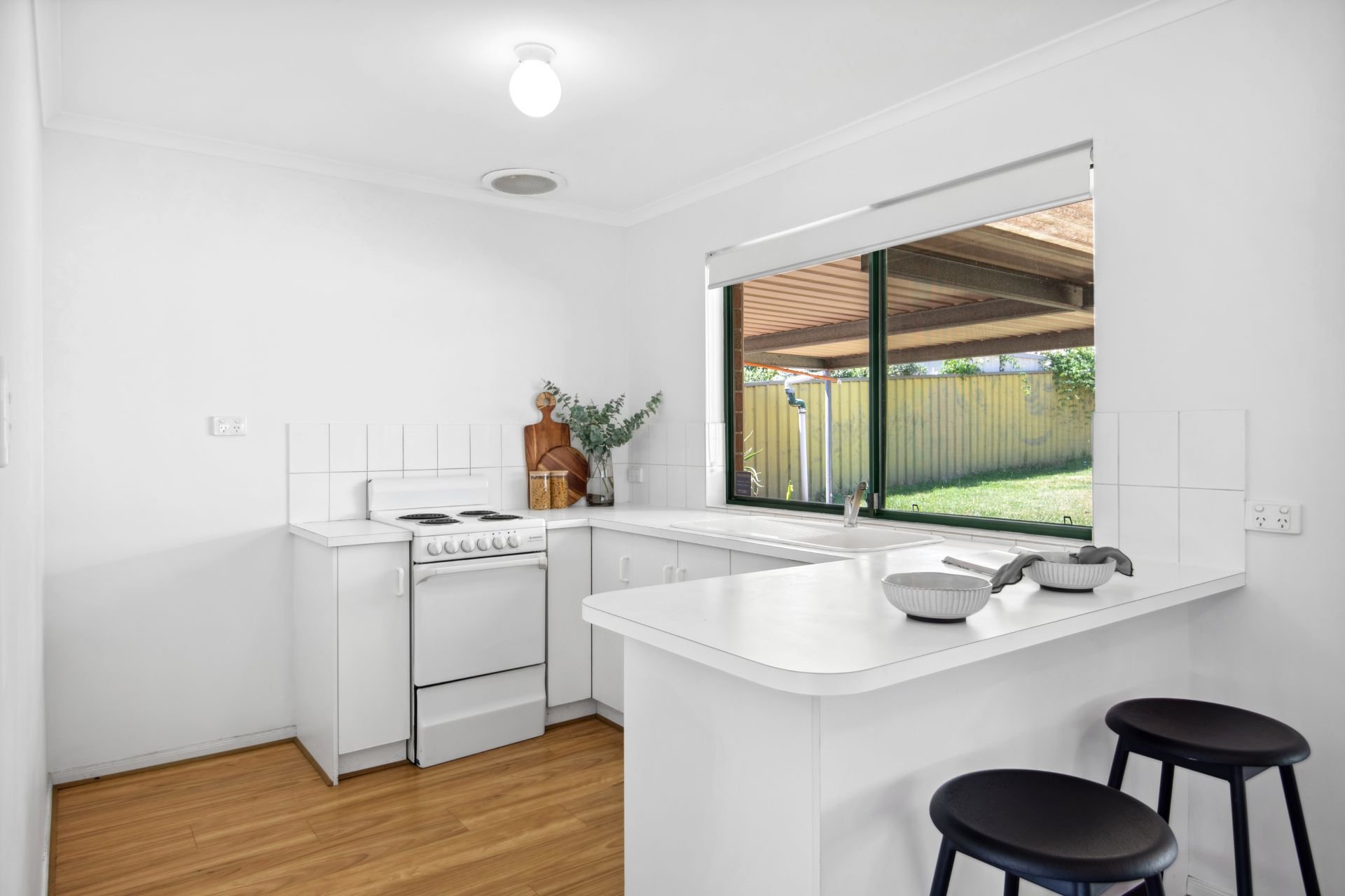 A modern façade and low-maintenance gardens ensure a bright and welcoming appeal from the moment you pull into the driveway. The floorplan is as bright and appealing as it is functional with an entrance foyer that invites you through into the spacious open plan area. This open-plan layout combines the living, kitchen and meals area with glass sliding doors that lead you outside to the covered verandah, where you can host friends, dine alfresco or enjoy your morning coffee in privacy and comfort. The practical kitchen boasts an electric cooktop & oven, laminate benchtops with breakfast bar seating and ample cupboard space for all your cooking needs. There are three bedrooms offering a peaceful retreat, the main is fitted with a built-in robe for storage, while the central bathroom boasts a walk-in shower, a single vanity, a bathtub plus a separate toilet for added convenience. Additional features include a reverse cycle split system air conditioner in the living area, easy care floating floors throughout and a separate laundry with external access.