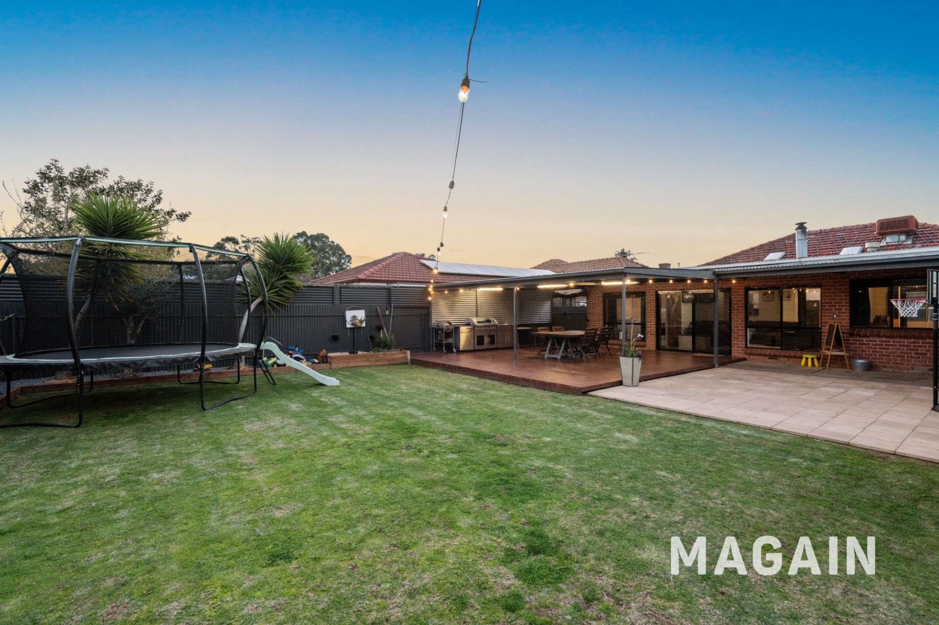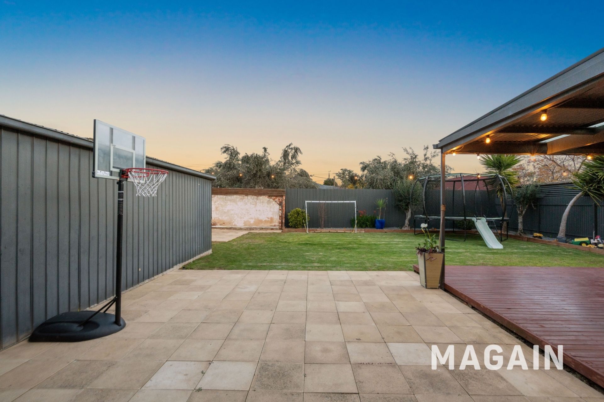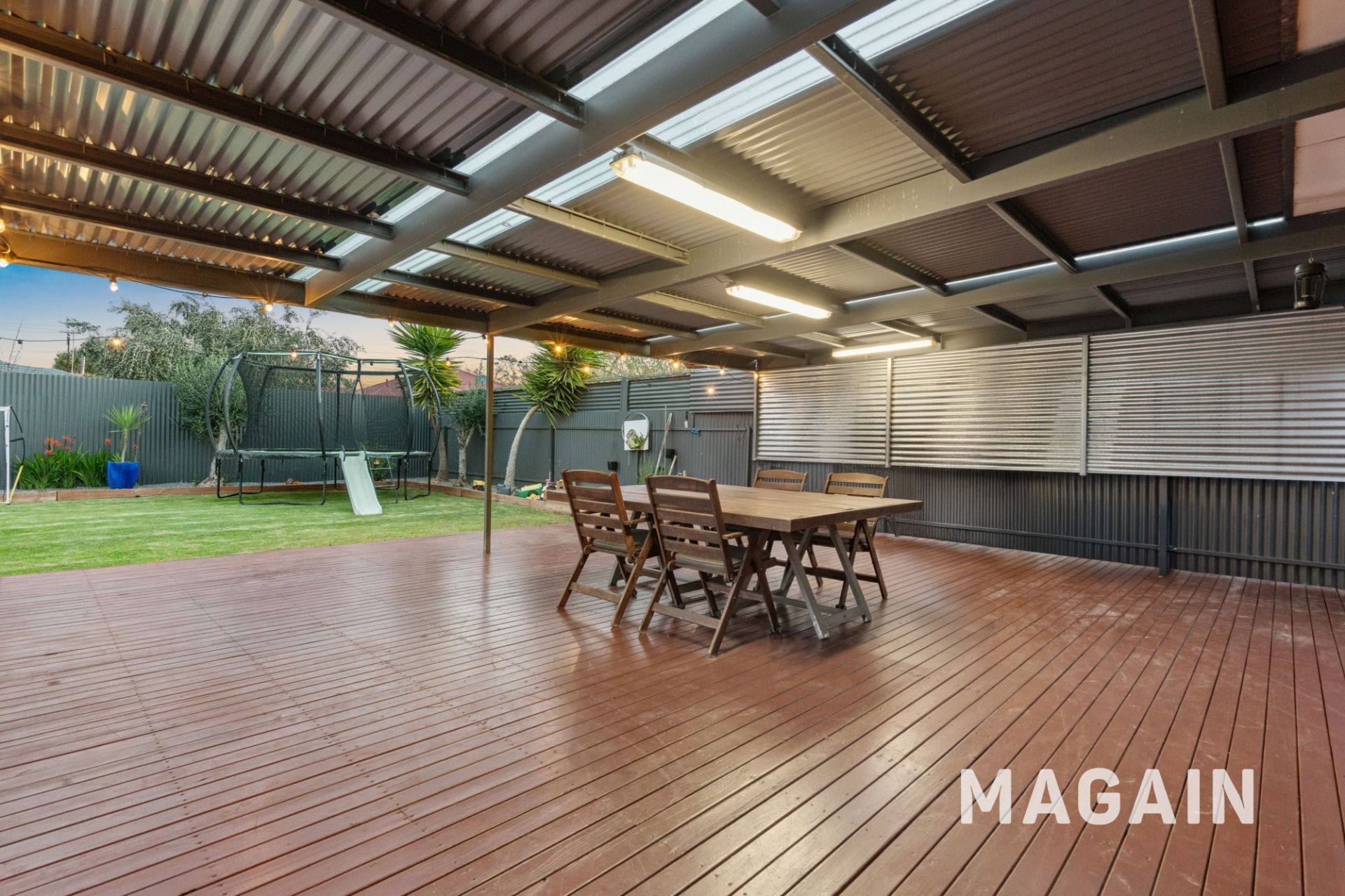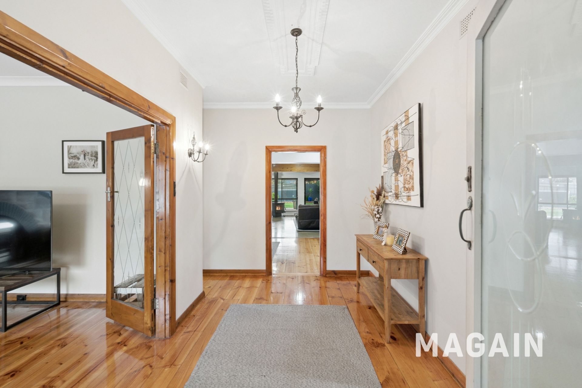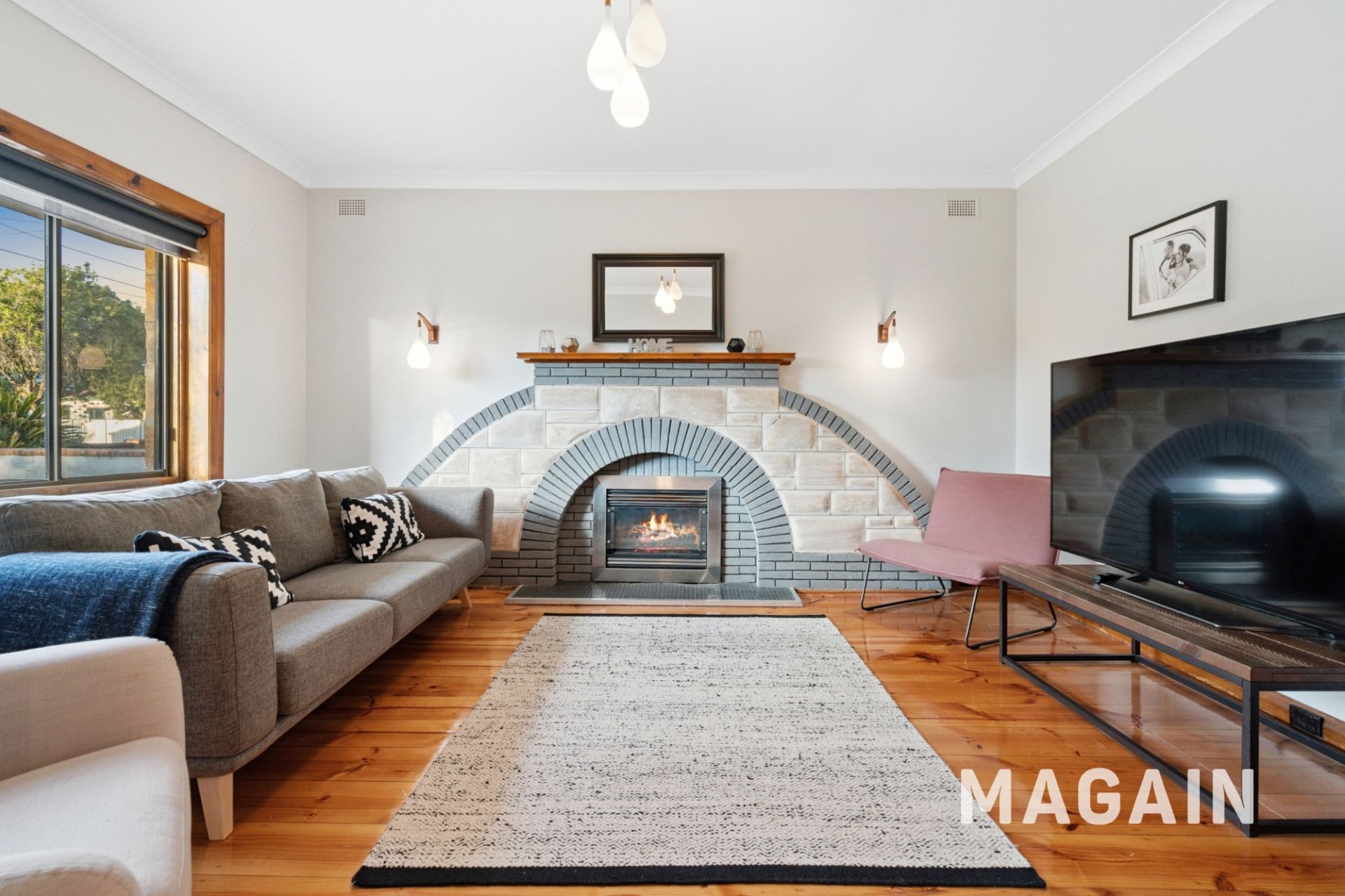 Two living zones give the household room to spread out. The cosy front lounge, with its fireplace and hanging pendant lighting, makes a natural hideaway on cooler evenings. At the rear, a vast family room acts as the showstopper, creating an instant sense of gathering. With two ceiling fans, a combustion heater, and a sliding glass door to the verandah, it's the kind of space that easily transforms from movie night to milestone celebrations. The adjoining kitchen and dining area have been tastefully modernised, creating a central hub that works as well for weeknight meals as it does for weekend entertaining.