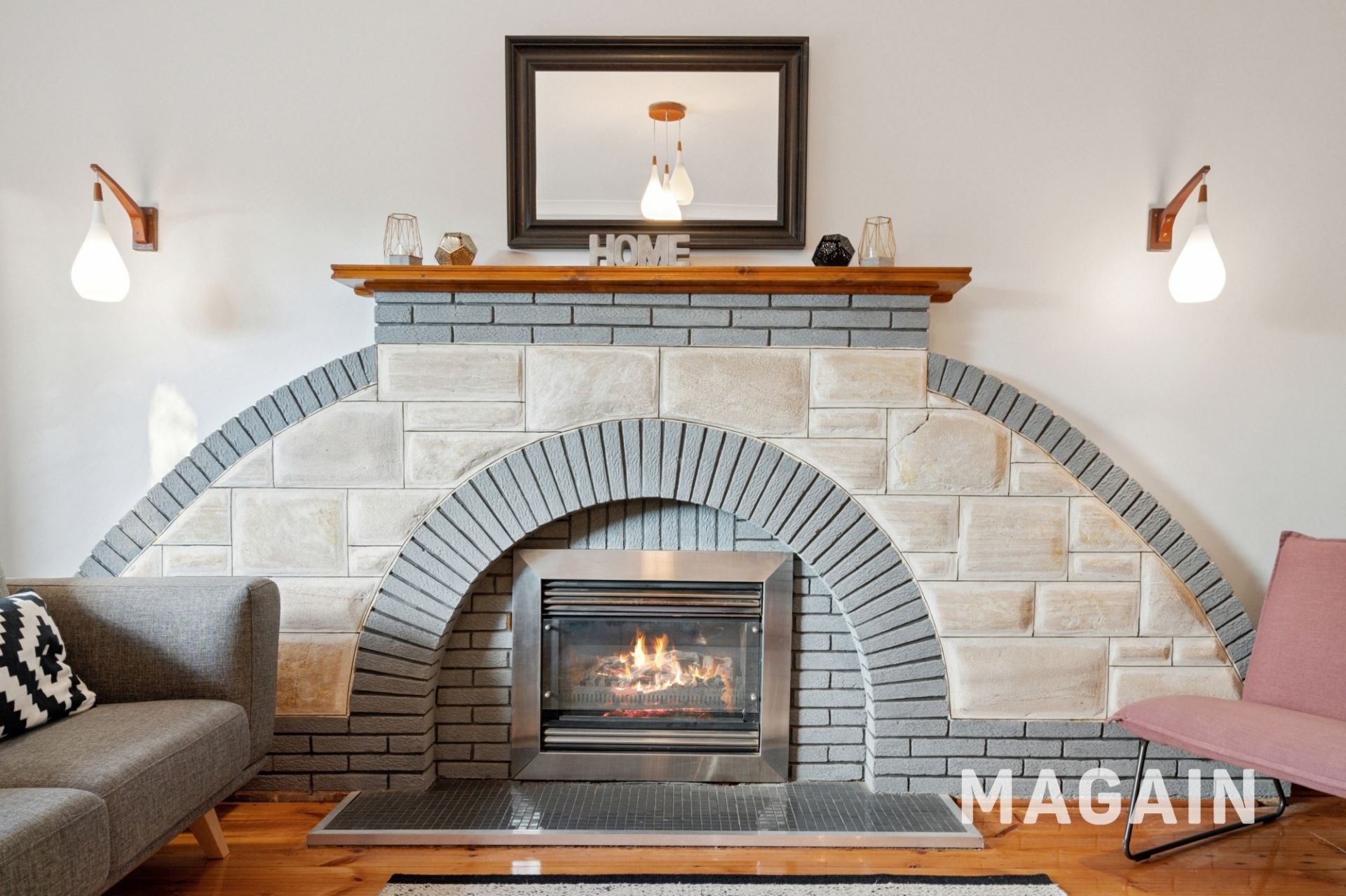 Outdoors, the undercover decking and verandah are ready made for weekend get togethers and summer BBQs. The generous lawn gives kids, pets, and gardeners room to roam, while a separate paved entertaining area complete with its own fireplace adds a little magic to the home.