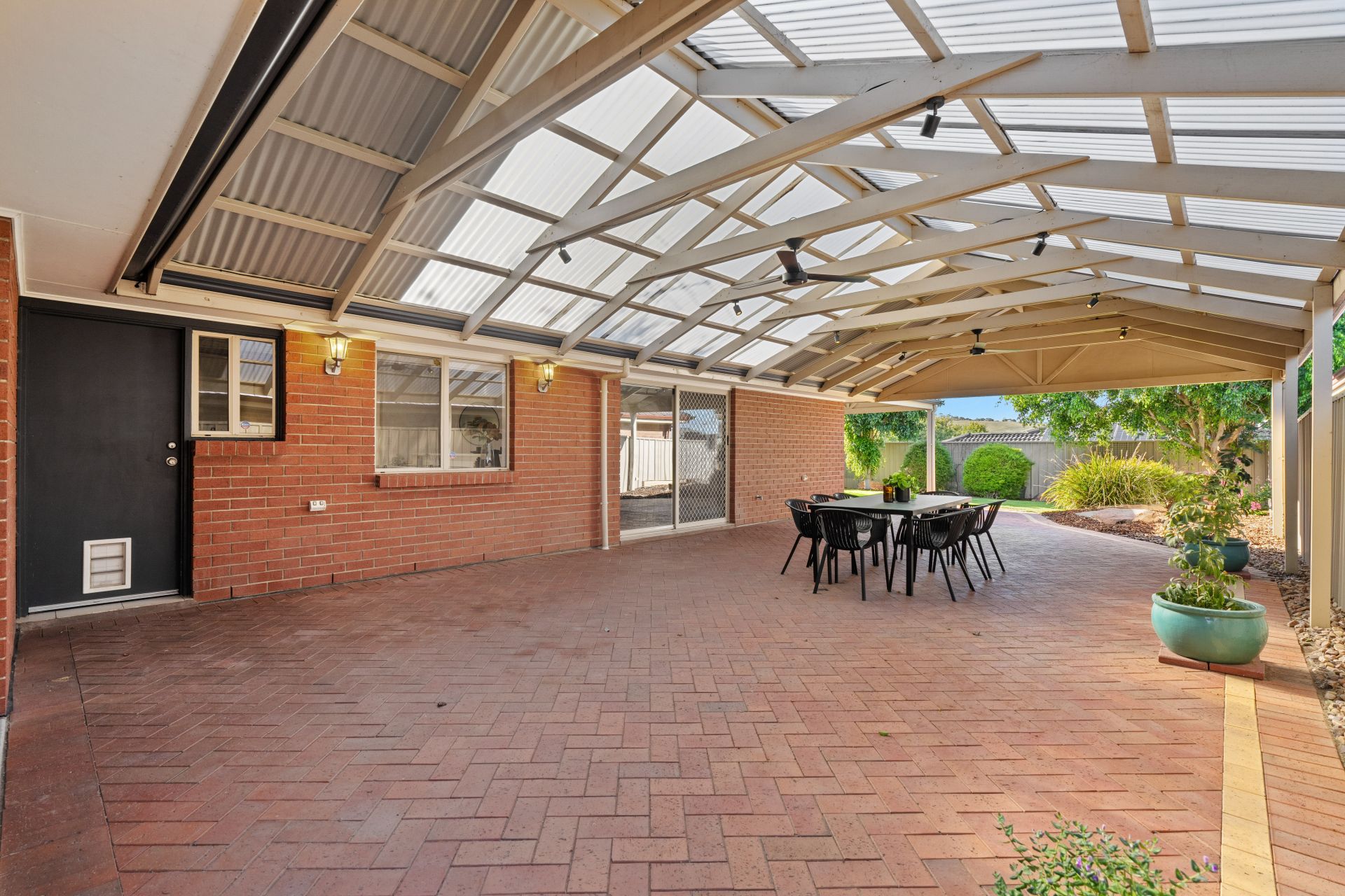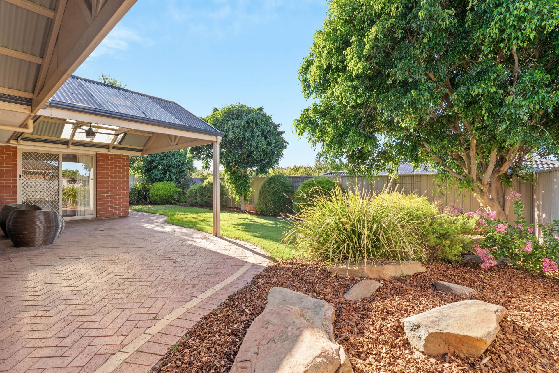 Situated on an allotment of around 574m² the outside will continue to delight with two undercover entertaining areas, beautifully manicured gardens and plenty of room for everyone to enjoy. Whether you're entertaining friends, relaxing at the end of the day or simply enjoying quality time with the people you love, the huge, pitched roof pergola provides an inspired space to appreciate the beautiful surroundings. This truly fabulous outdoor area has two ceiling fans, lights and paved flooring. From here you can watch over the kids and pets playing in the private fully fenced backyard with lush lawn and established plants. The nearby alfresco area delivers an additional space to sit back and relax with family and friends, boasting a pitched roof with a ceiling fan, plus paved flooring that connects both outdoor areas. A garden shed can also be found in this space providing extra storage of your tools and toys. The double garage has automatic roller doors, internal access to the home and drive through access to the backyard, plus there's additional off-street parking on the driveway.