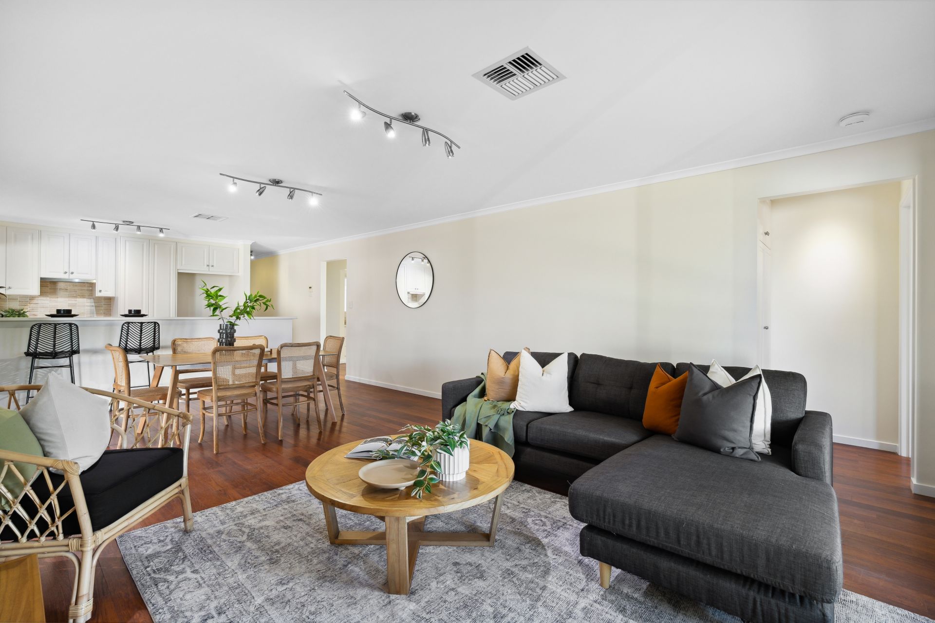 Impeccably presented and full of light from start to finish, this well laid-out home embraces everyone from growing families to downsizers with multiple living zones, double garage, secure rear gardens and open-plan living with room to roam. Perfectly positioned within a friendly and peaceful neighbourhood, this property is perfect for those searching for a convenient and comfortable lifestyle.