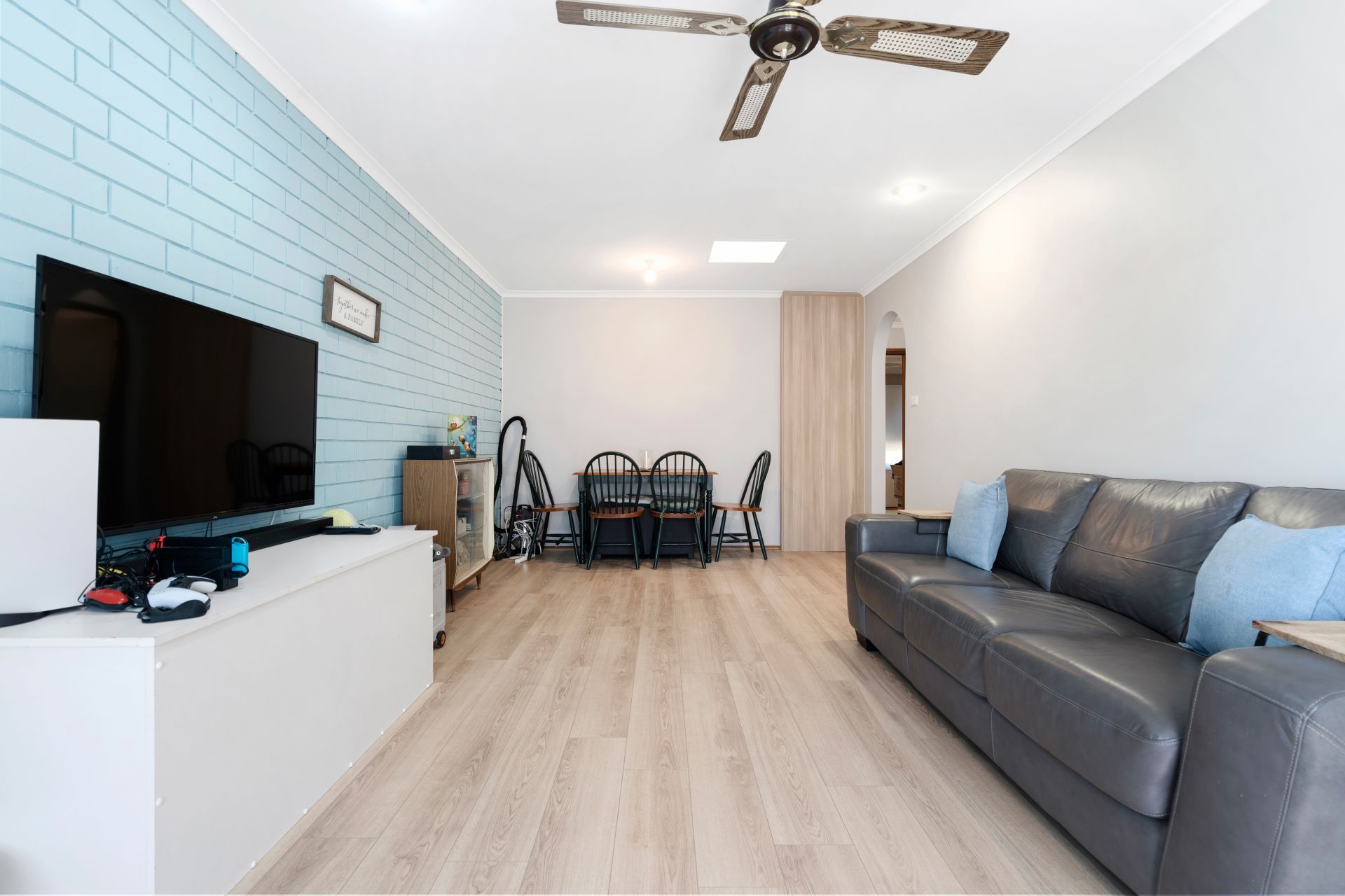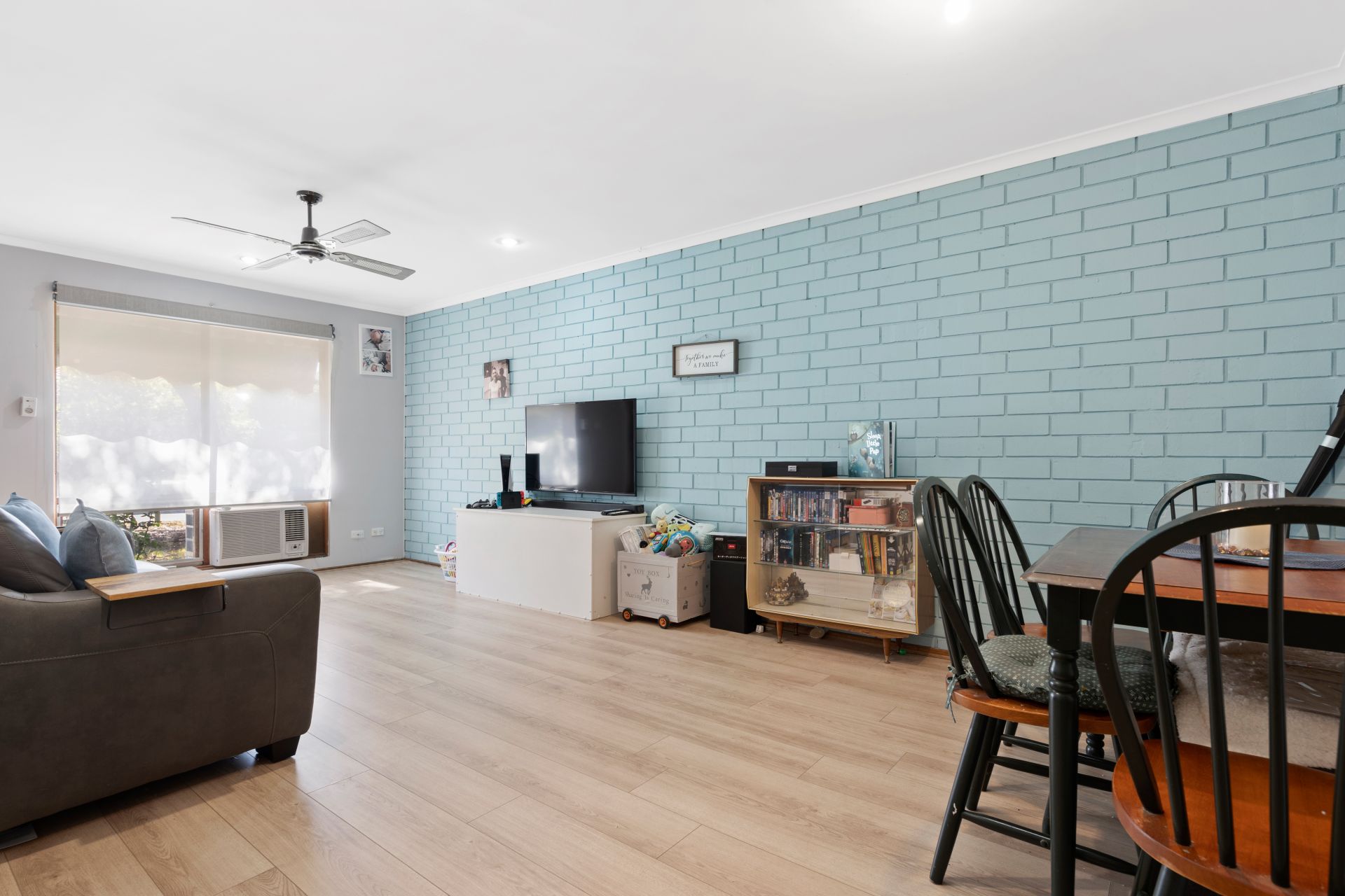 - Generously sized combined living and dining area with split system air conditioner and new floor boards