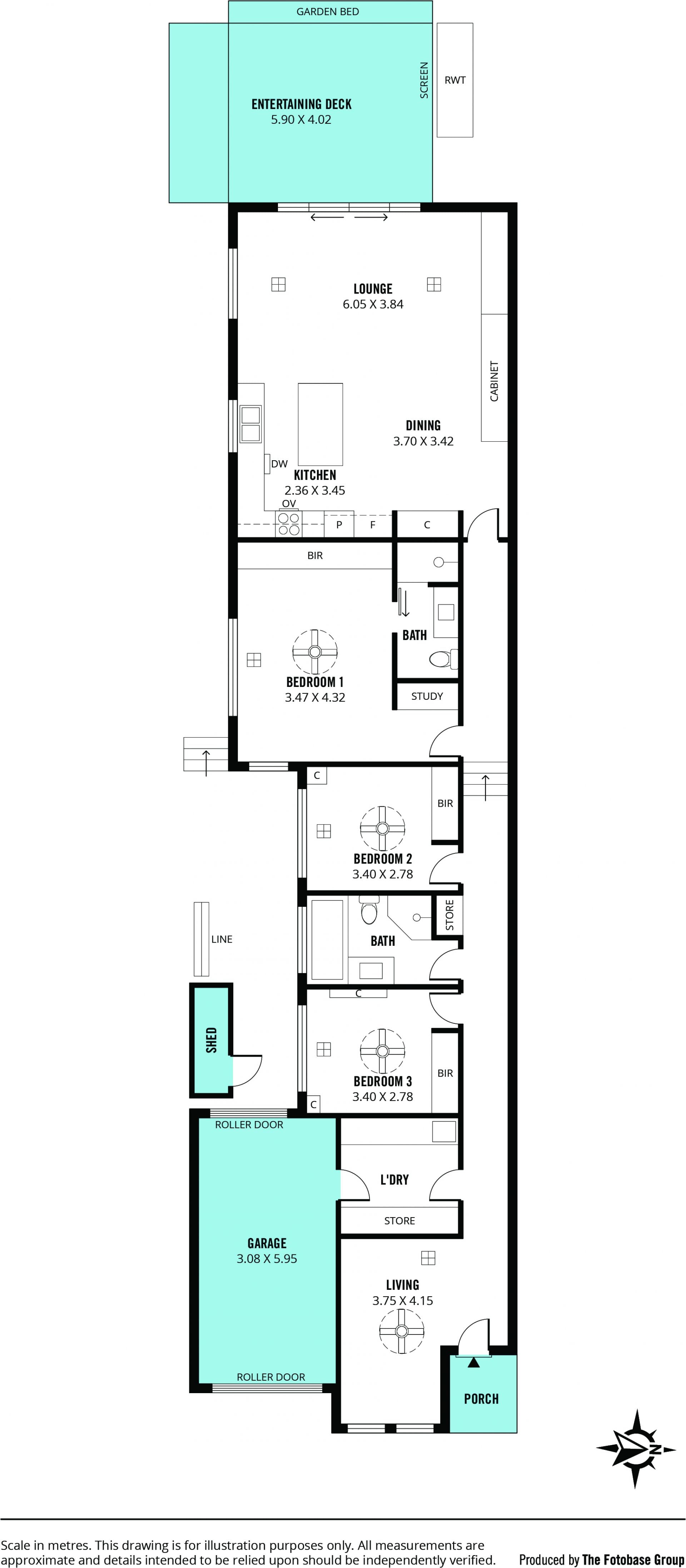 bench space. The three bedrooms are a fantastic size all with ceiling fans, the master