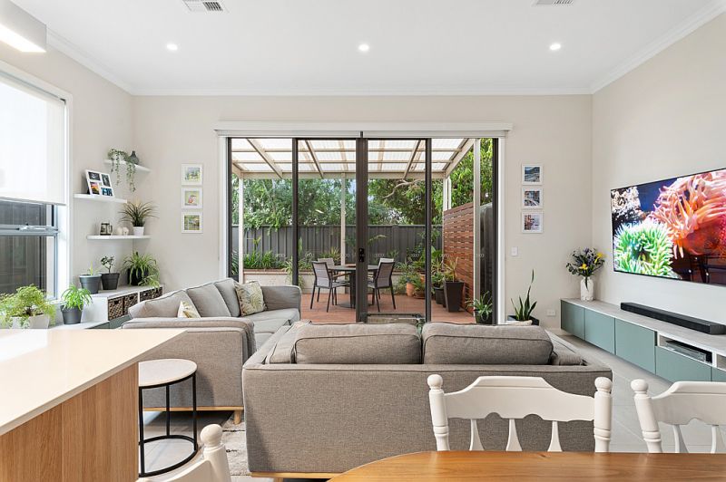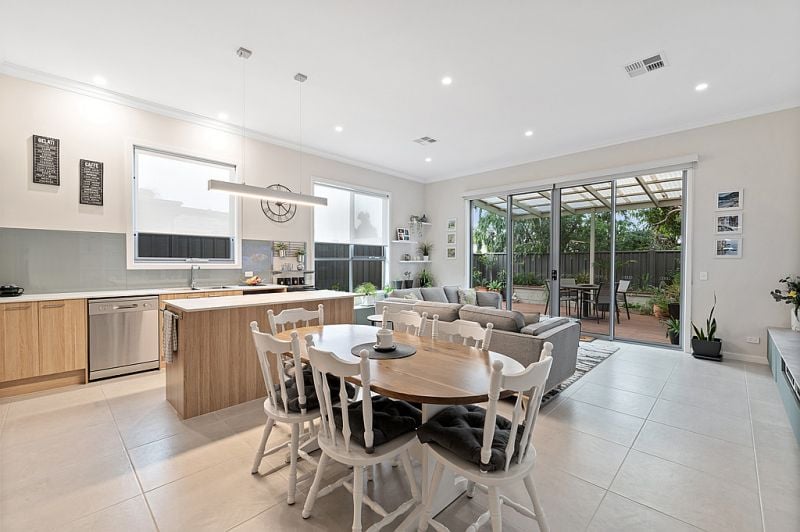 large entertaining area flowing smoothly off the living space makes hosting family and