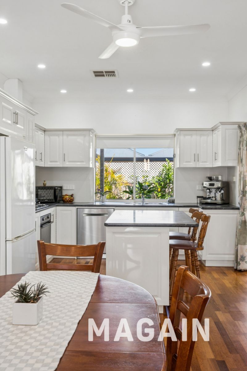 Comfort is assured year-round with zoned ducted reverse cycle air conditioning, complemented by floating floors and modern downlights that enhance the home's fresh and inviting feel. Outdoors, a paved undercover entertaining area provides the perfect space to host family and friends, overlooking easy low maintenance gardens complete with a grassed area and handy garden shed. Automatic front security shutters add peace of mind, while the 20-panel solar electricity system delivers valuable energy efficiency benefits.