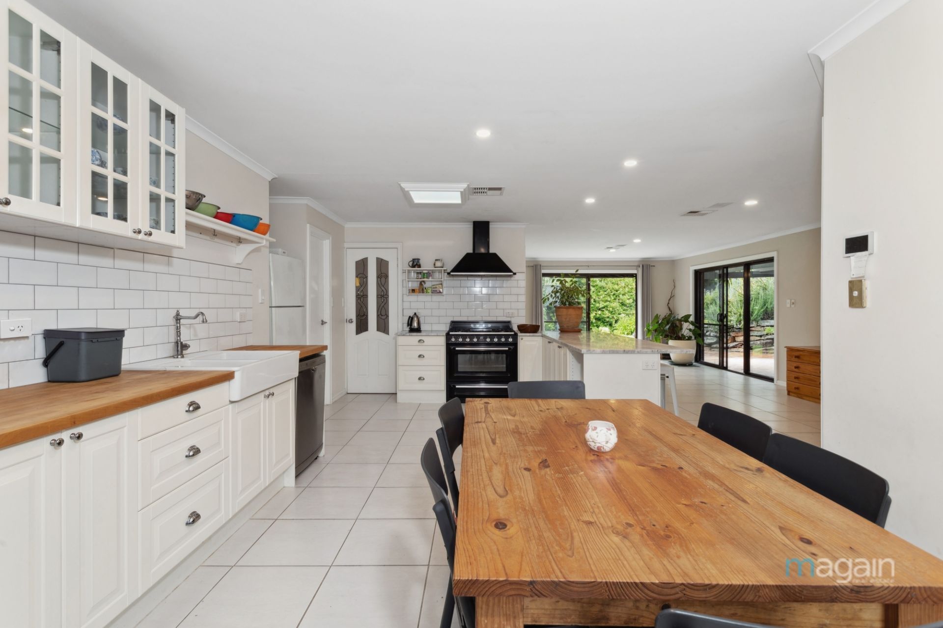 The kitchen, designed in neutral tones, is a culinary haven equipped with a walk-in pantry, gas cooking facilities, a 900mm oven, and a dishwasher. A large breakfast bar overlooks the family/meals area, fostering interaction and connection during meal preparation and family gatherings.