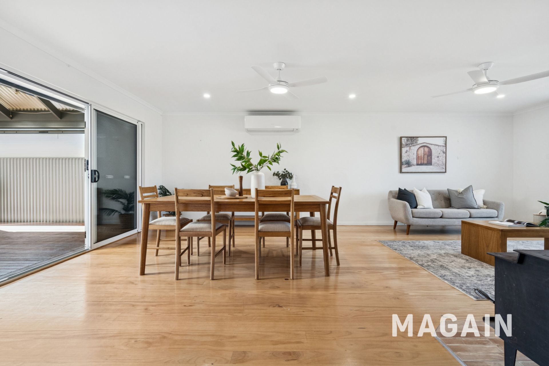Stepping through the front door the stunning polished floorboards will take your eye. The main bedroom with a stunning ensuite and generous walk-in robe leads off to the right of the entrance hall, it has the advantage of ceiling fan, and its own split system keeping you comfortable all year round, it really is a beautiful bedroom.