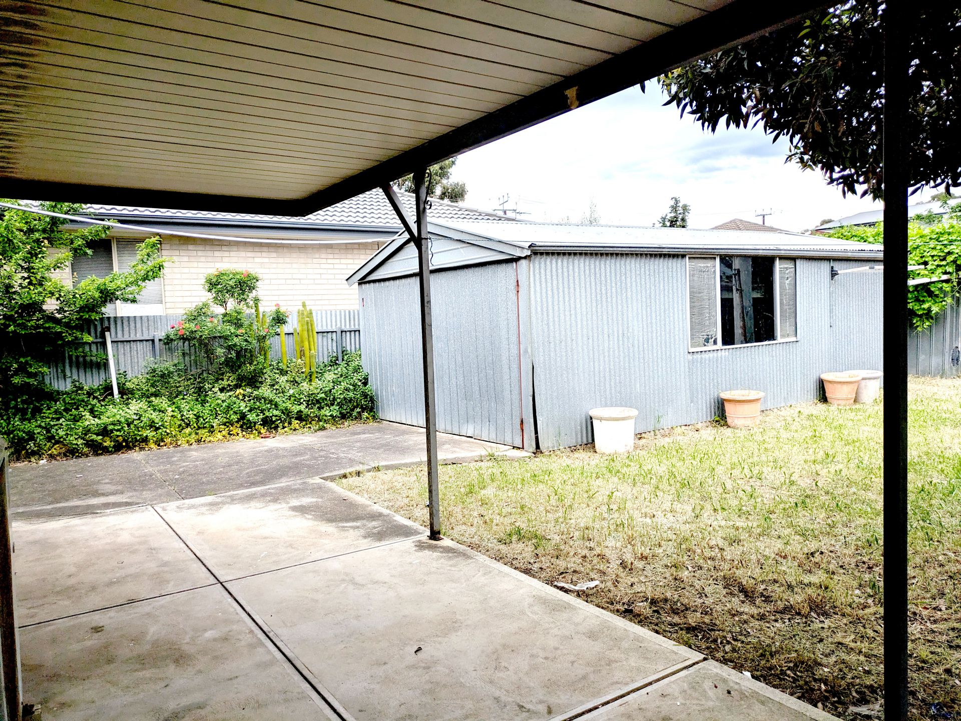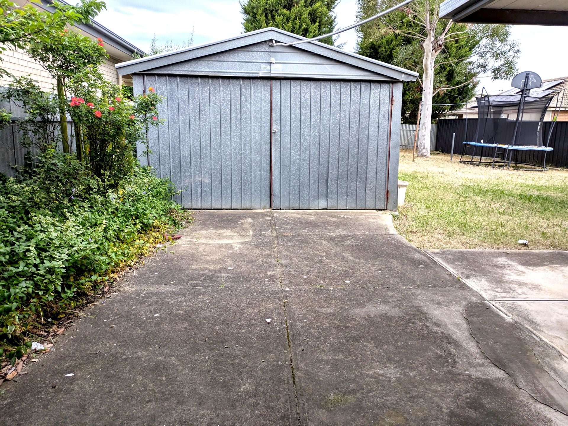 > Large enclosed back yard and shed