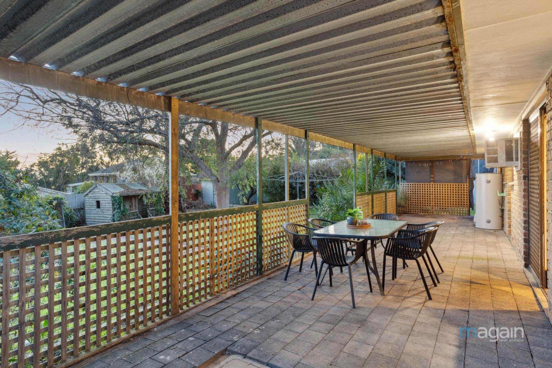 Stepping outside, the backyard is perfect for outdoor living. The large undercover veranda is ideal for year-round entertaining, whether you're hosting a summer barbecue or enjoying a quiet evening outdoors. The lawn area offers plenty of space for children and pets to play, and the garden shed at the rear of the property provides excellent storage for tools, equipment, or seasonal items.