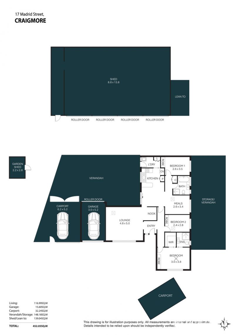 • Massive rear 4-car garage measuring 13.8m x 8.8m