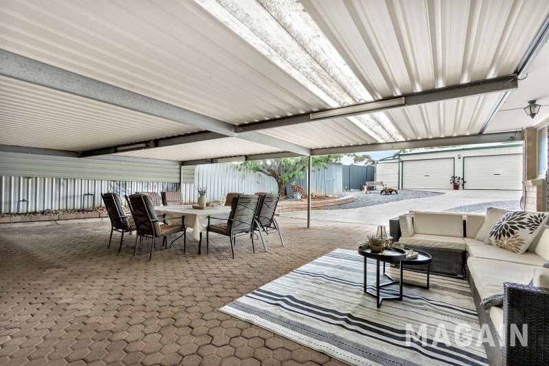 Car accommodation and storage are standout features here. At the rear of the property sits a massive 13.8m x 8.8m approximately powered four-car garage, complete with solar connected to the shed-ideal for trades, hobbies or serious storage. Additional vehicle space includes a single garage and two carports at the front, ensuring ease and flexibility for multiple vehicles.