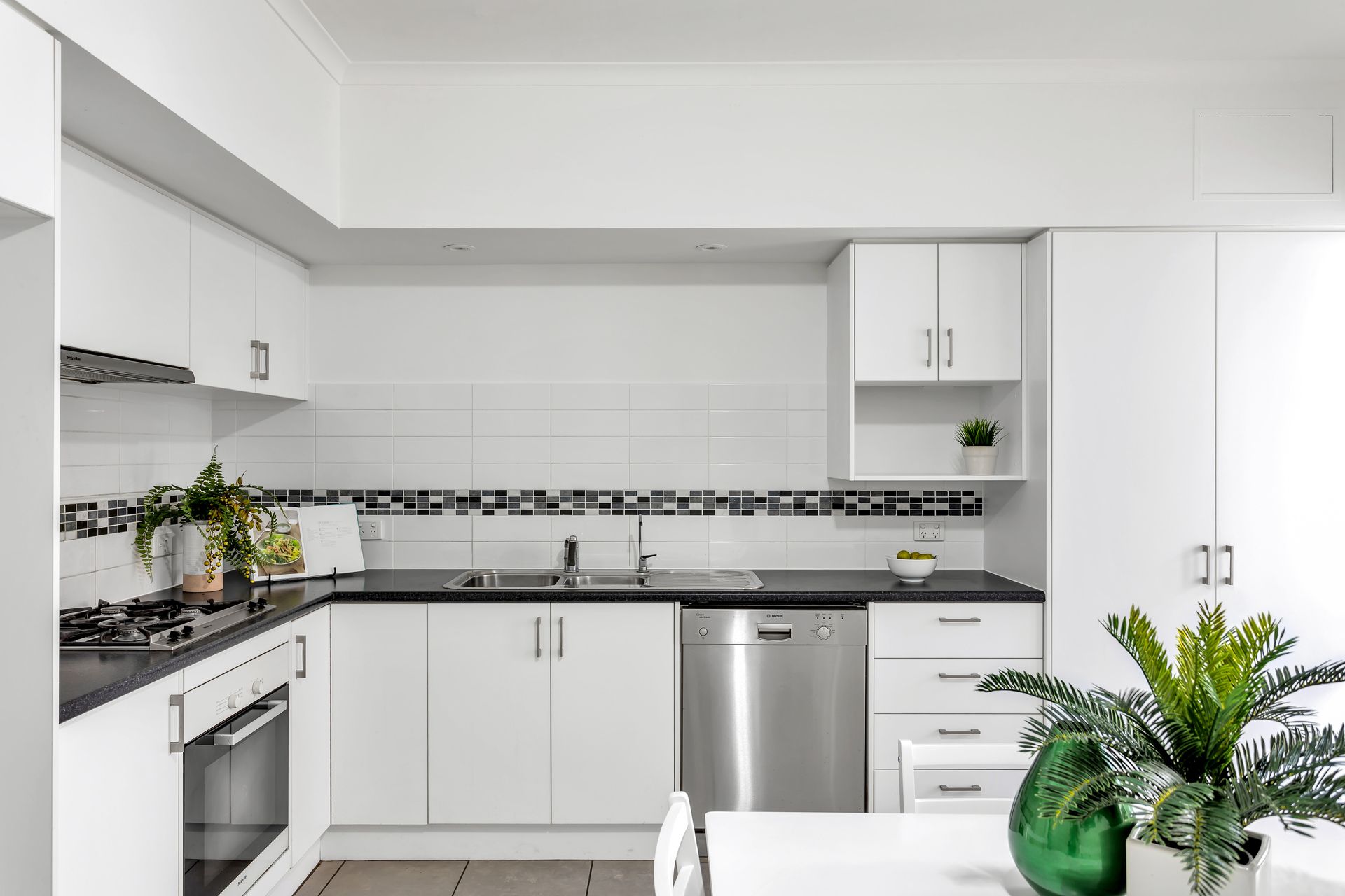 Modern kitchen with gas cooking, dishwasher and ample cupboards